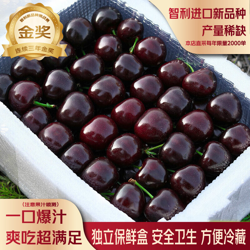 美嫁果金奖智利车厘子进口大樱桃新鲜当季水果SF部分次日达冠军品质 2斤(净重) 品质精选装 超级巨无霸4J 单果12-14g
