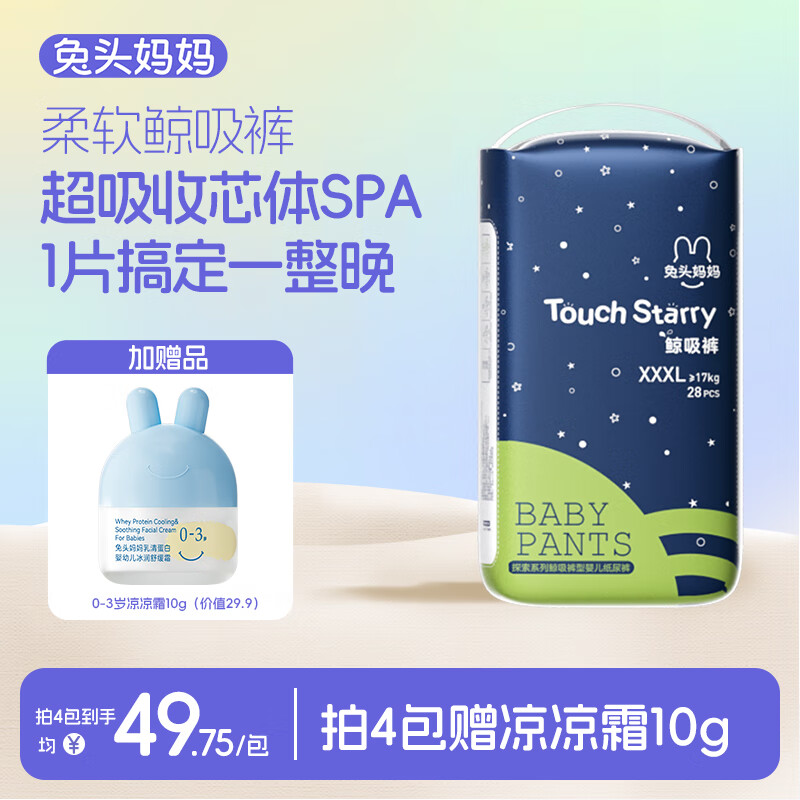 兔头妈妈TouchStarry探索系列鲸吸拉拉裤XXXL28片(17kg以上)900ml瞬吸干爽【品牌直供 安心品质】