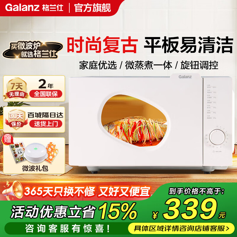 格兰仕(Galanz)微波炉家用平板加热20升小型迷你复古风智能菜单旋钮式简单按键便捷操作易清洁PE 复古风平板式