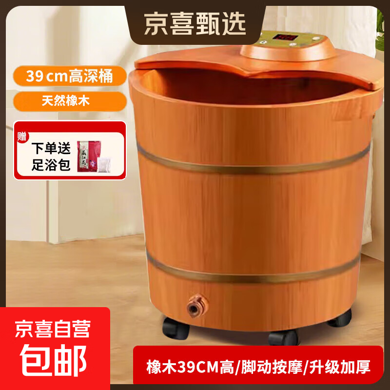 荣事达(Royalstar)泡脚桶木桶家用足浴盆全自动按摩加热恒温橡木洗脚盆过小腿 橡木39cm高/脚动按摩/升级加厚