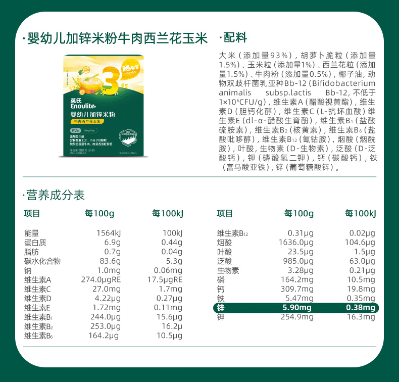 英氏米粉婴儿高铁独立小包装宝宝米粉荤素果蔬6-12个月米糊婴儿细腻 【1阶6月+】维C加铁便携 135g*1盒