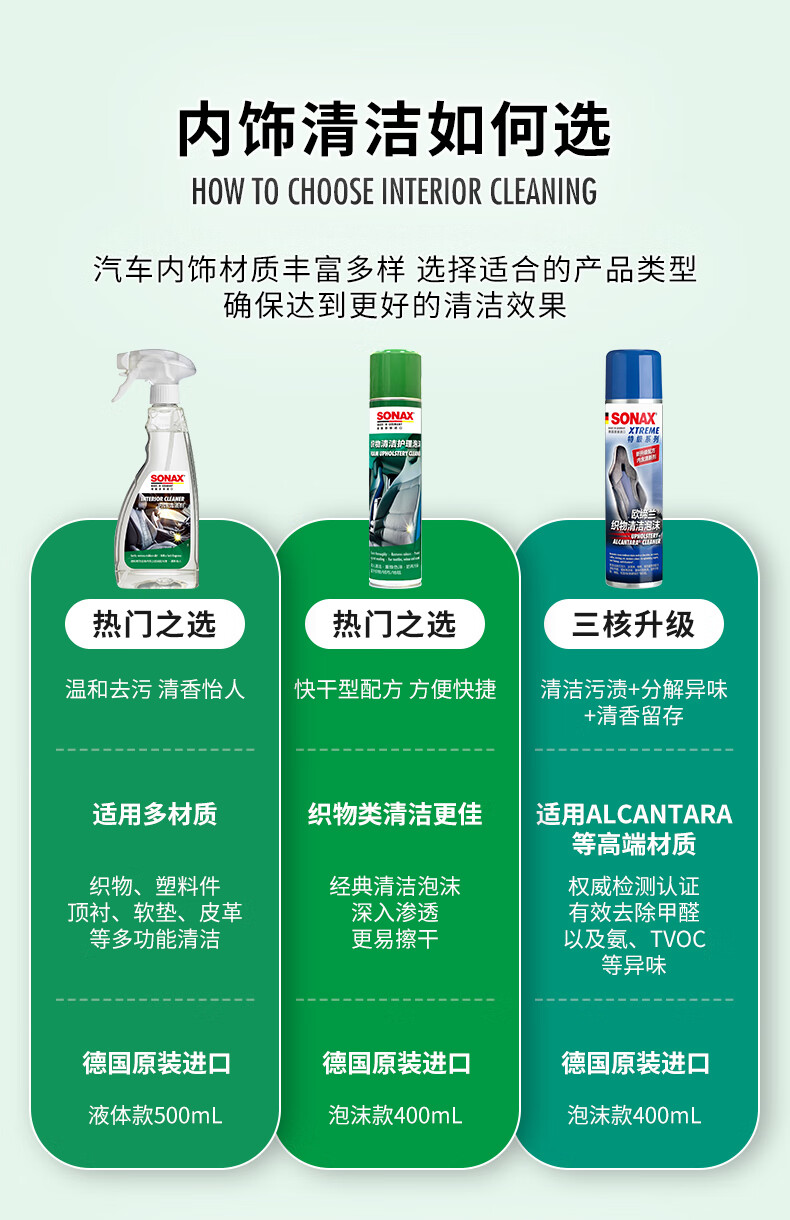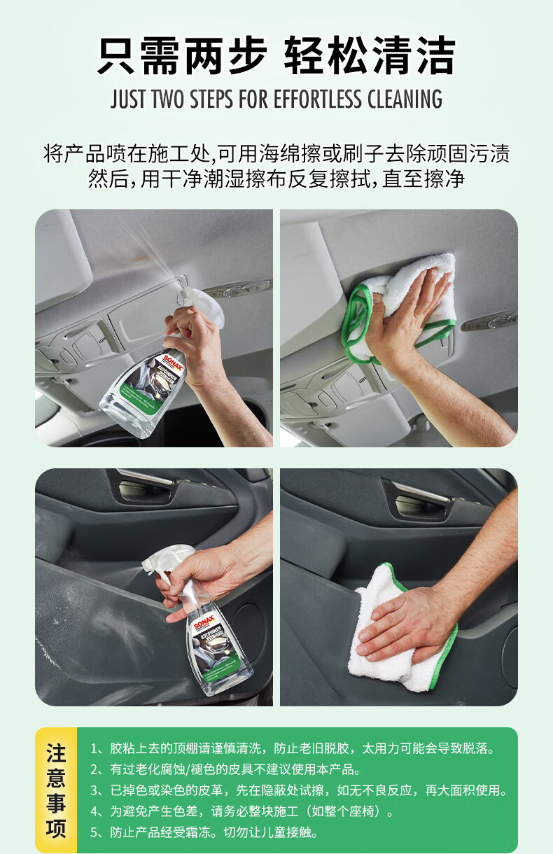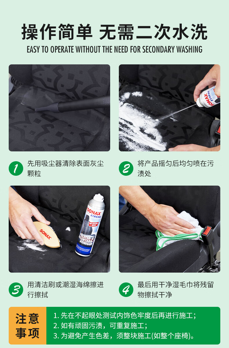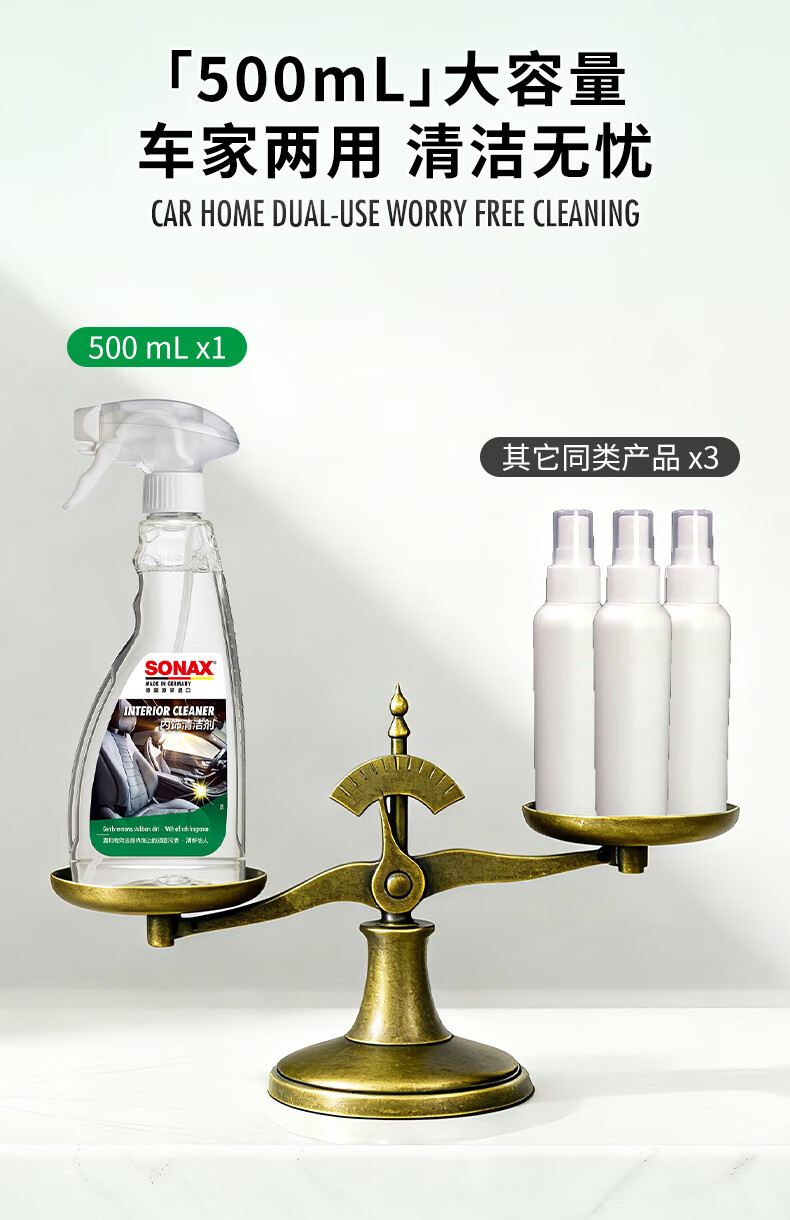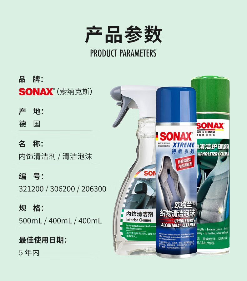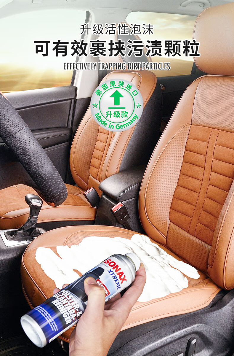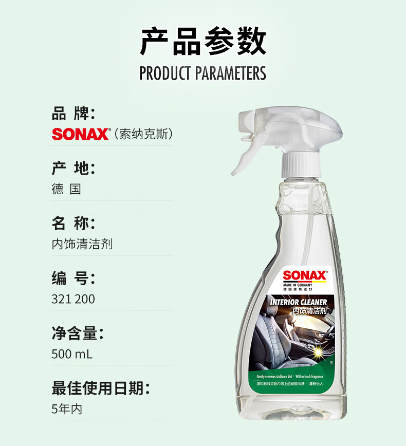索纳克斯(SONAX)德国进口汽车内饰清洁剂多功能织物真皮座椅车顶棚去污洗车神器 内饰清洁剂 500ml
