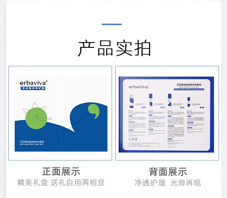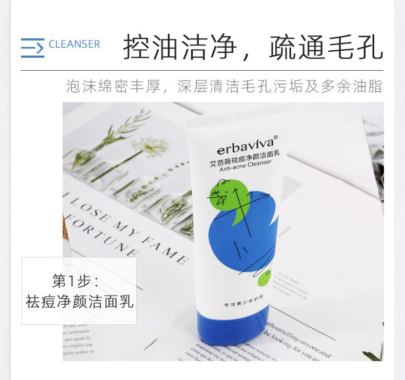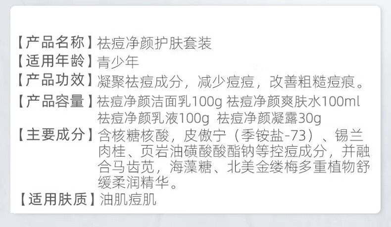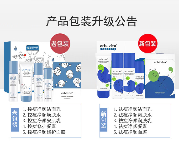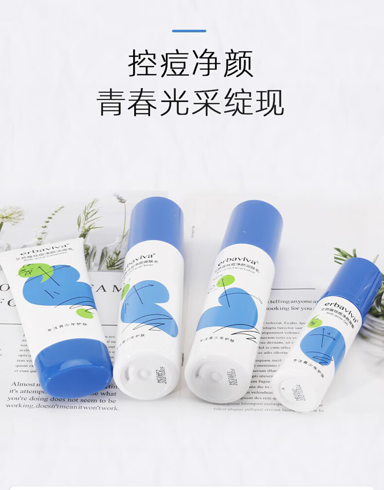 艾芭薇青春期青少年祛痘护肤品男女学生控油祛粉刺黑头痘印闭口面膜套装 祛痘洗面奶+祛痘乳液