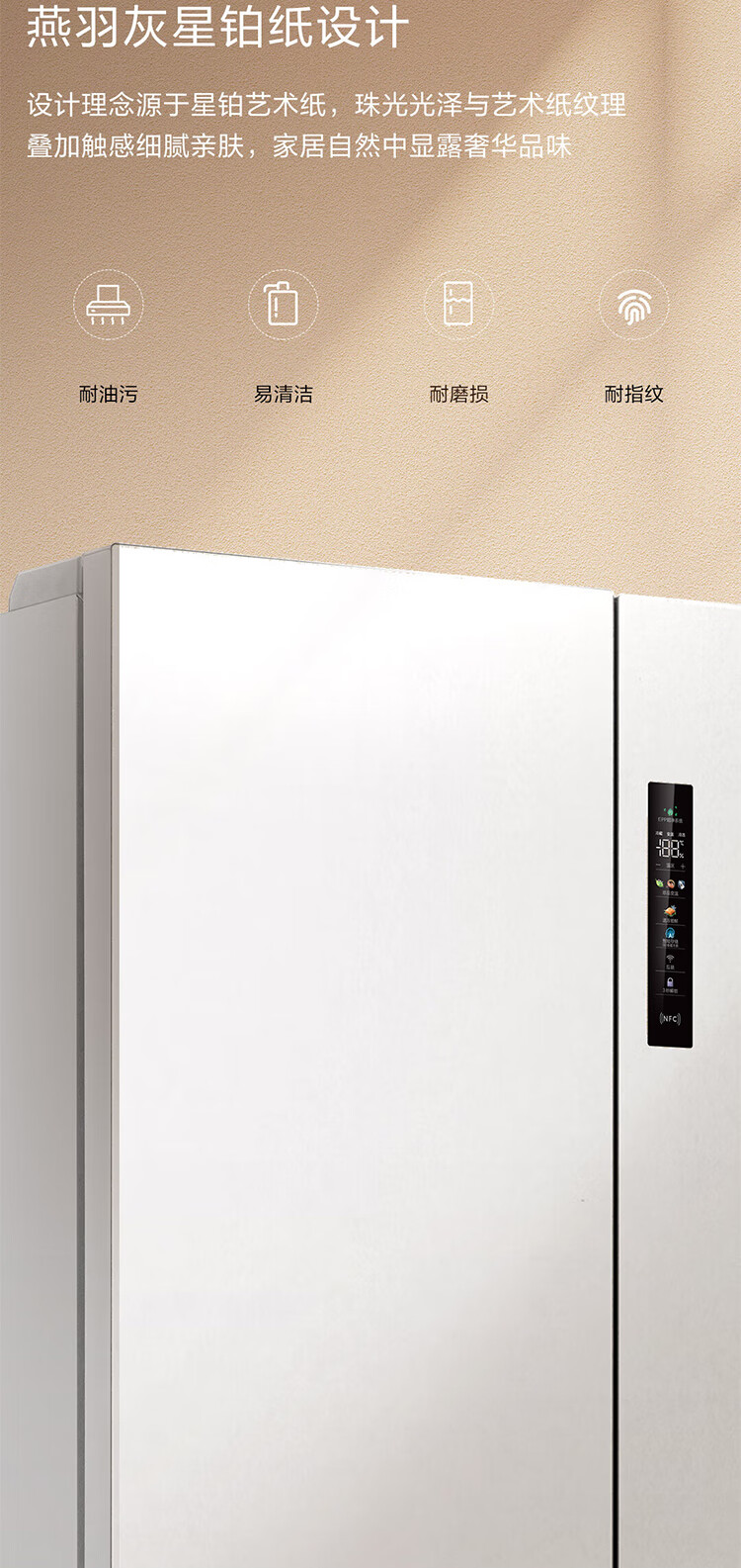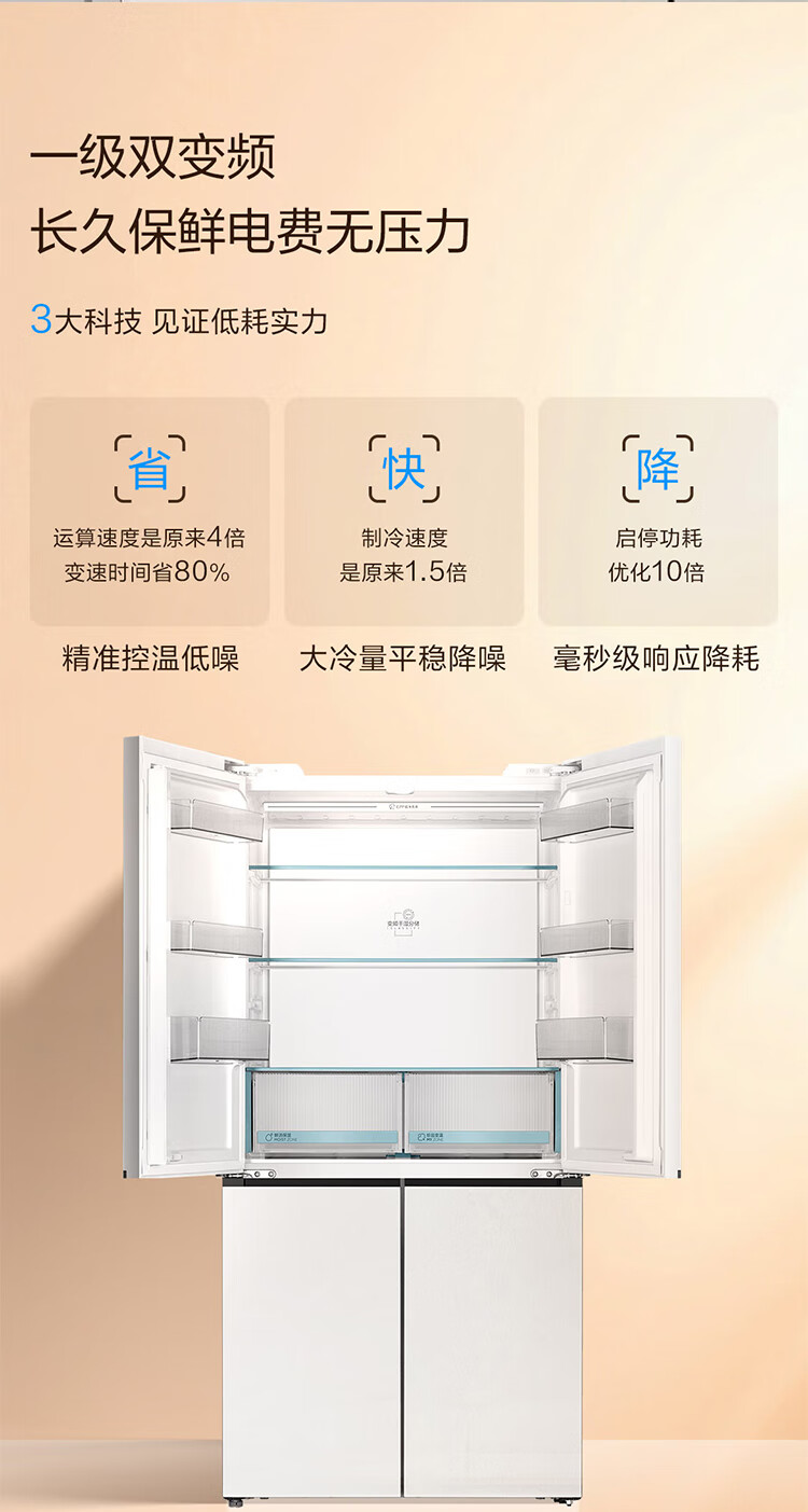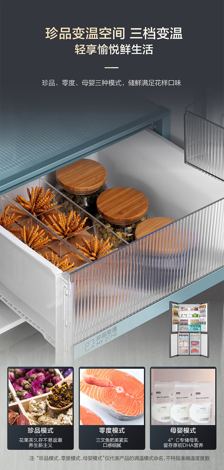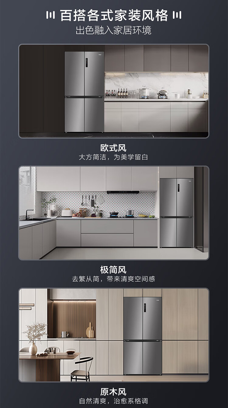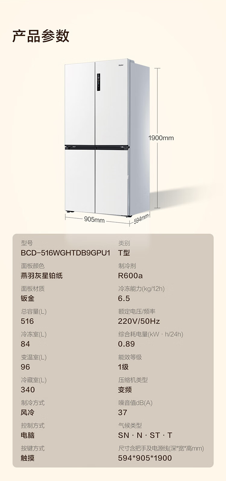 海尔(Haier)冰箱516升十字对开门T型四开门超薄零嵌入式一级能效干湿分储除菌家用大容量电冰箱国家补贴20% 博卡灰+594mm专业超薄零嵌+母婴三档变温