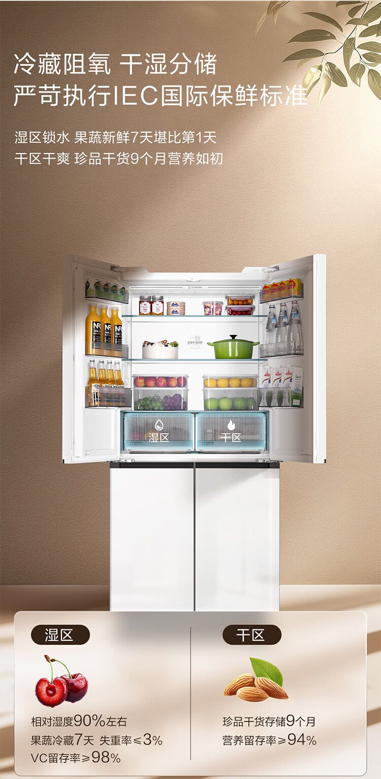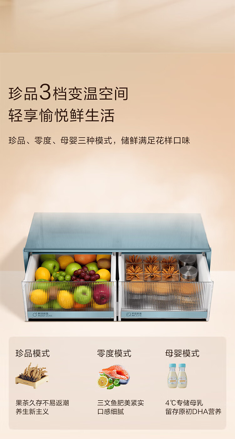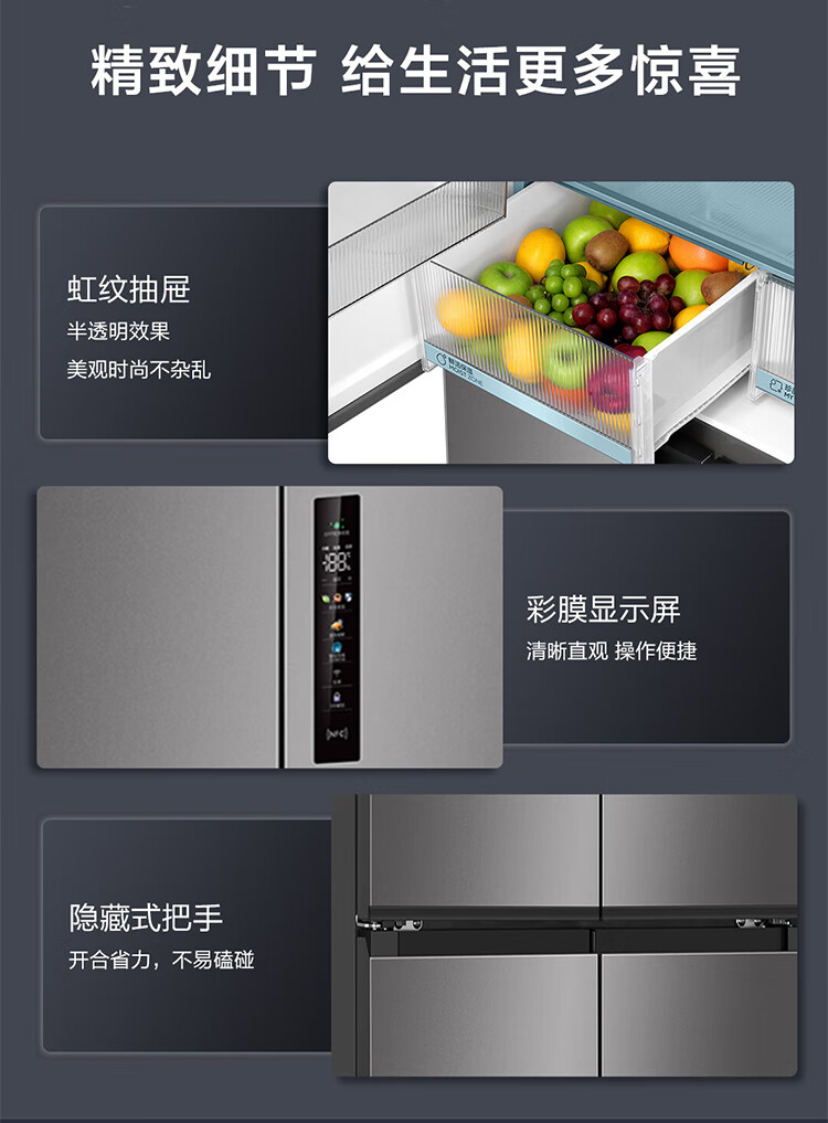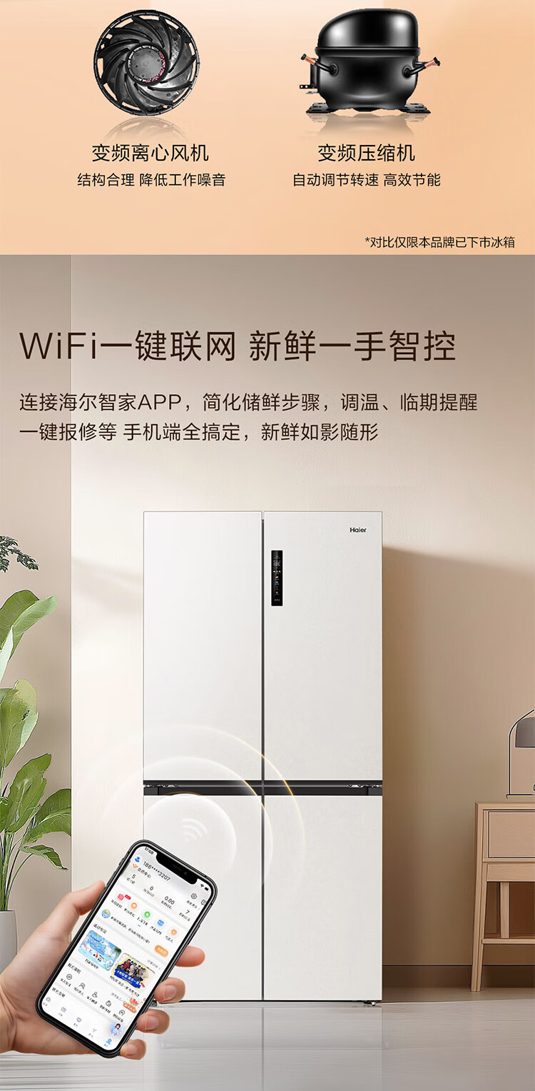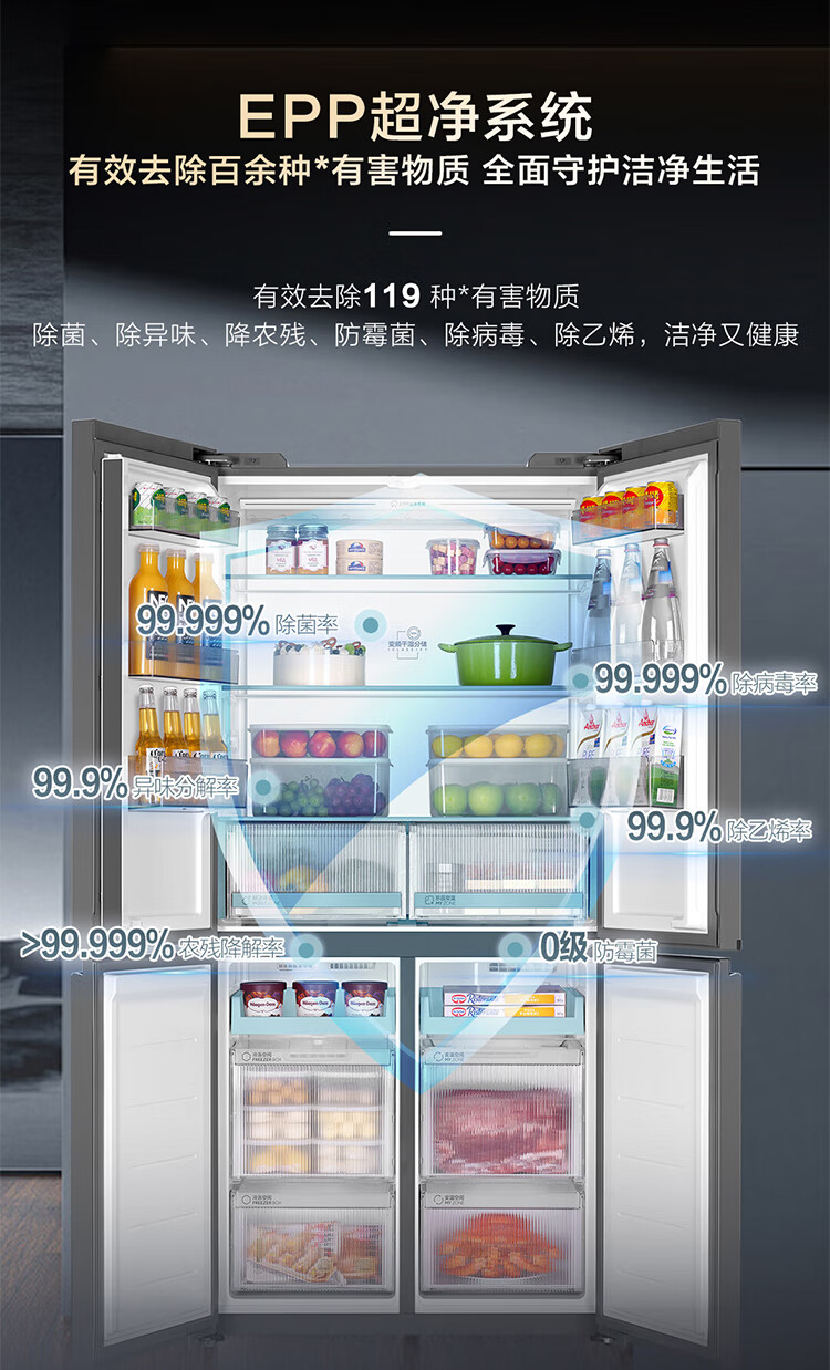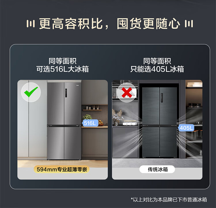 海尔(Haier)冰箱516升十字对开门T型四开门超薄零嵌入式一级能效干湿分储除菌家用大容量电冰箱国家补贴20% 博卡灰+594mm专业超薄零嵌+母婴三档变温