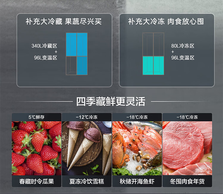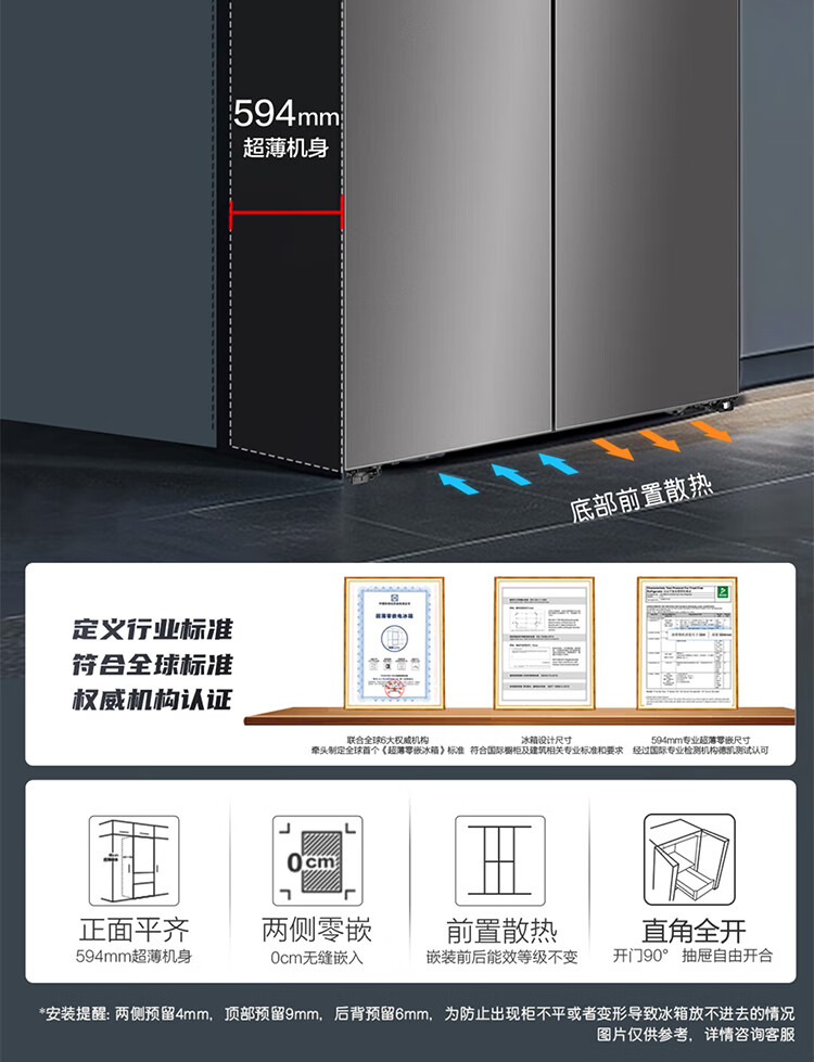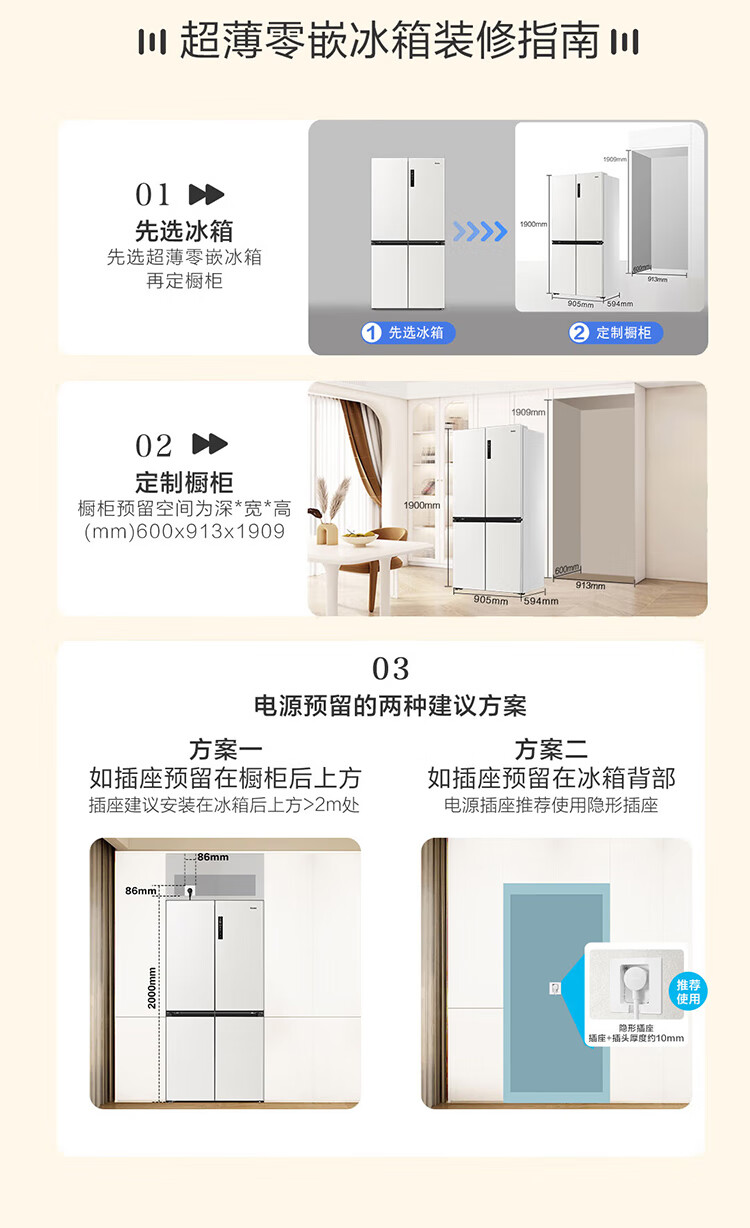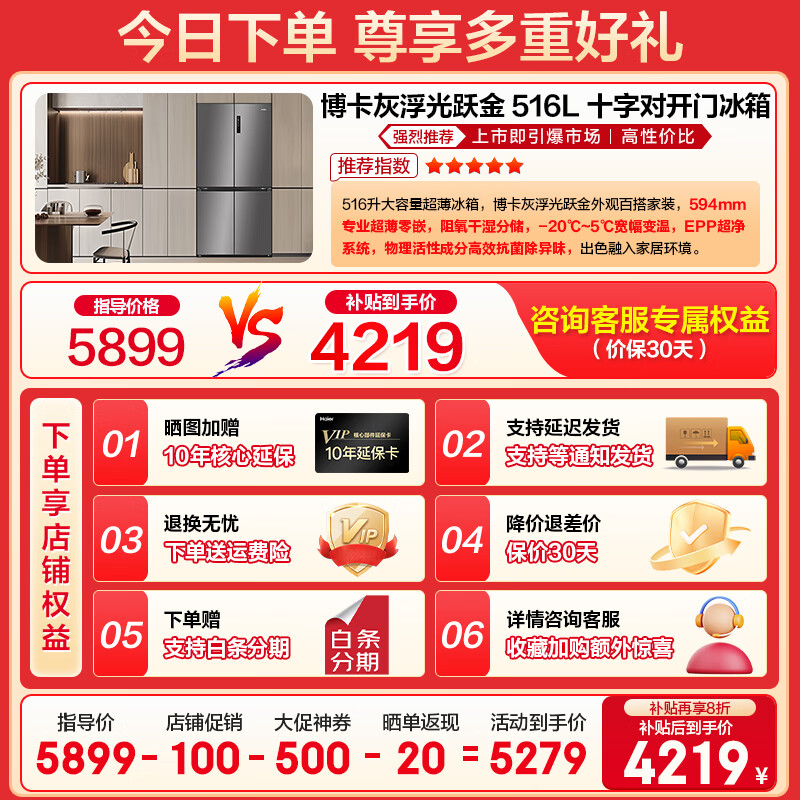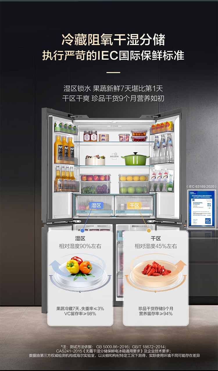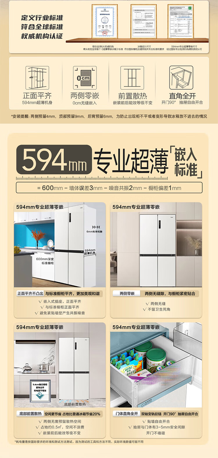海尔(Haier)冰箱516升十字对开门T型四开门超薄零嵌入式一级能效干湿分储除菌家用大容量电冰箱国家补贴20% 博卡灰+594mm专业超薄零嵌+母婴三档变温