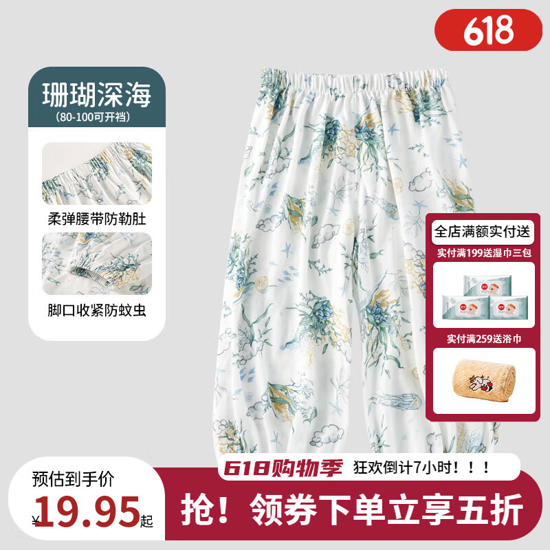 欧孕(OUYUN)宝宝防蚊裤儿童裤子夏季薄款婴儿竹棉睡裤男童女童休闲灯笼裤 珊瑚深海【竹棉-透气清爽】 80 cm