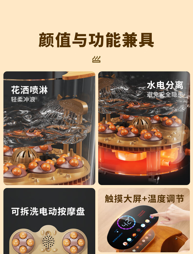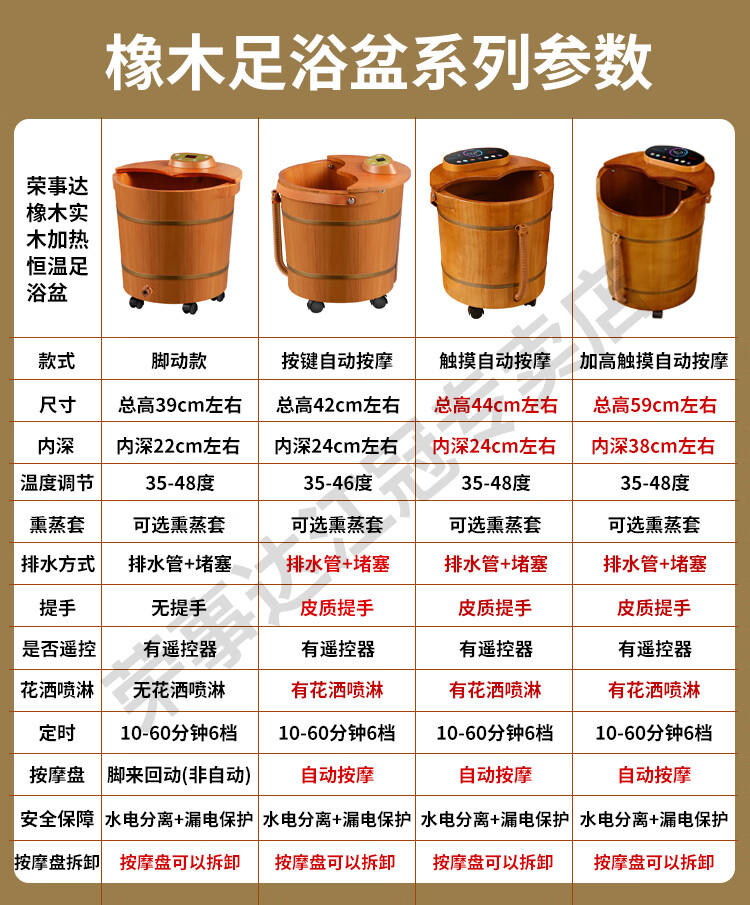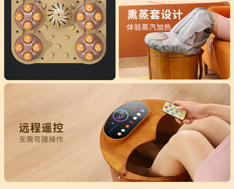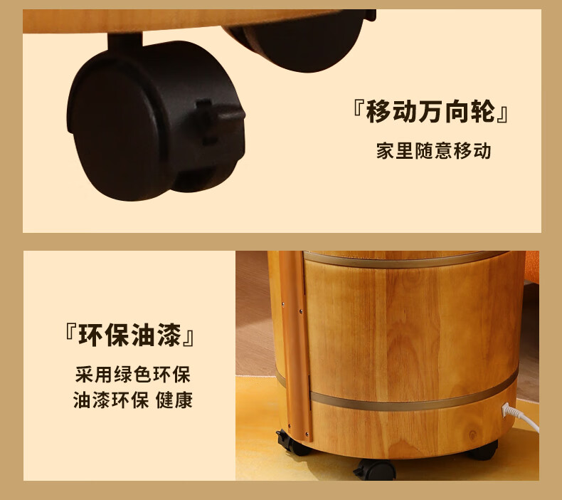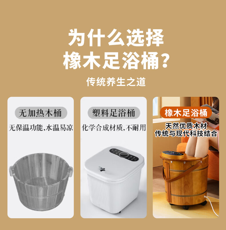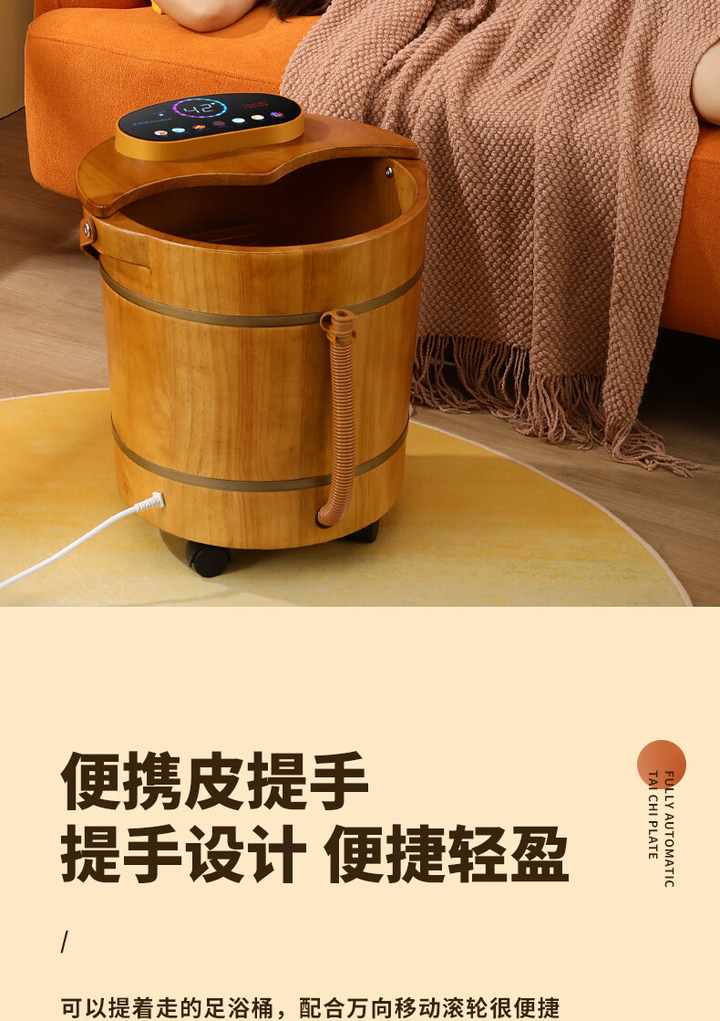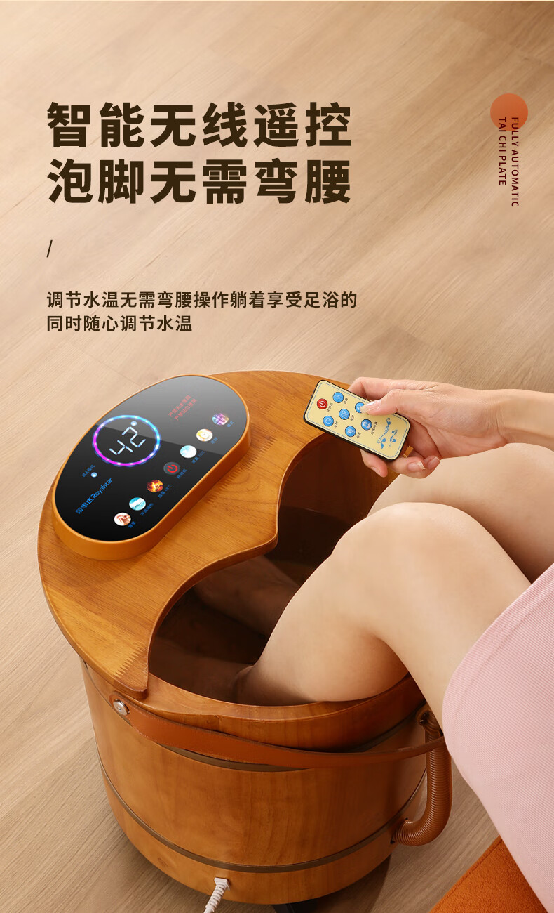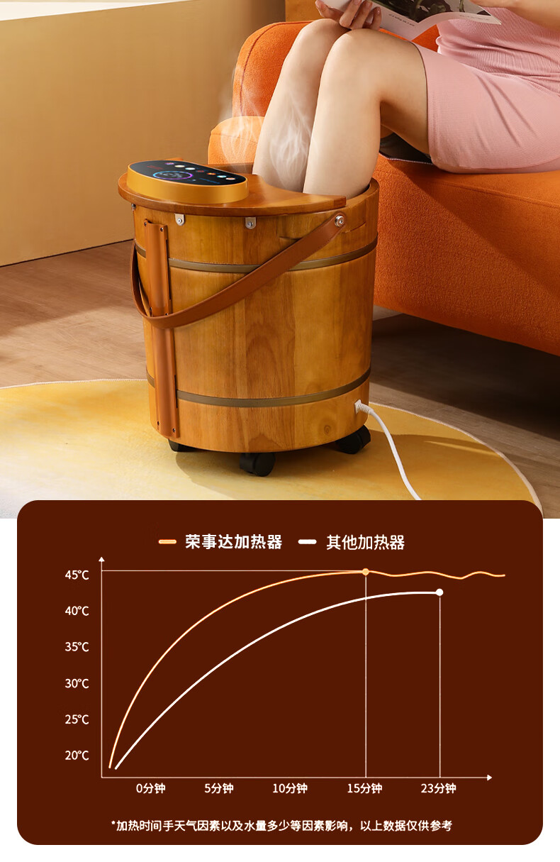 荣事达(Royalstar)泡脚桶木桶家用足浴盆全自动按摩加热恒温橡木洗脚盆过小腿 橡木39cm高/脚动按摩/升级加厚