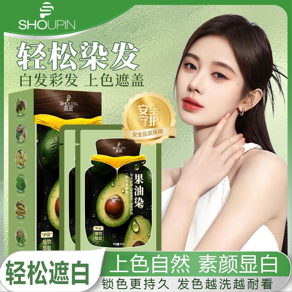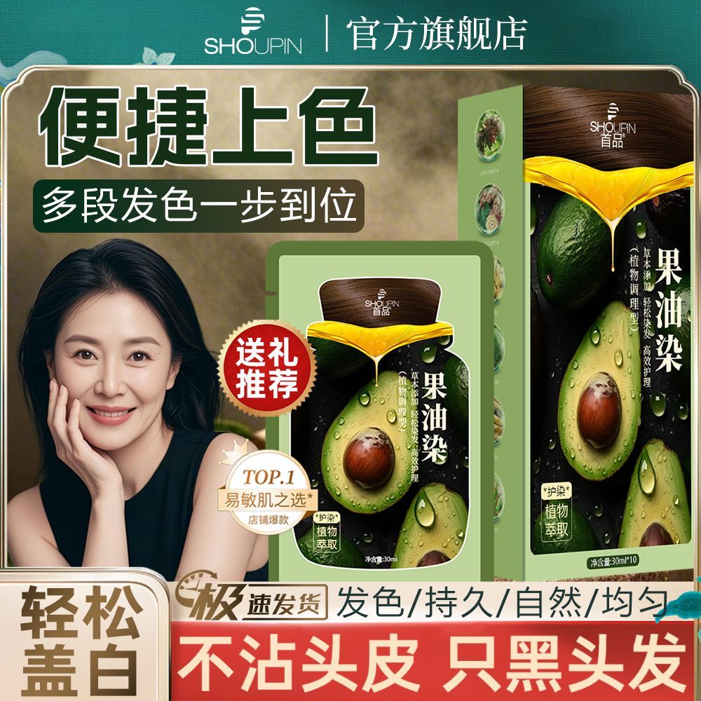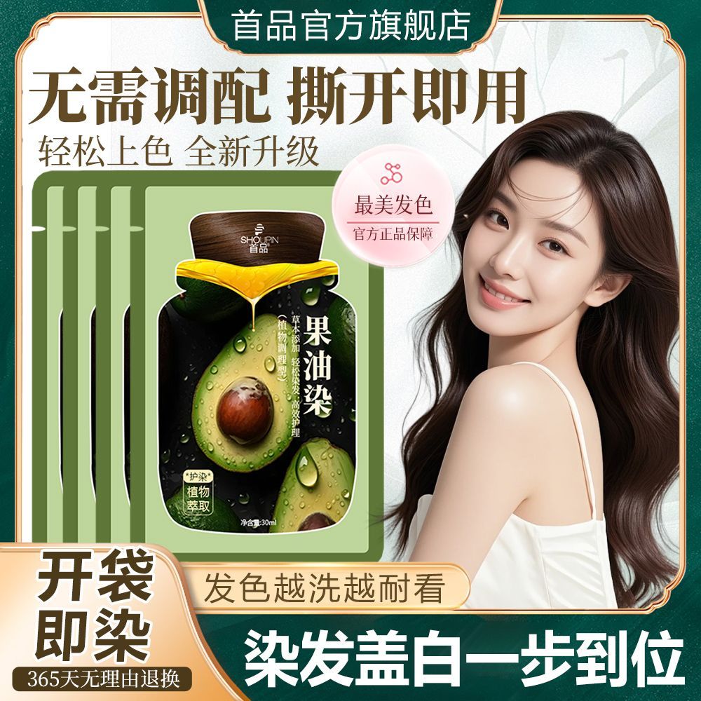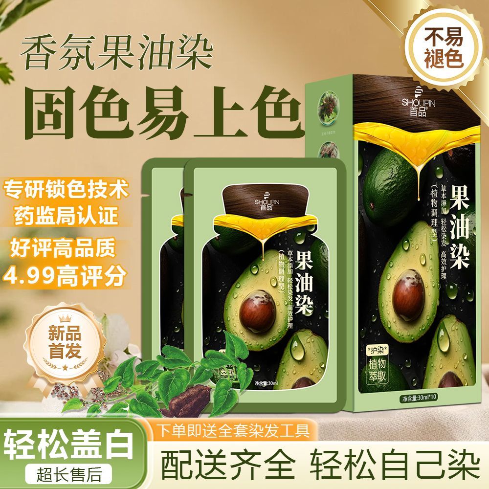 首品果油染独立袋装染发膏植物萃取男女通用自己在家染发遮盖白发