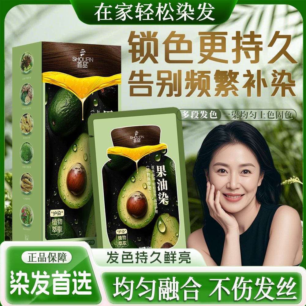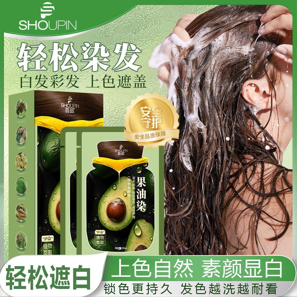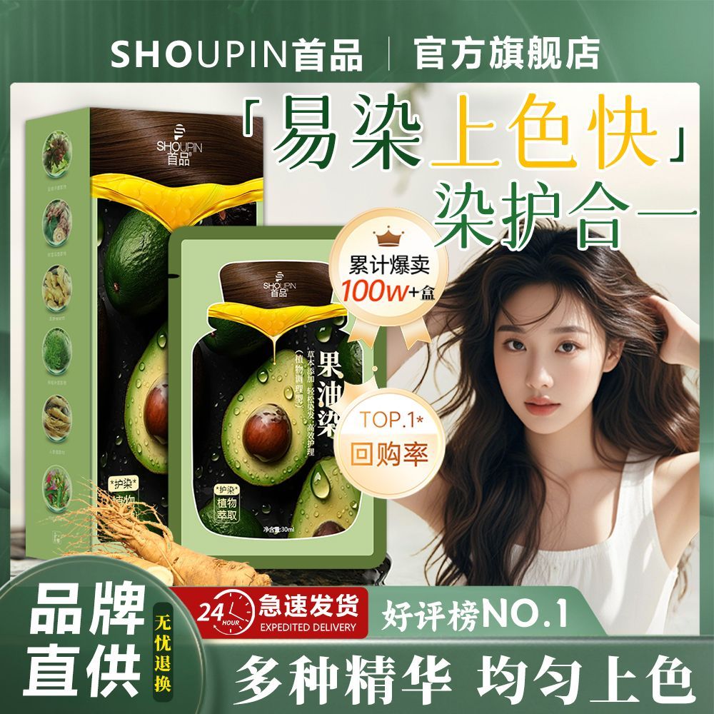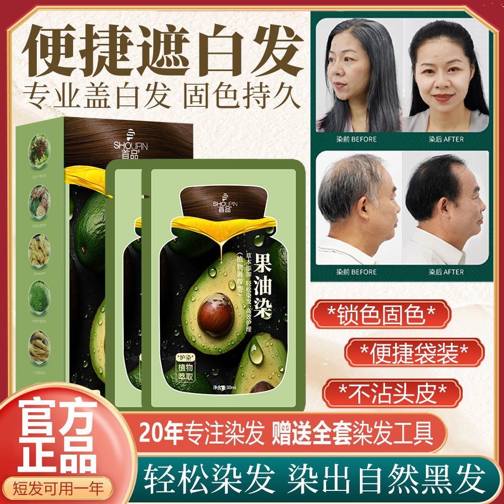 首品果油染独立袋装染发膏植物萃取男女通用自己在家染发遮盖白发