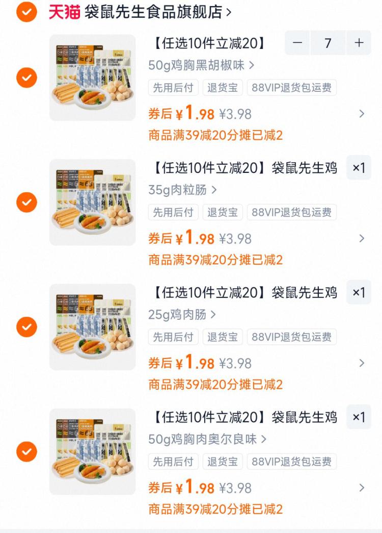 11月26日:袋鼠先生鸡胸肉*10件19.8 减肉健身宝必囤