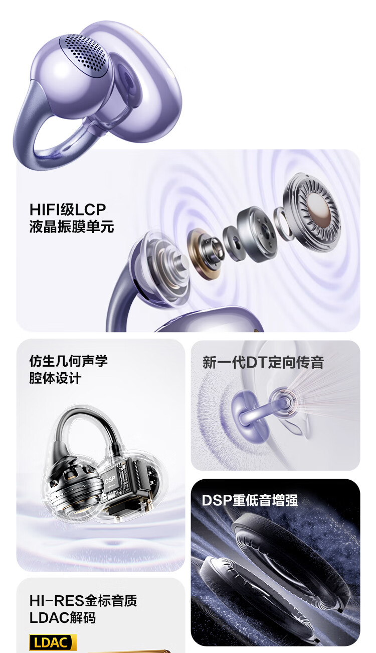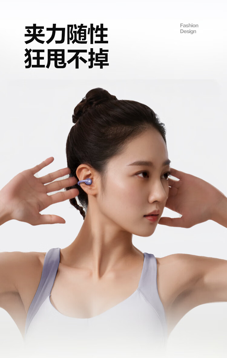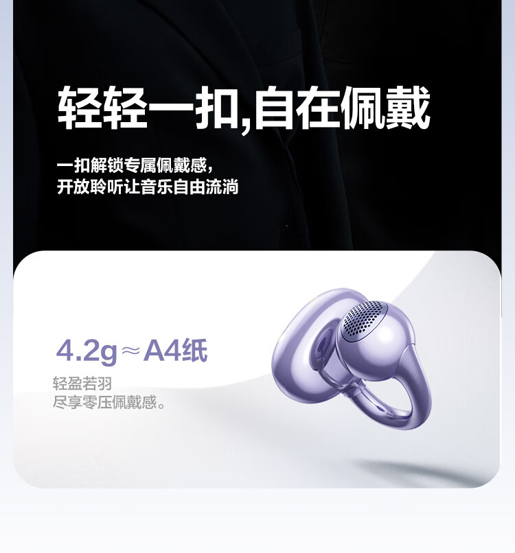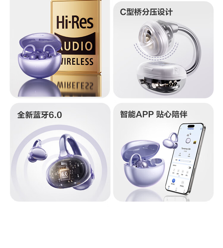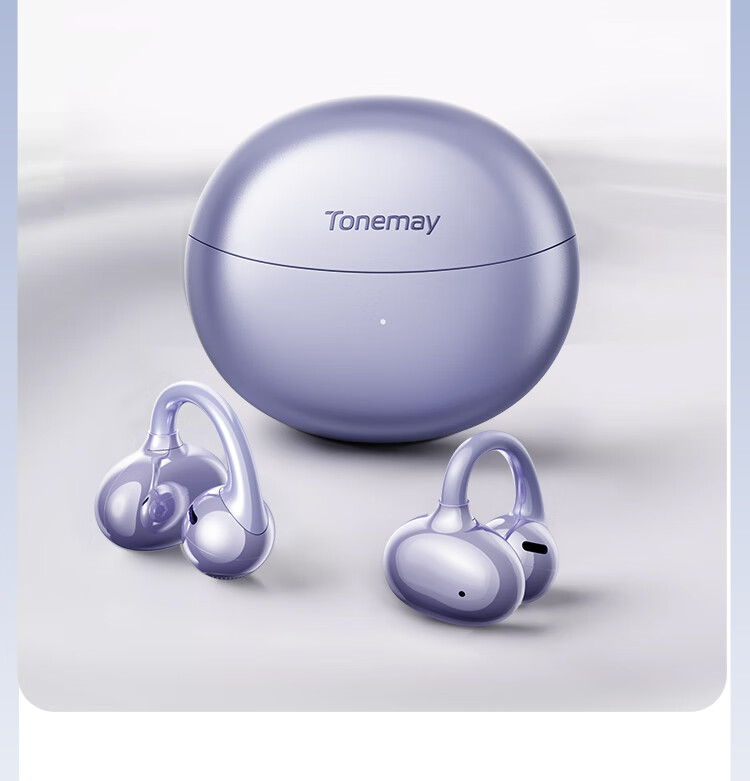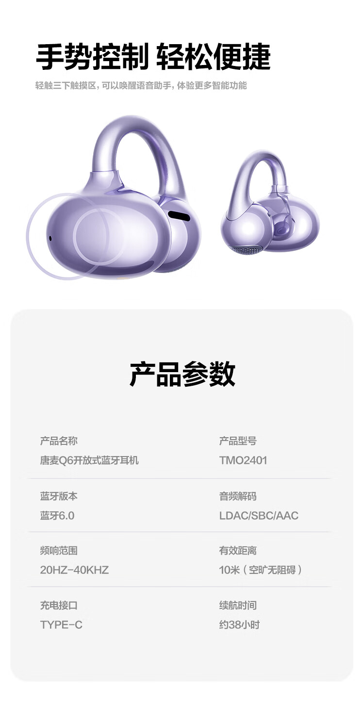 唐麦Q6耳夹开放式蓝牙耳机骨传导概念AI翻译会议通话降噪无线不入耳跑步运动挂耳式防汗电竞游戏通用紫