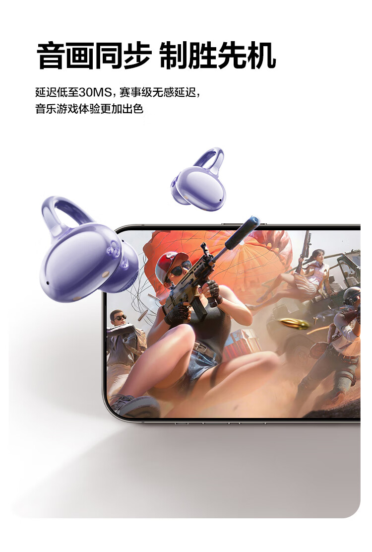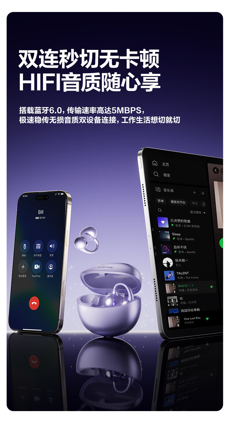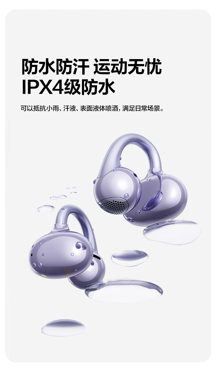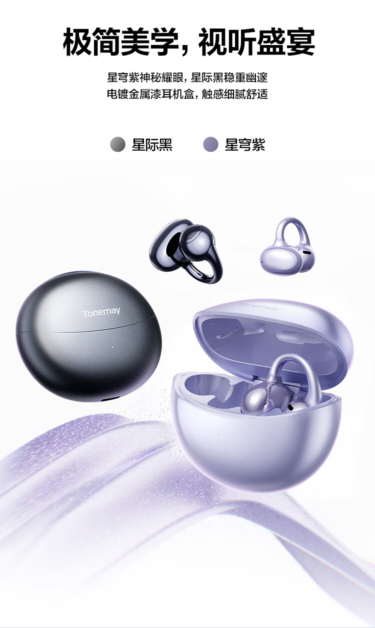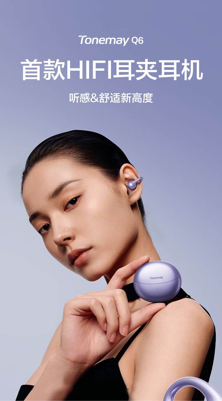 唐麦Q6耳夹开放式蓝牙耳机骨传导概念AI翻译会议通话降噪无线不入耳跑步运动挂耳式防汗电竞游戏通用紫