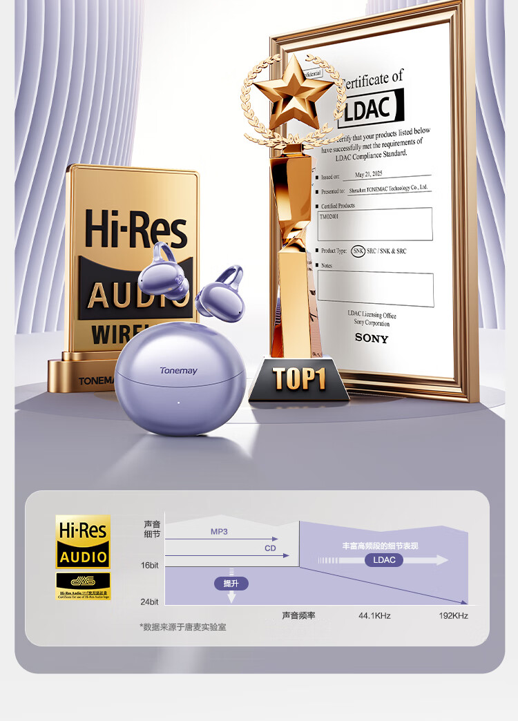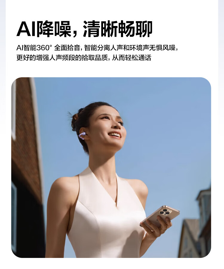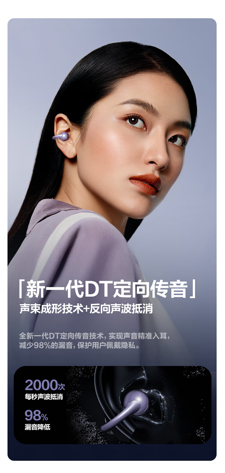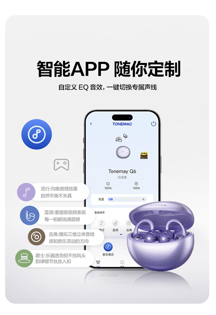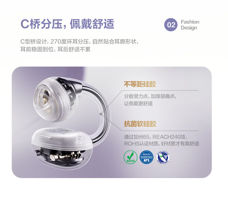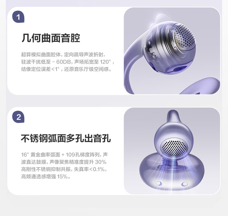 唐麦Q6耳夹开放式蓝牙耳机骨传导概念AI翻译会议通话降噪无线不入耳跑步运动挂耳式防汗电竞游戏通用紫
