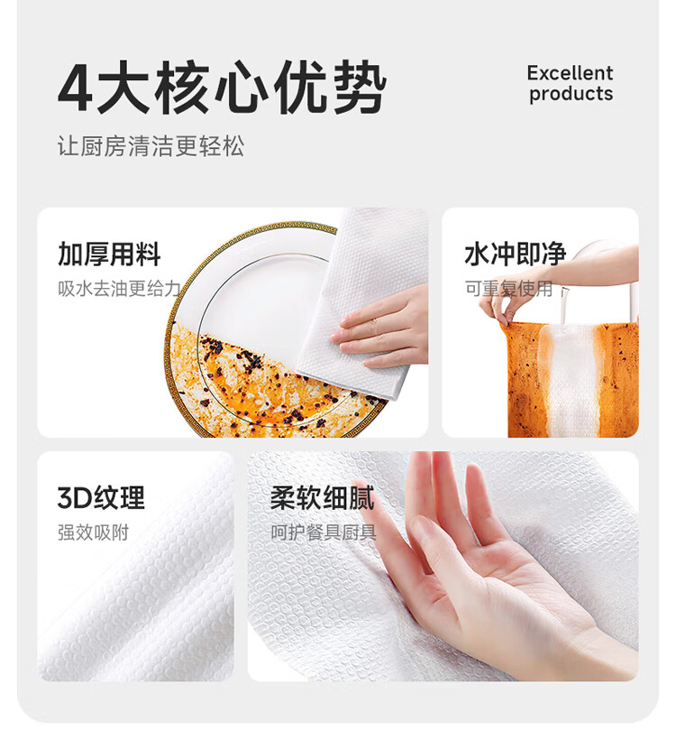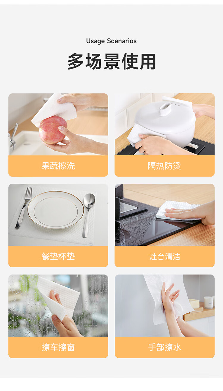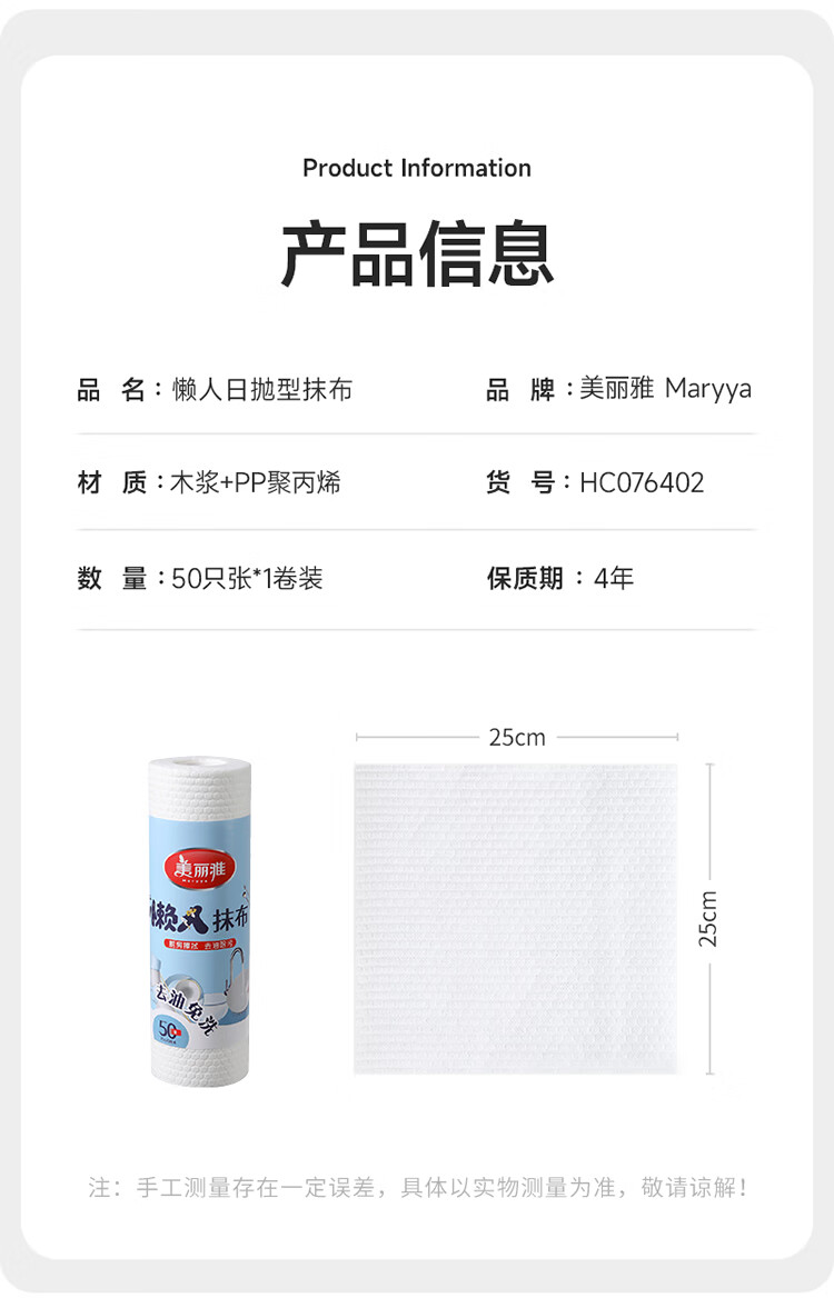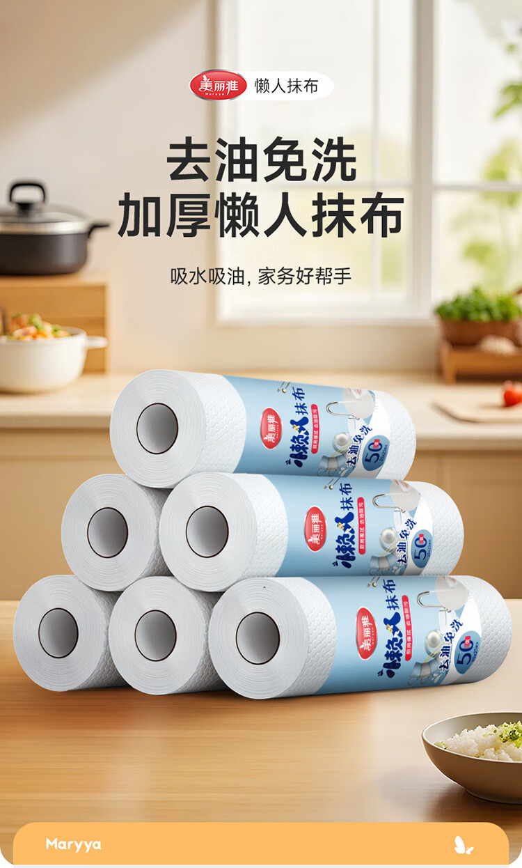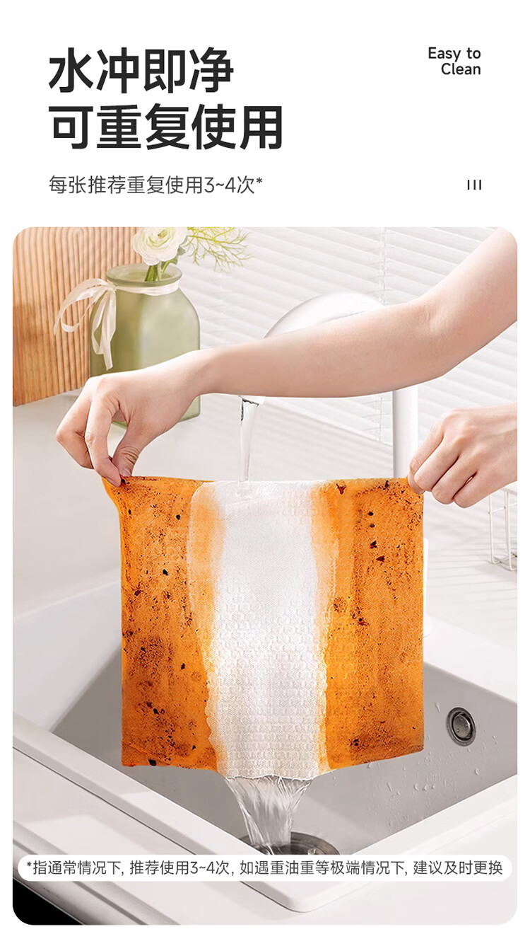美丽雅懒人抹布25*25cm吸油吸水厨房用纸巾一次性抹布洗碗巾可水洗