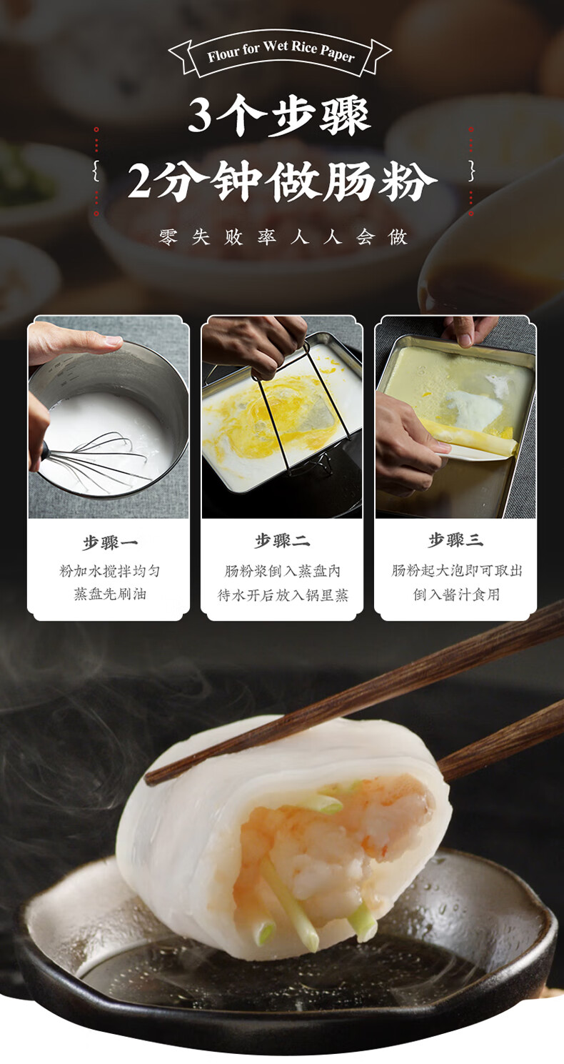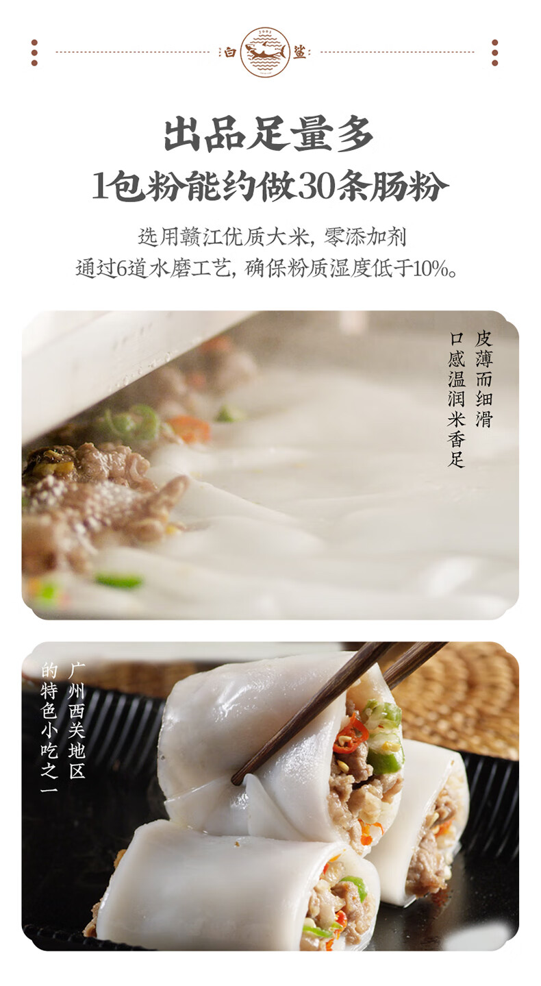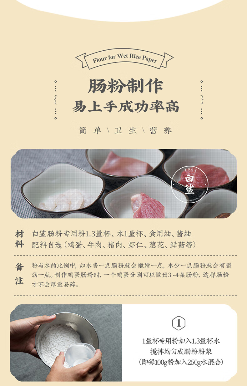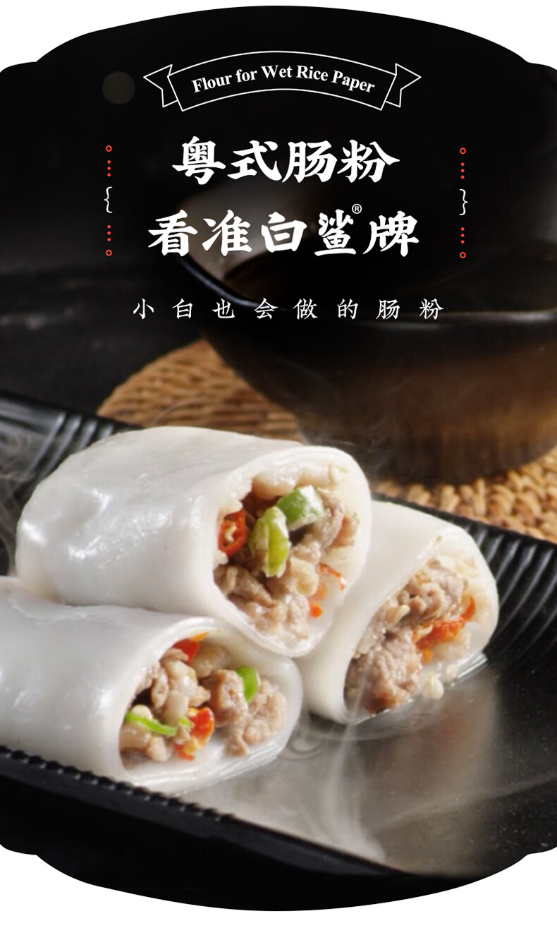 白鲨 石磨肠粉专用粉 布拉肠粉预拌粉 水磨粘米粉 广东肠粉粉500g