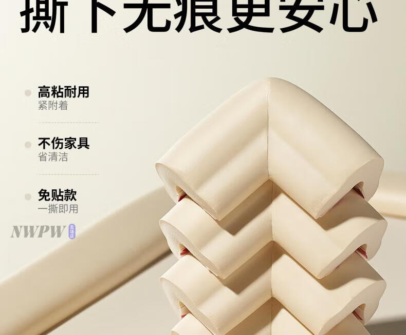 DEATKN德国婴儿童安全防撞角宝宝包边包角桌角贴护角软防磕碰保护套直角 【L型加厚】米白5个装【3M胶-免贴无痕_即撕即用