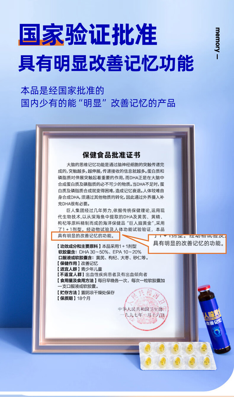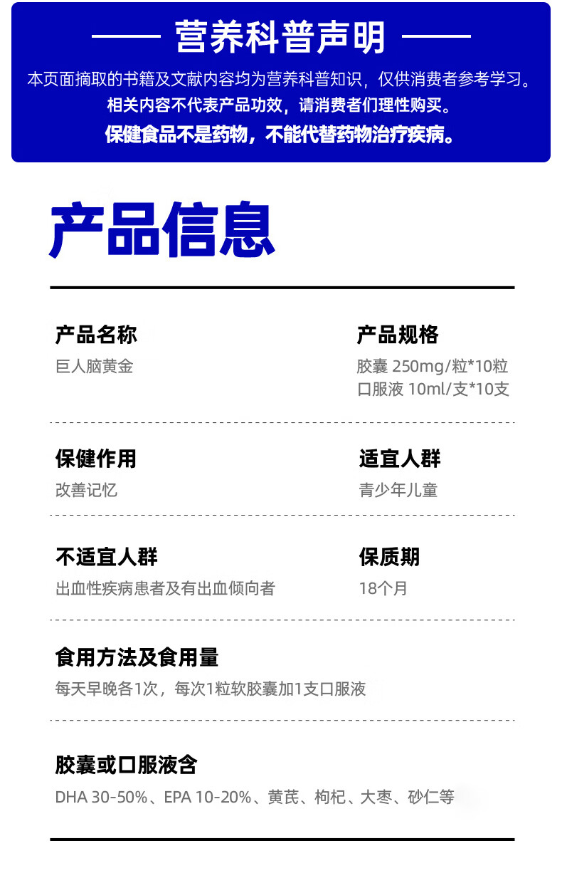 黄金搭档 dha学生儿童改善记忆力提高增加高中生青少年高三补脑巨人脑黄金