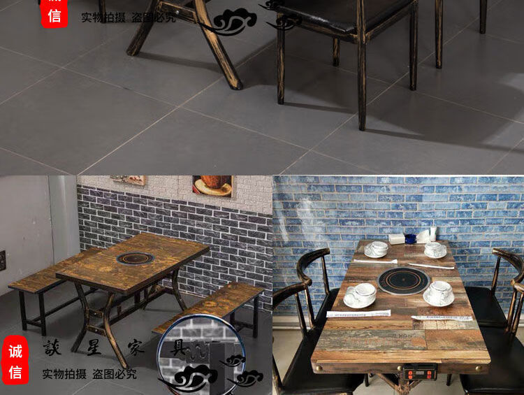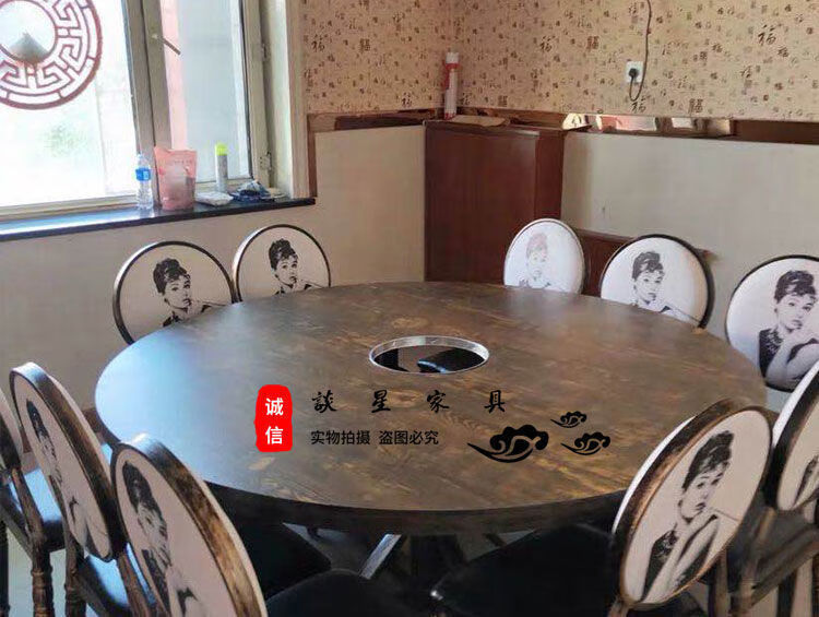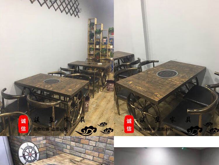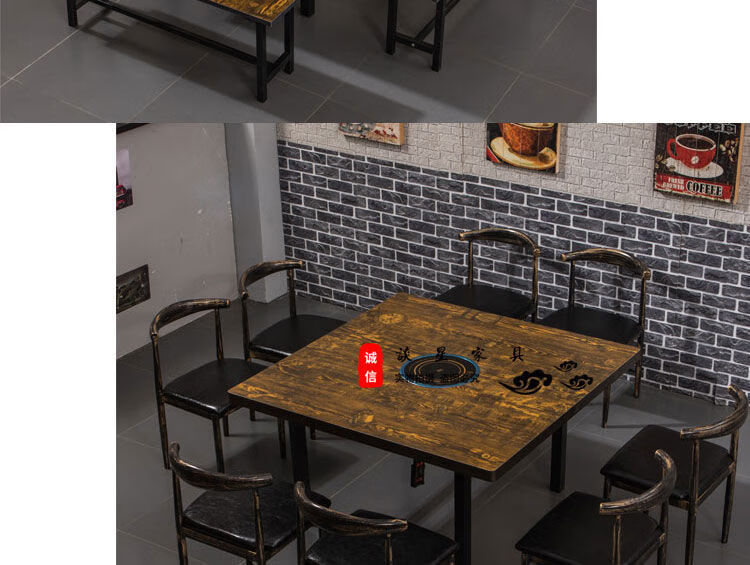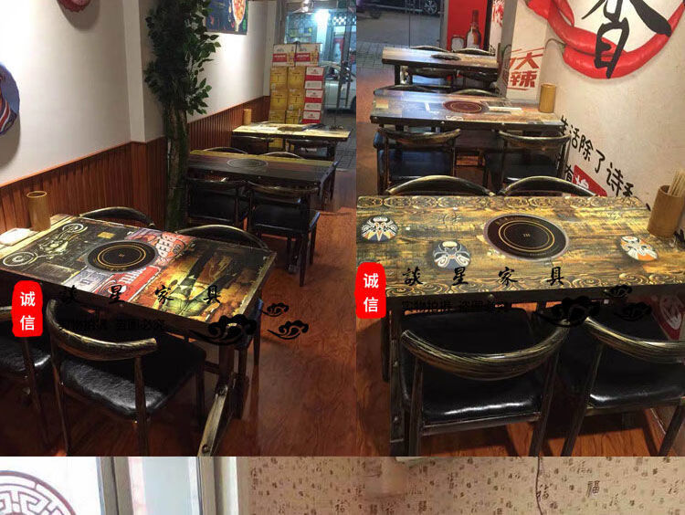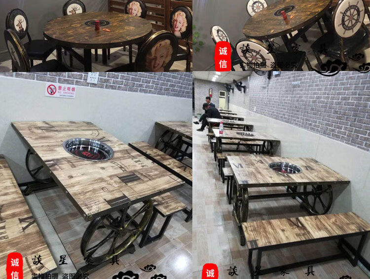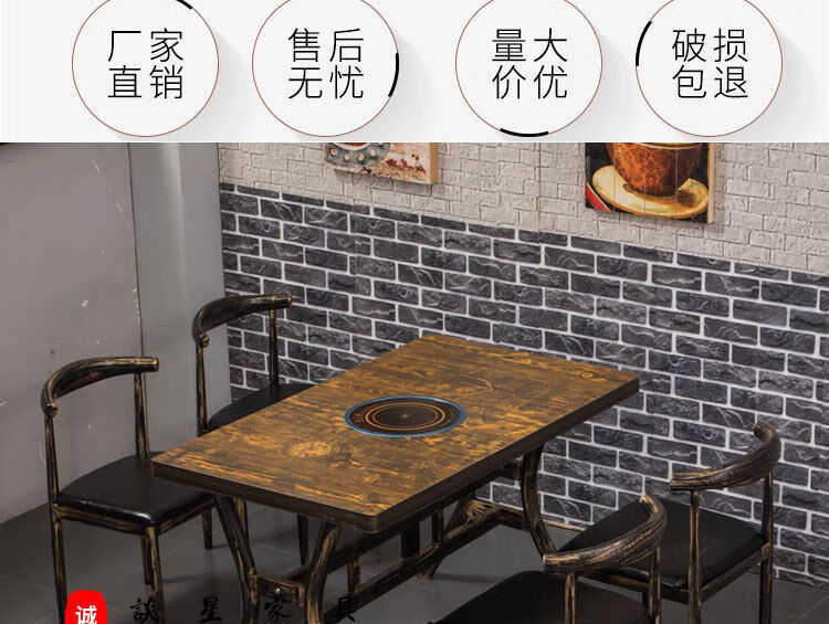 倘然之家主题复古火锅桌子电磁炉一体煤气灶一人一锅圆桌餐饮饭店桌椅组合 120*60一桌四椅+电磁炉款
