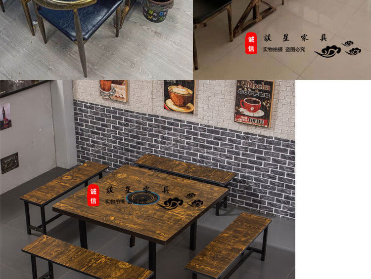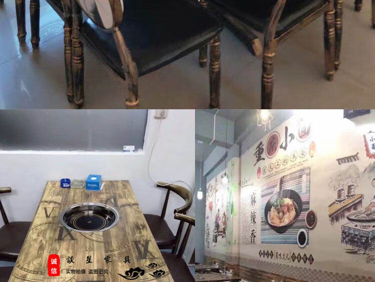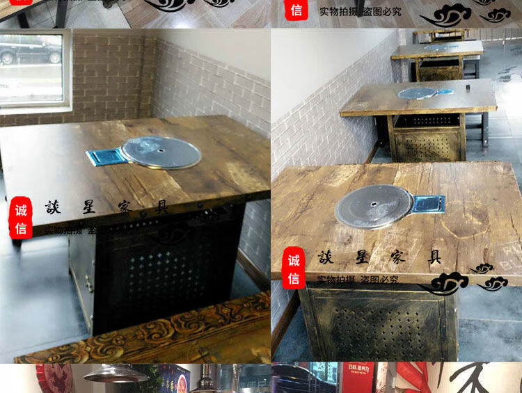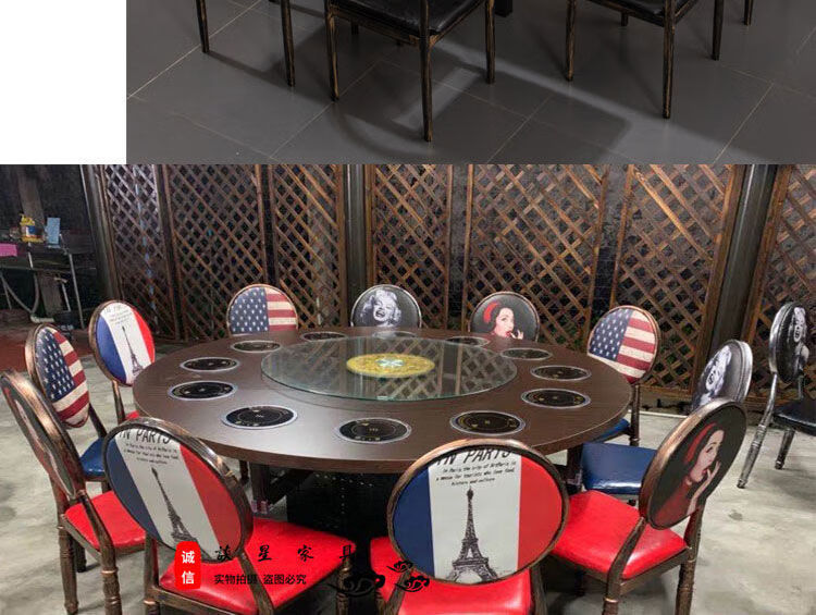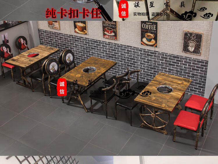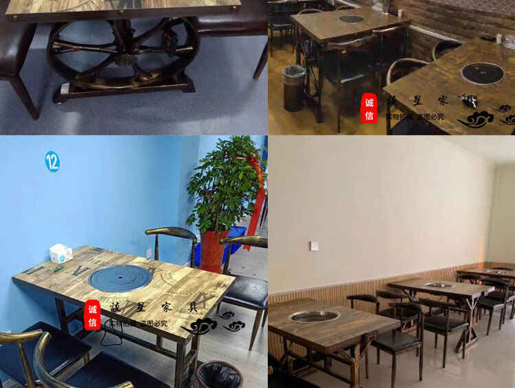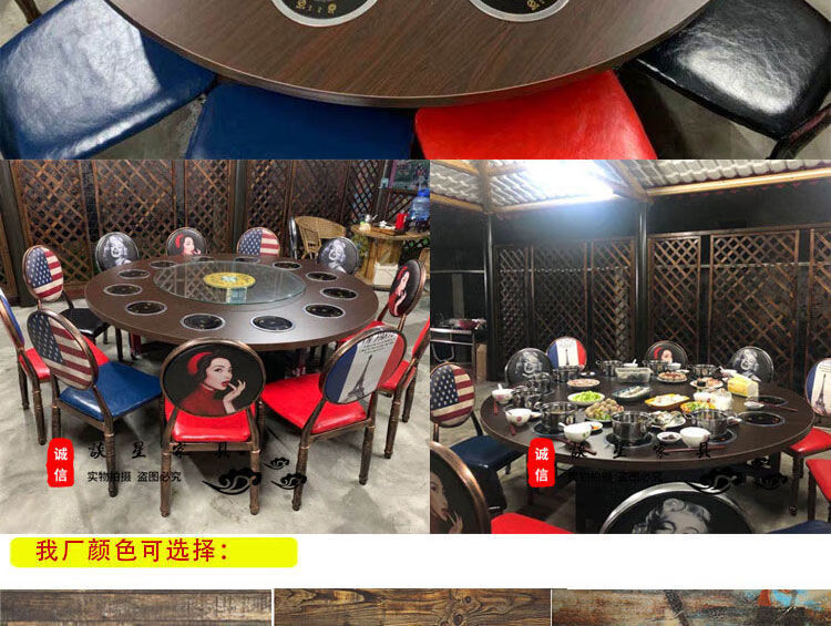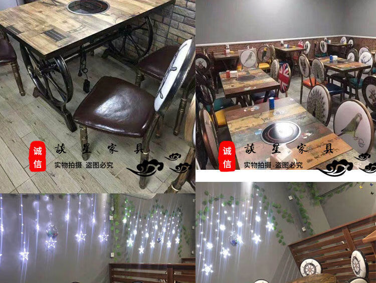 倘然之家主题复古火锅桌子电磁炉一体煤气灶一人一锅圆桌餐饮饭店桌椅组合 120*60一桌四椅+电磁炉款