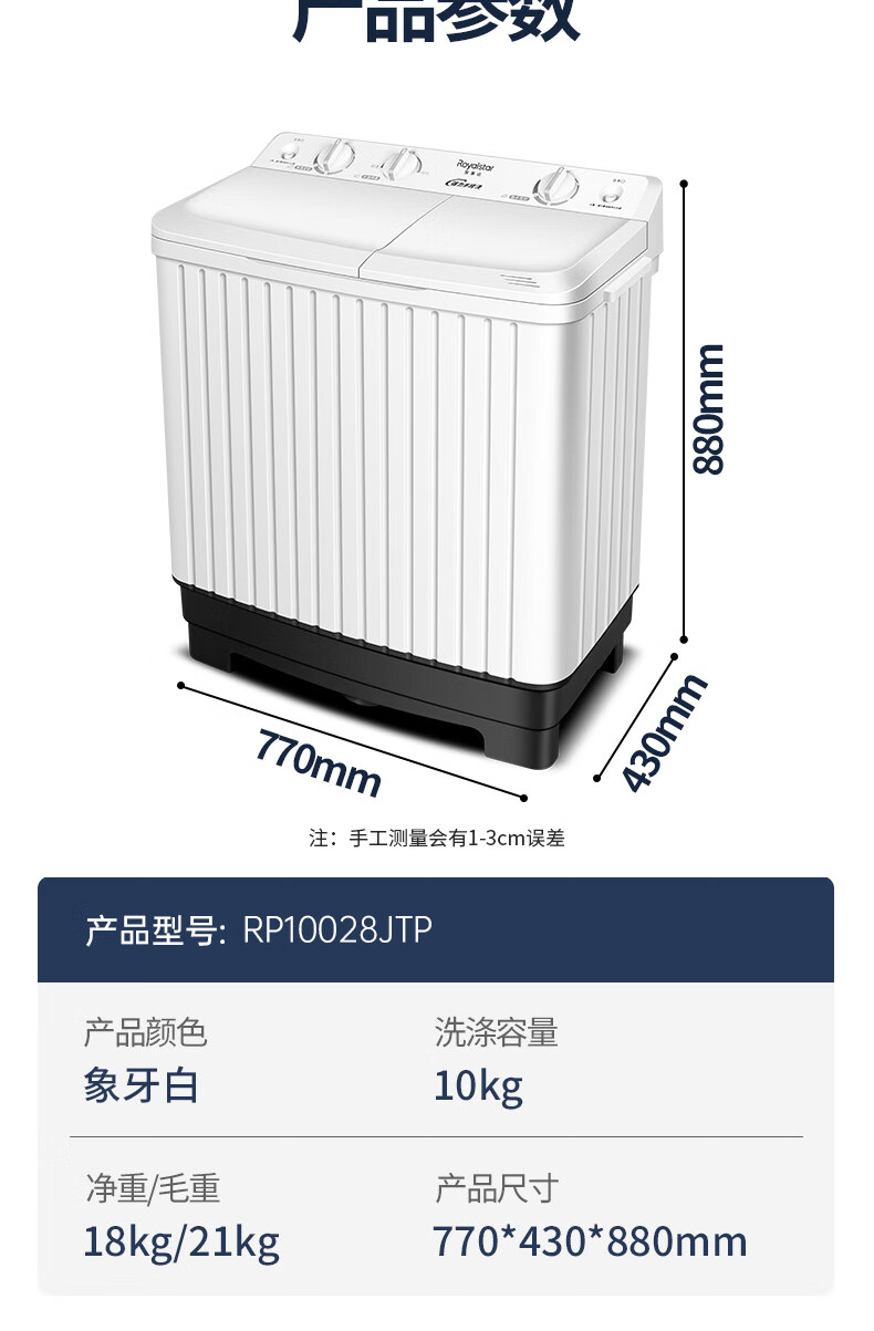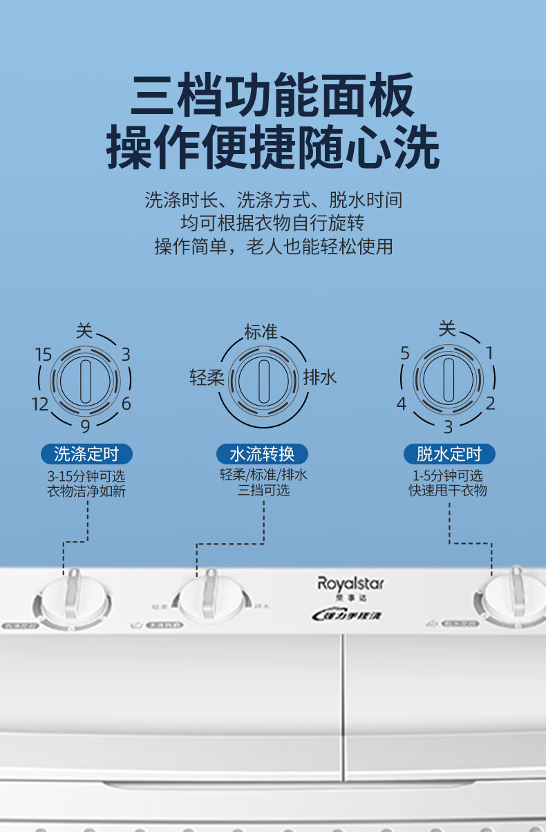 荣事达(Royalstar)洗衣机半自动家用大容量双桶双缸波轮洗衣机脱水甩干双筒 半自动洗衣机 15.5公斤洗+脱【洗10KG+脱5.5KG】