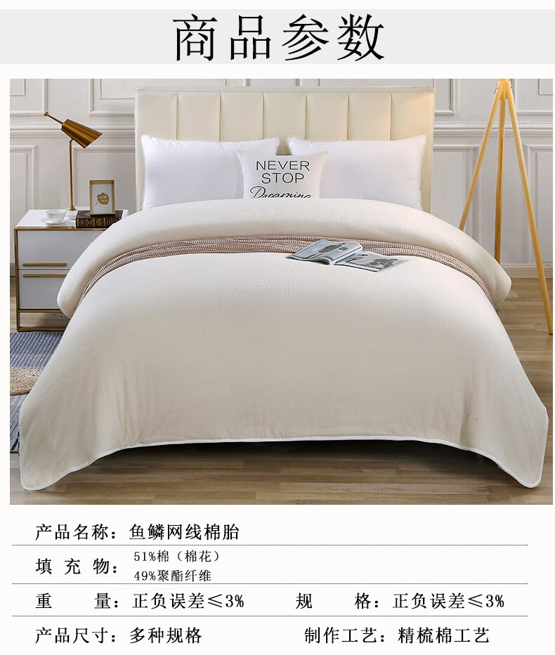 伊路卡被子冬季棉被新疆棉花被被芯棉花胎棉絮复合混棉学生床褥垫子 200*230cm/4斤(夏款)