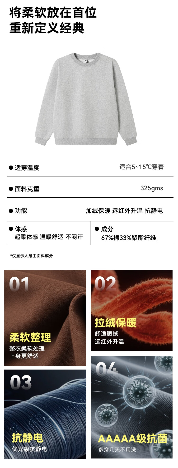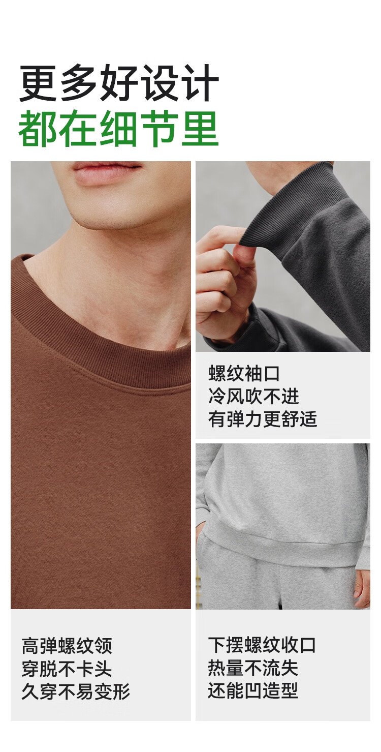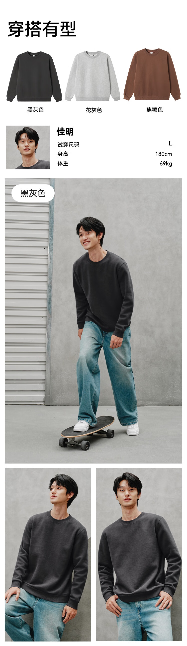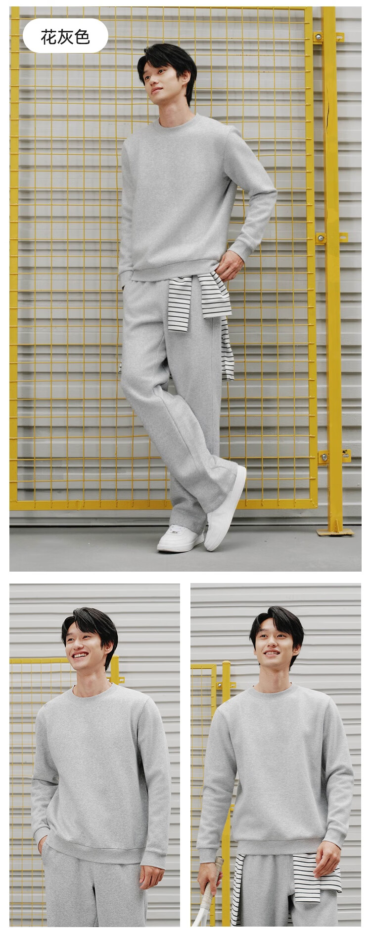 京东京造超柔运动休闲圆领卫衣男秋冬加绒打底长袖上衣百搭时尚灰黑XL