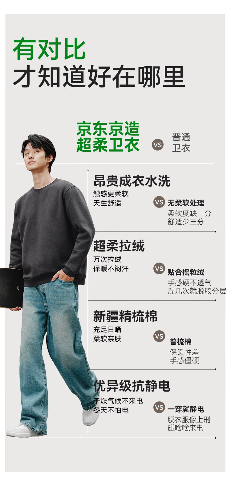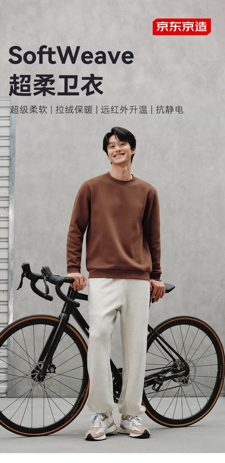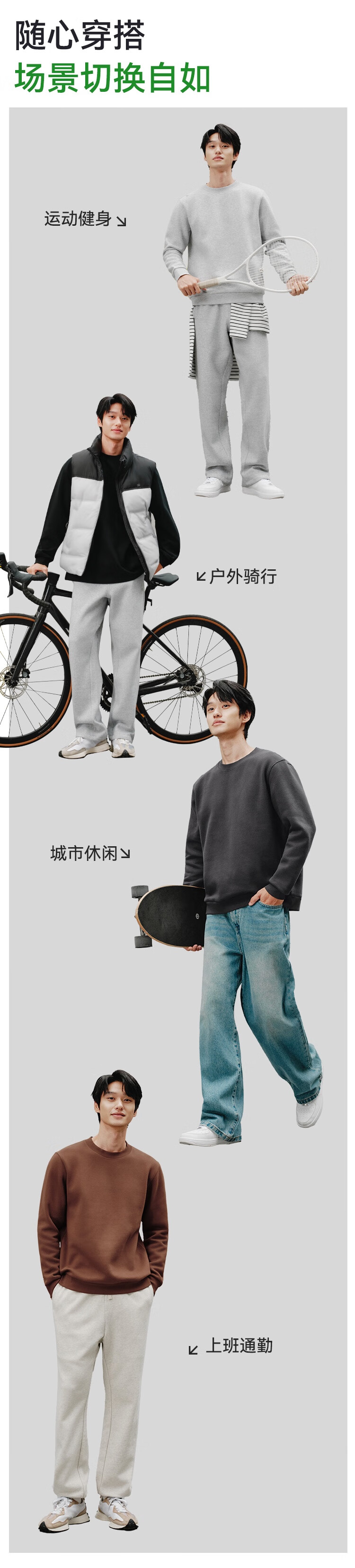 京东京造超柔运动休闲圆领卫衣男秋冬加绒打底长袖上衣百搭时尚灰黑XL