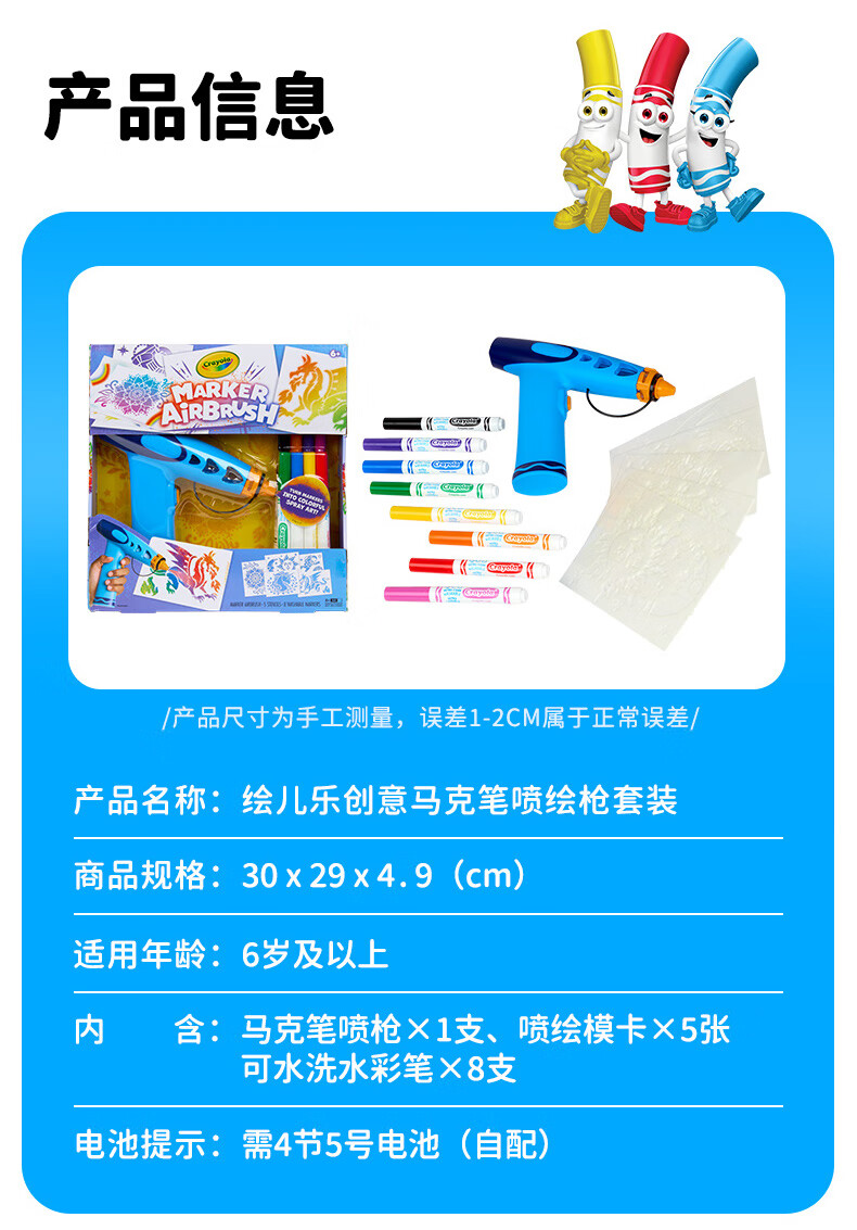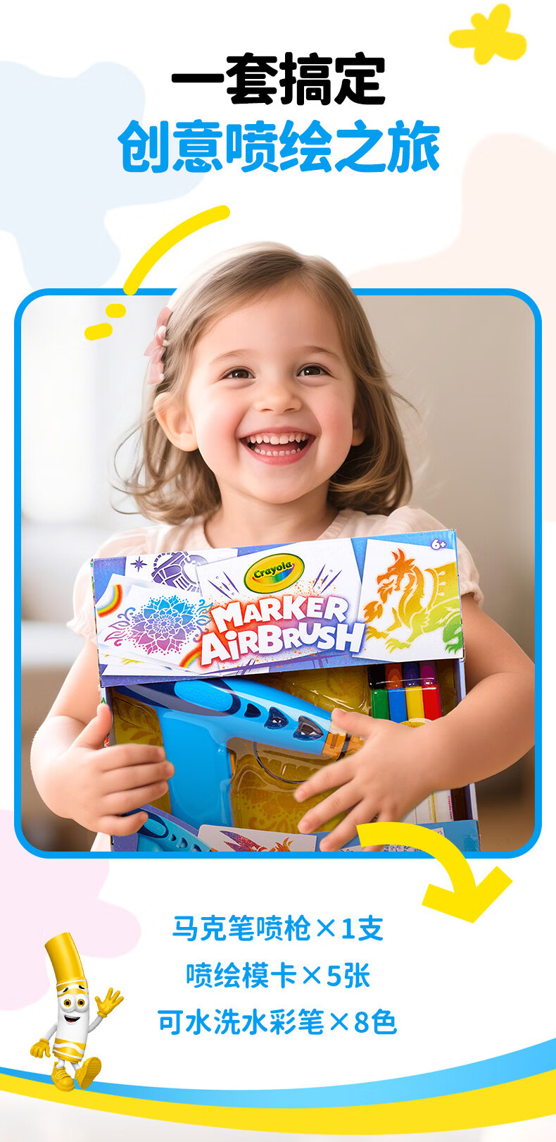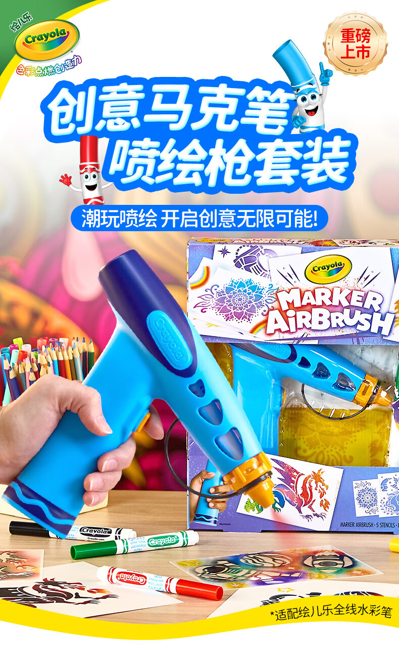 绘儿乐(Crayola)马克笔喷枪电动喷笔小学生幼儿园涂鸦绘画手办模型上色喷绘工具套装便携 喷枪1支电池款