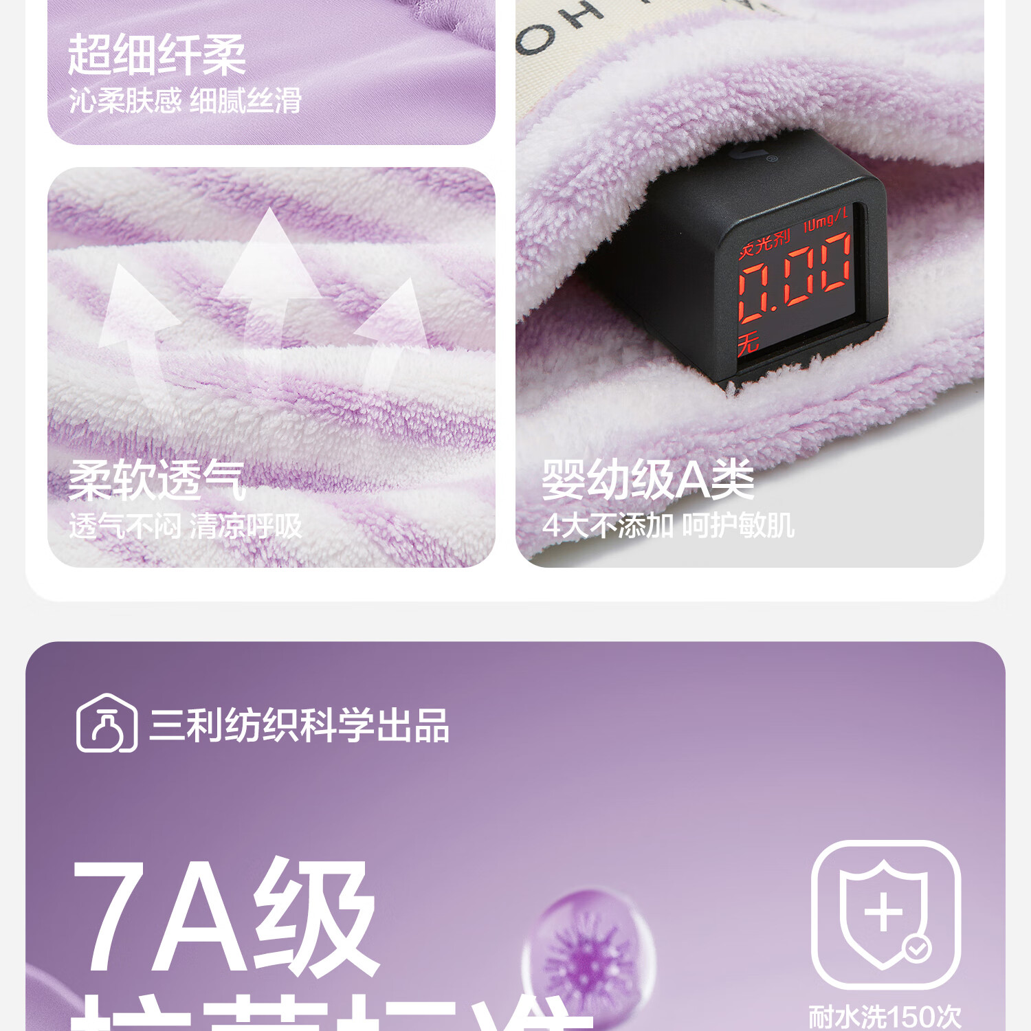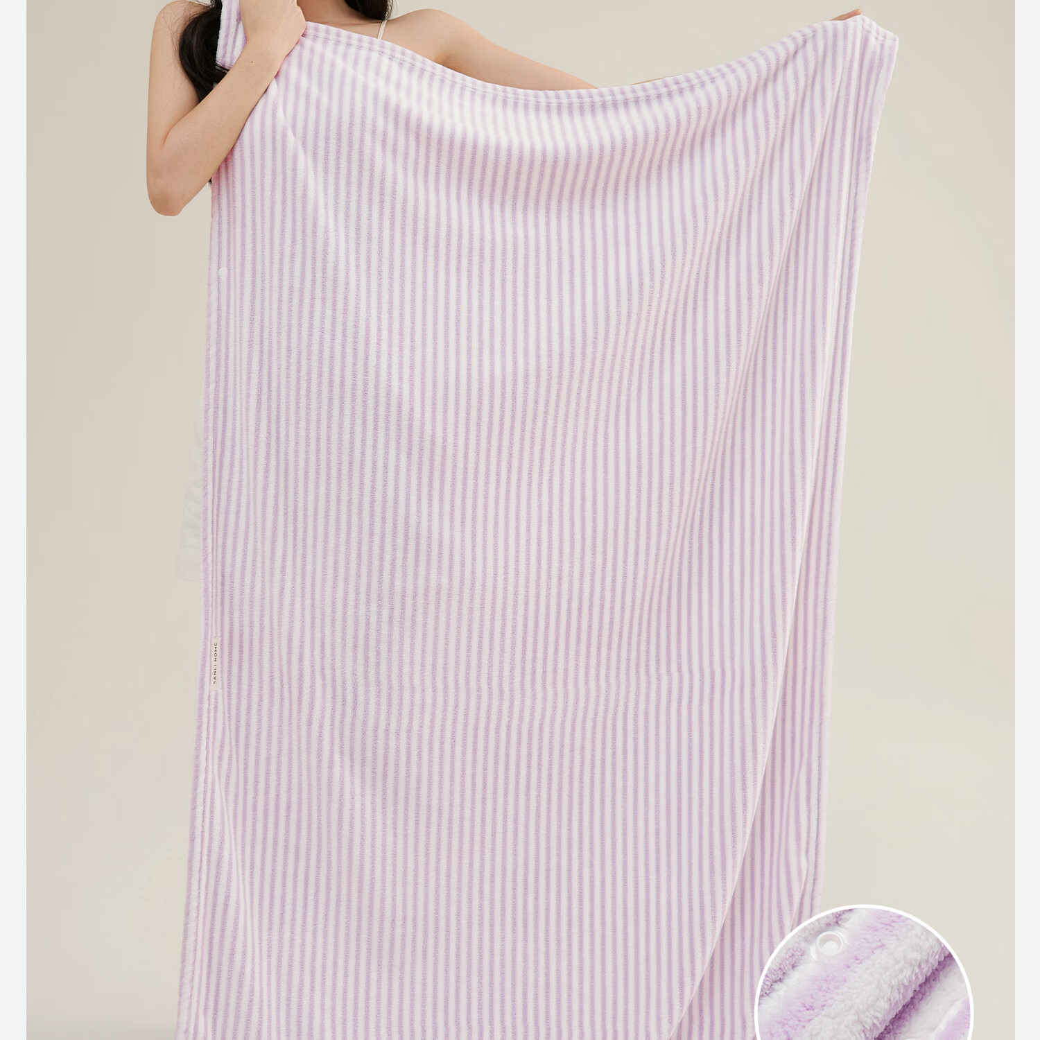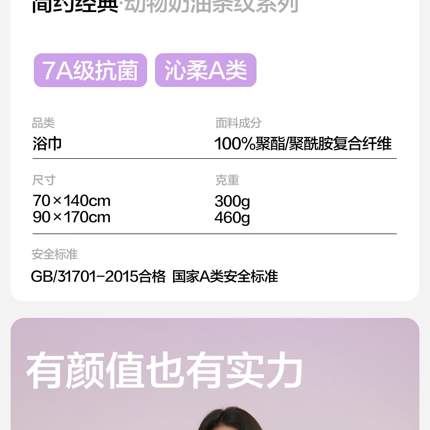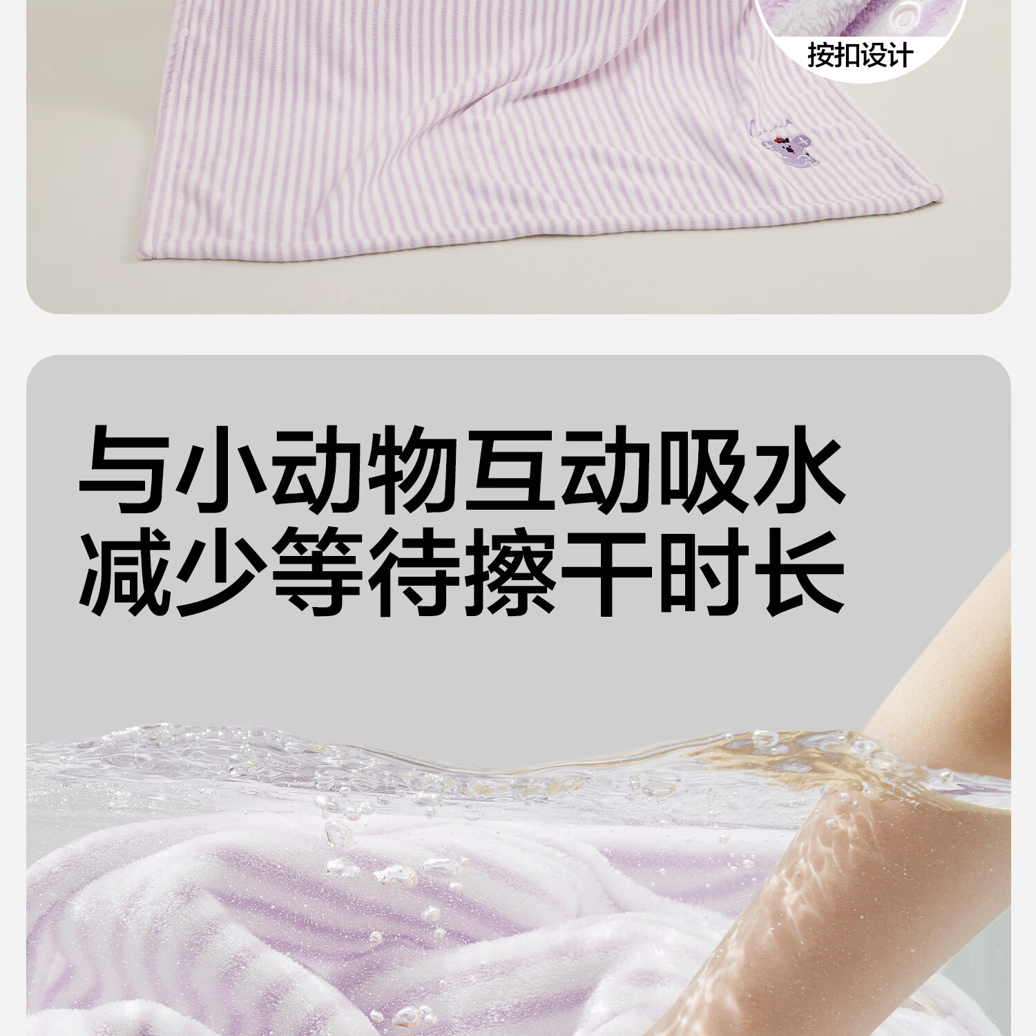 三利10A抗菌浴巾女2025新款比全棉吸水成人大毛巾儿童情侣男款裹巾 蜜桃奶猫 300g 70cm*140cm