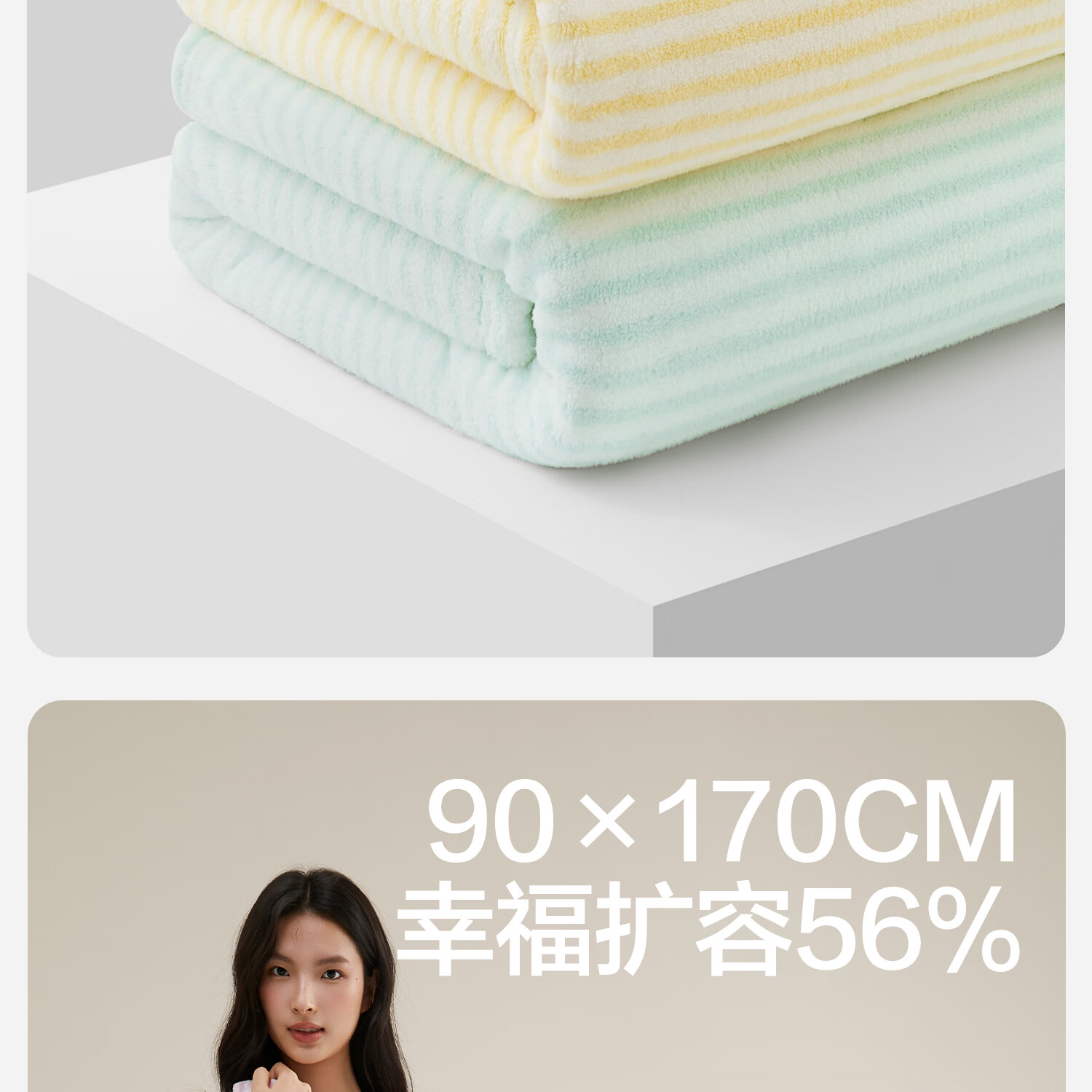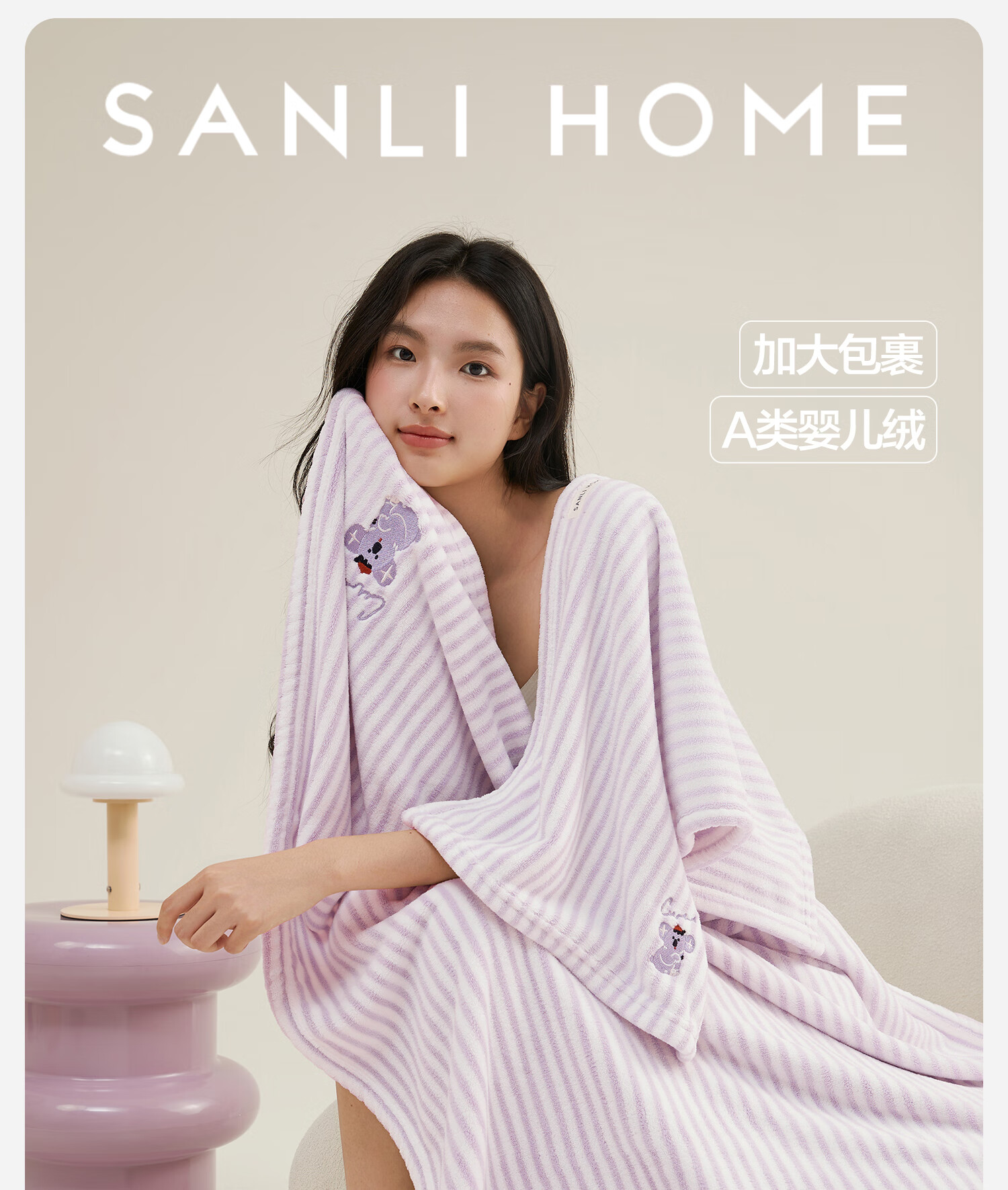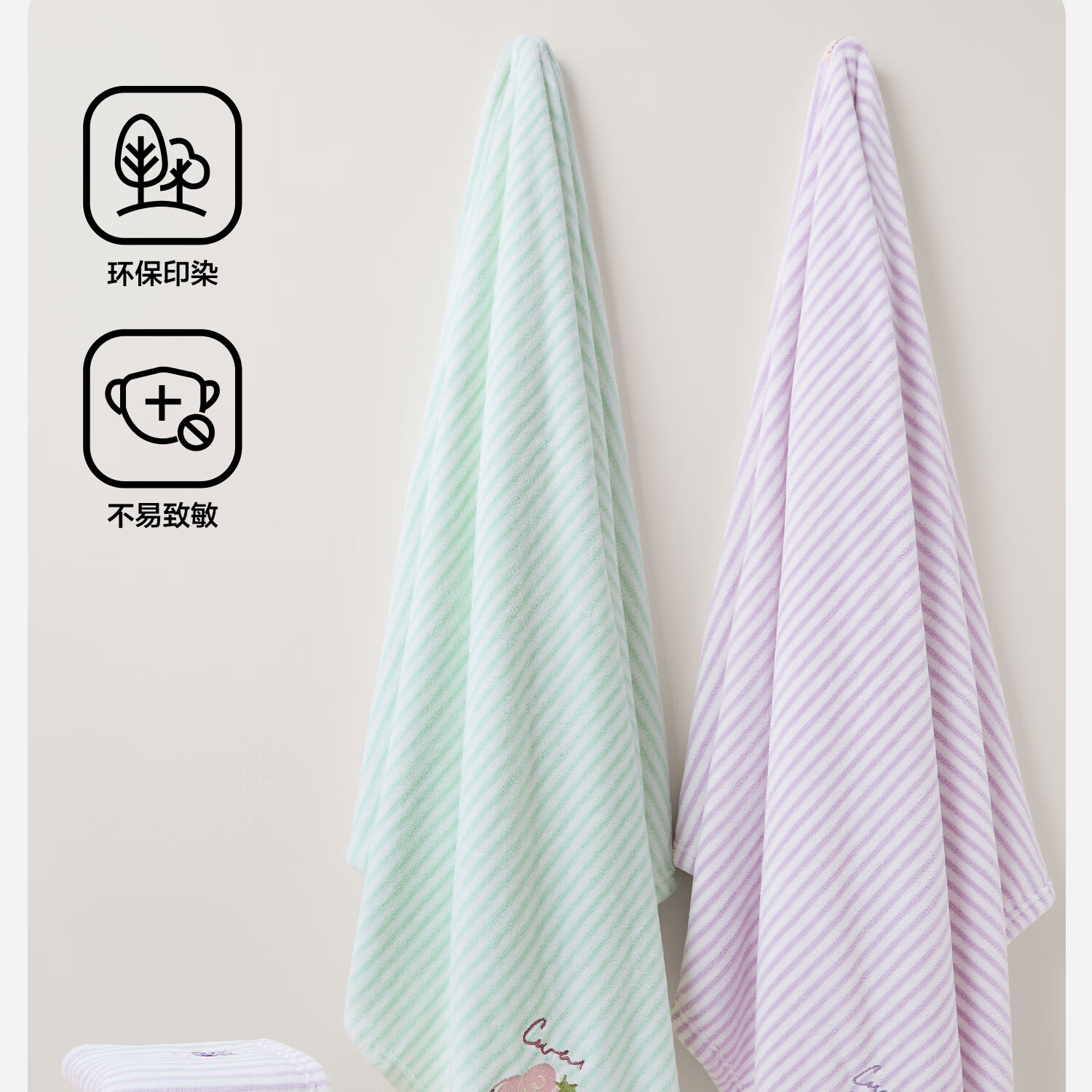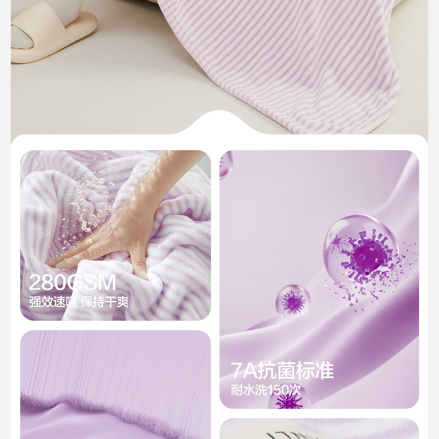 三利10A抗菌浴巾女2025新款比全棉吸水成人大毛巾儿童情侣男款裹巾 蜜桃奶猫 300g 70cm*140cm