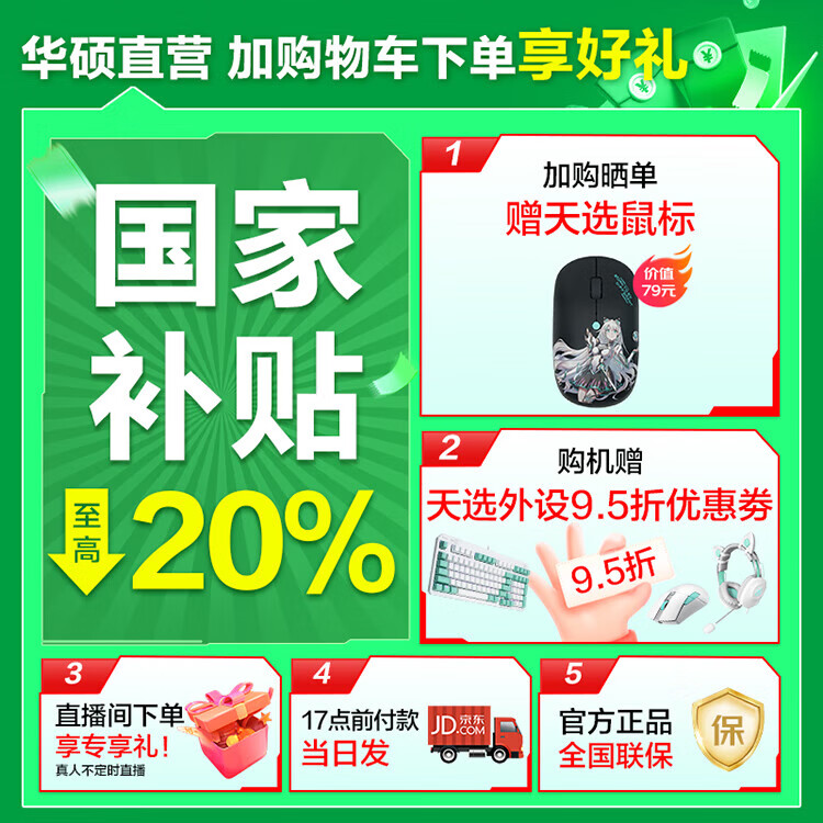 华硕天选6 Pro 酷睿版 国家补贴 酷睿HX 16英寸电竞游戏本 笔记本电脑 酷睿i7-14650HX/RTX5060/魔幻青 16G内存/1T高速固态硬盘 2.5K 16:10高刷高亮高色域电竞屏