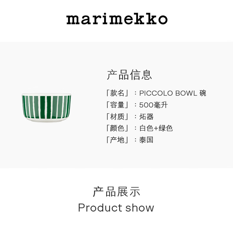 marimekko【热销补货】玛莉美歌早秋PICCOLO印花碗500ml居家餐瓷 白色、绿色