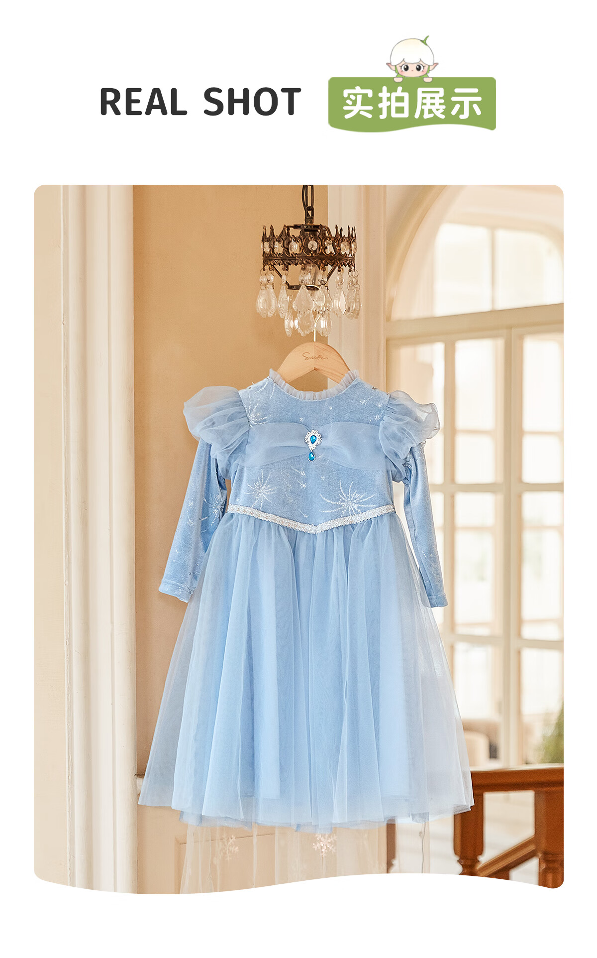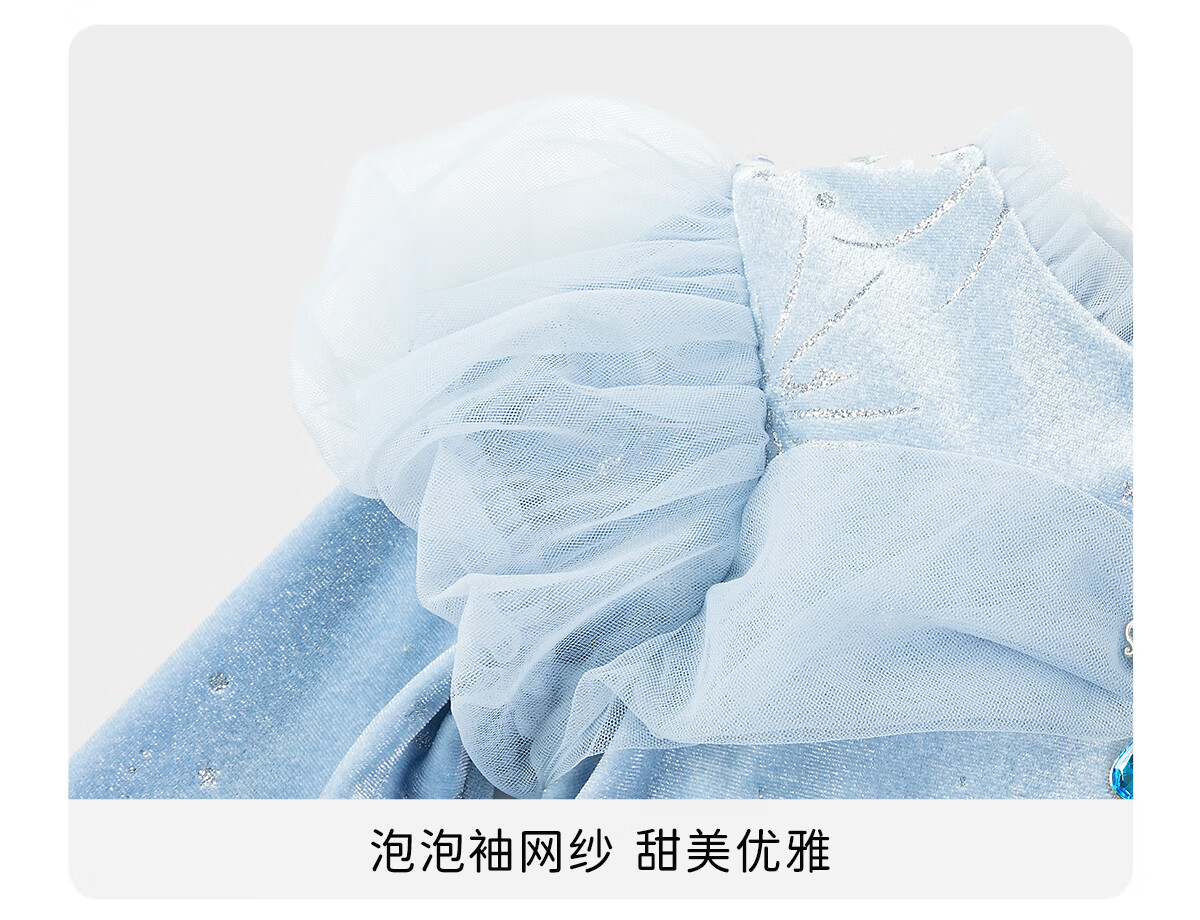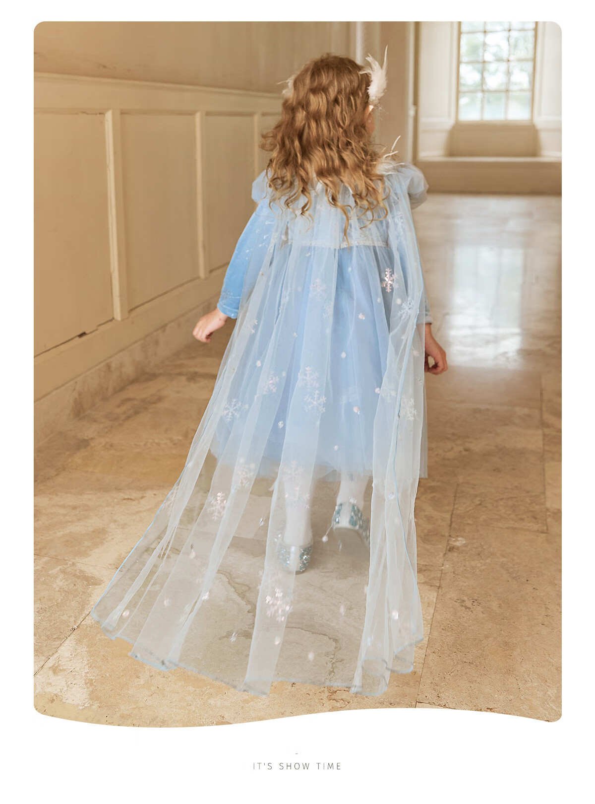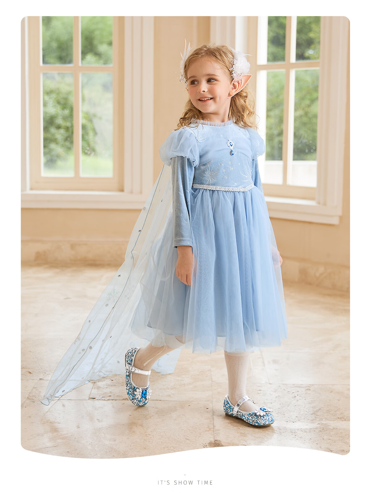 斯纳菲女童爱莎公主裙儿童秋款女宝生日礼服艾莎裙带披风长袖 爱莎蓝120