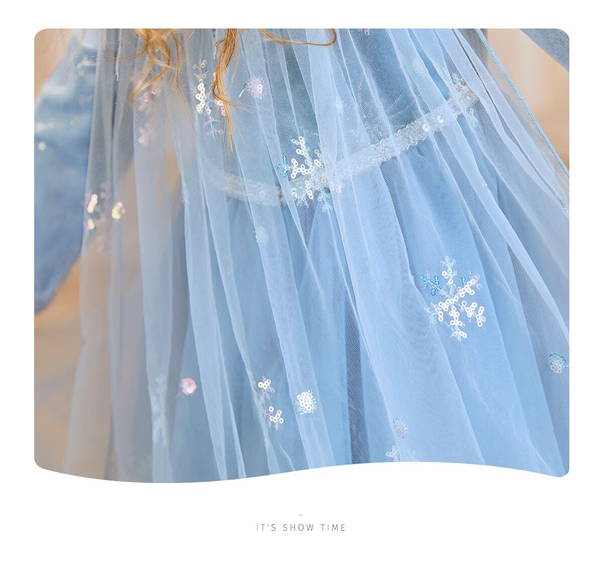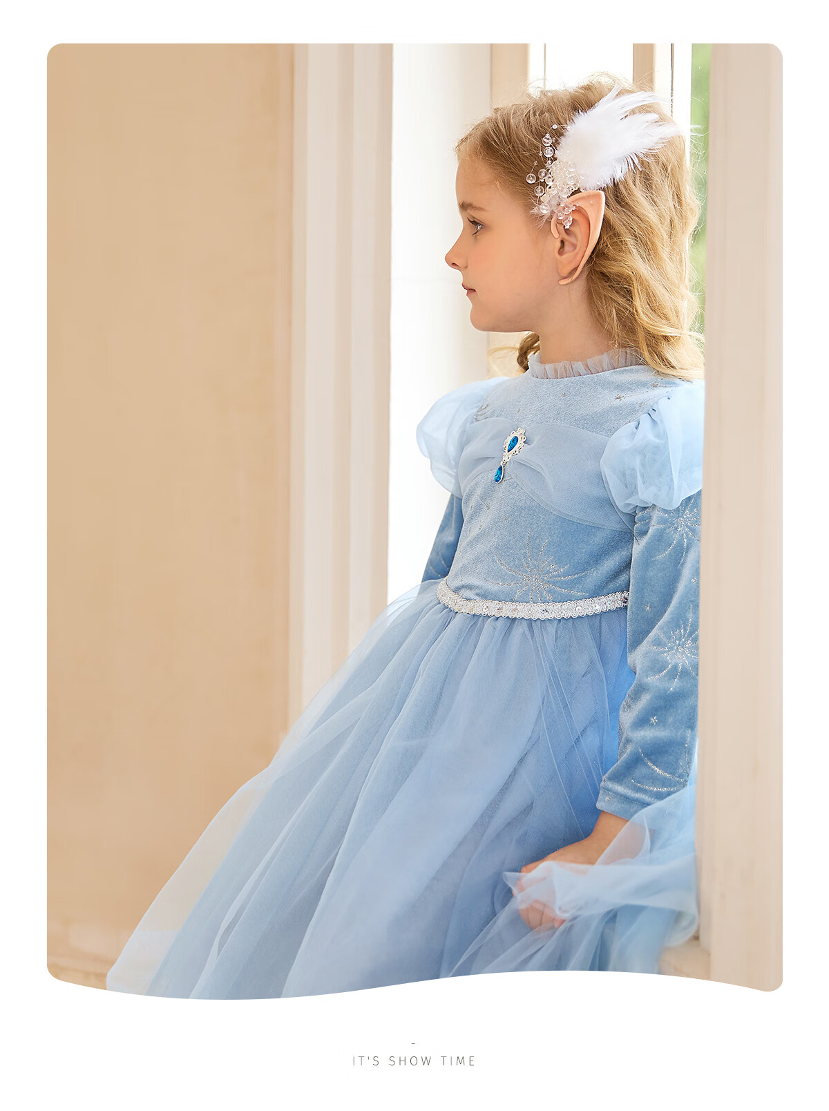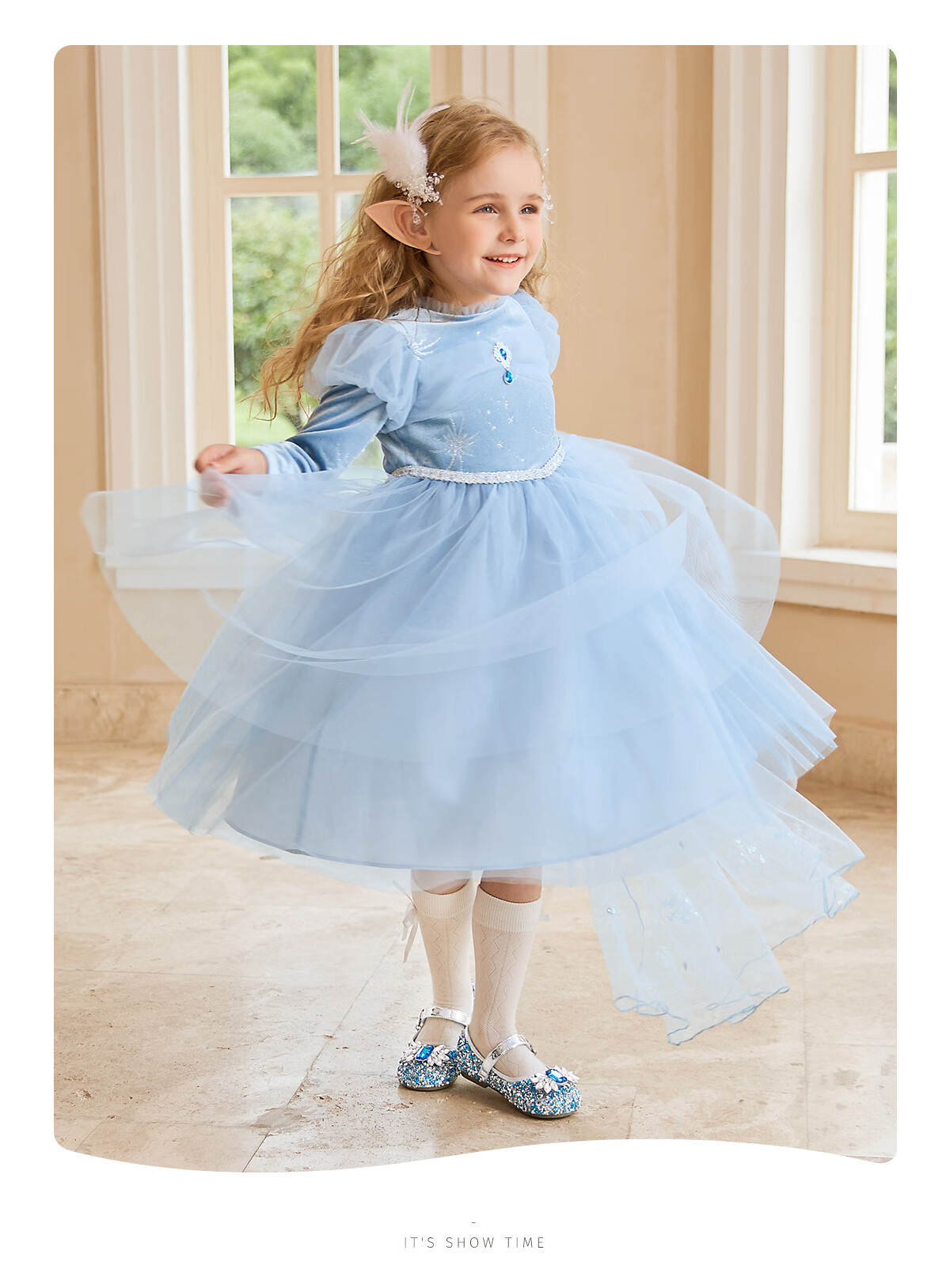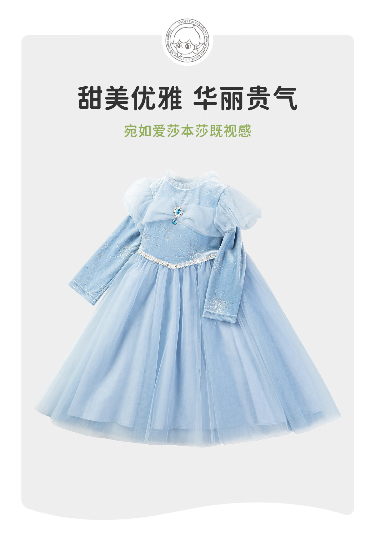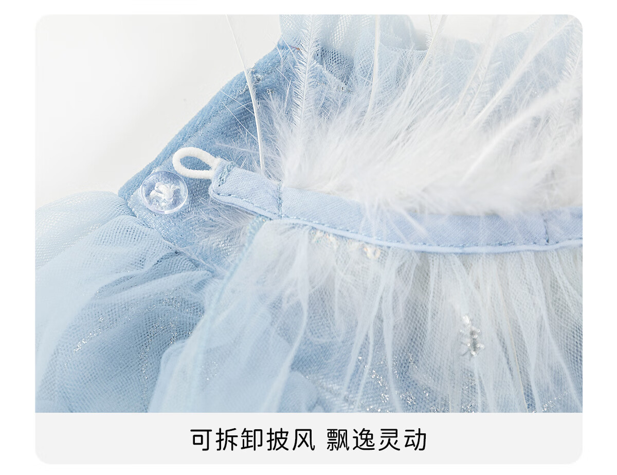 斯纳菲女童爱莎公主裙儿童秋款女宝生日礼服艾莎裙带披风长袖 爱莎蓝120