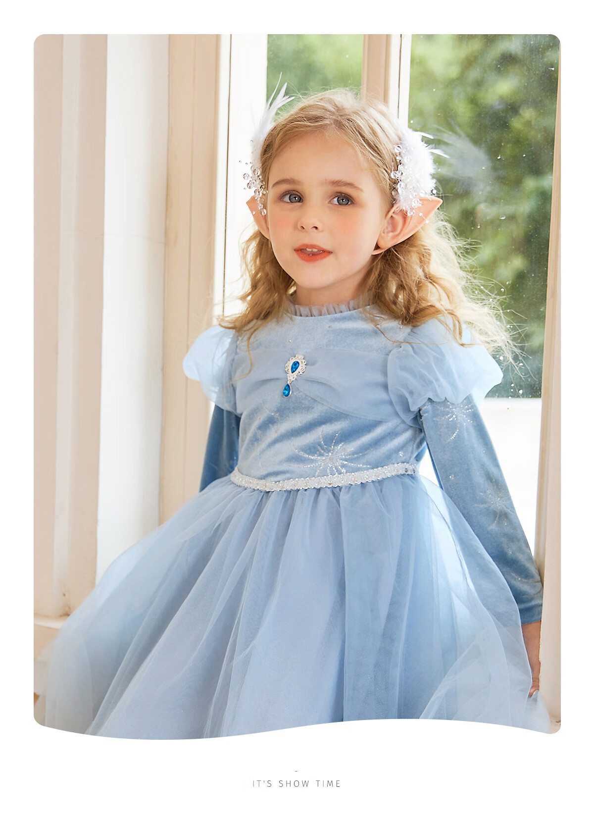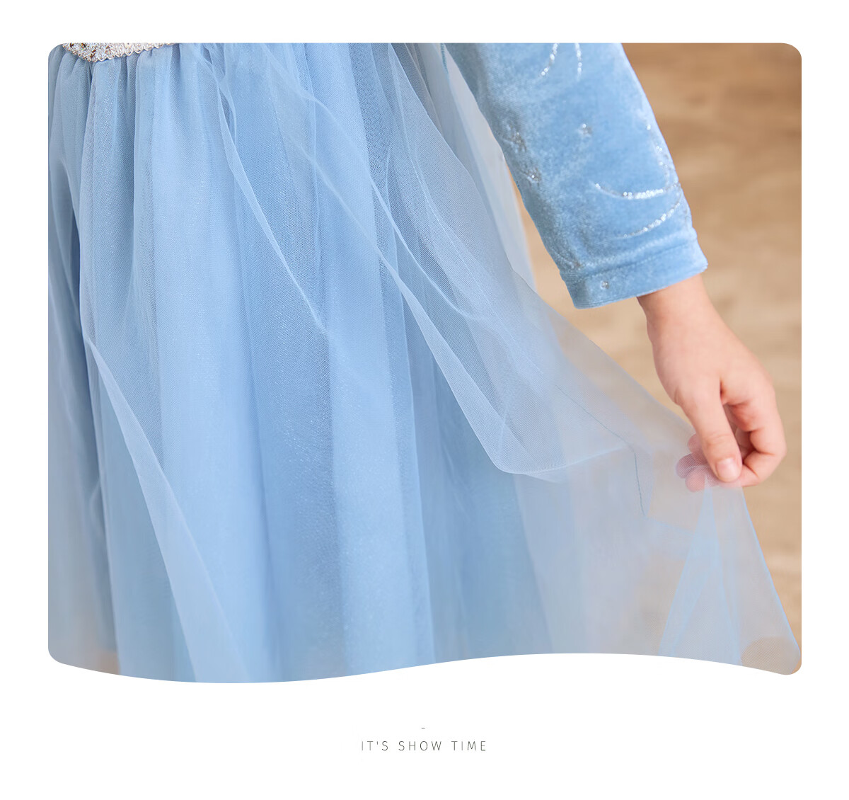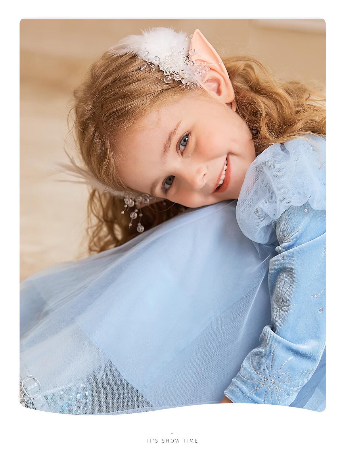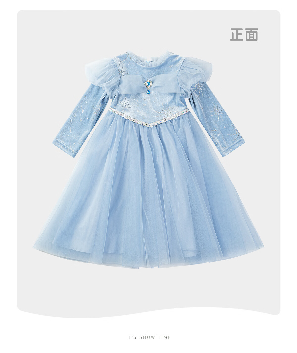 斯纳菲女童爱莎公主裙儿童秋款女宝生日礼服艾莎裙带披风长袖 爱莎蓝120
