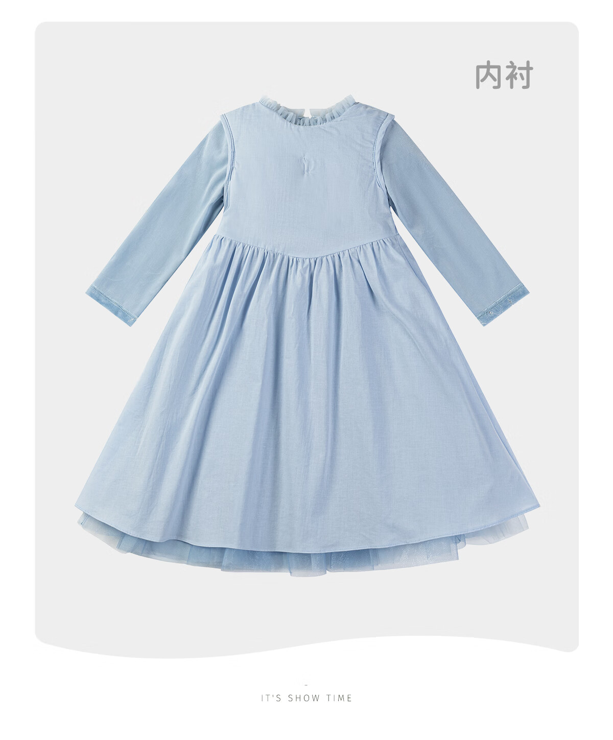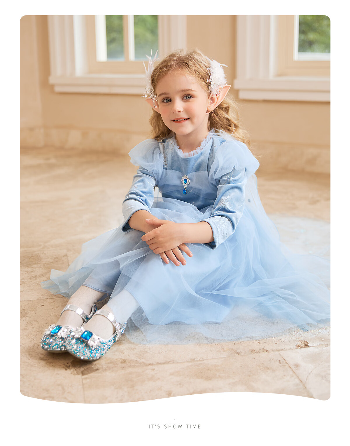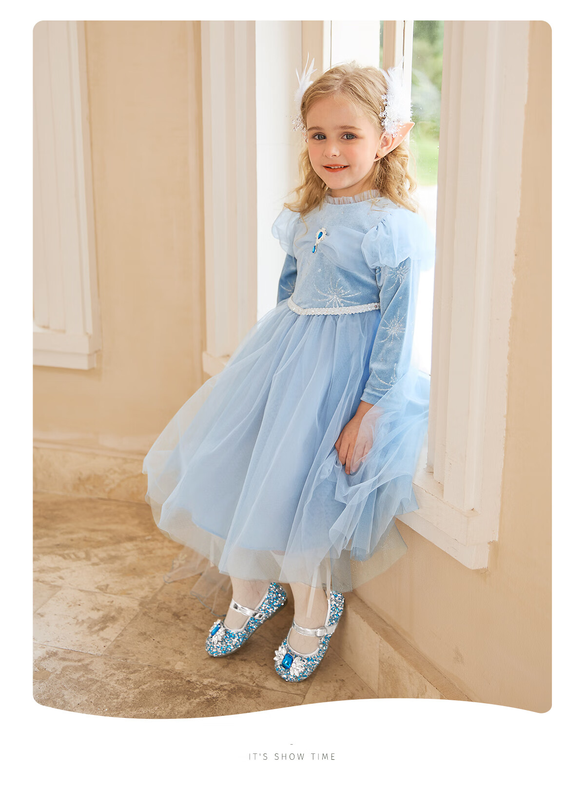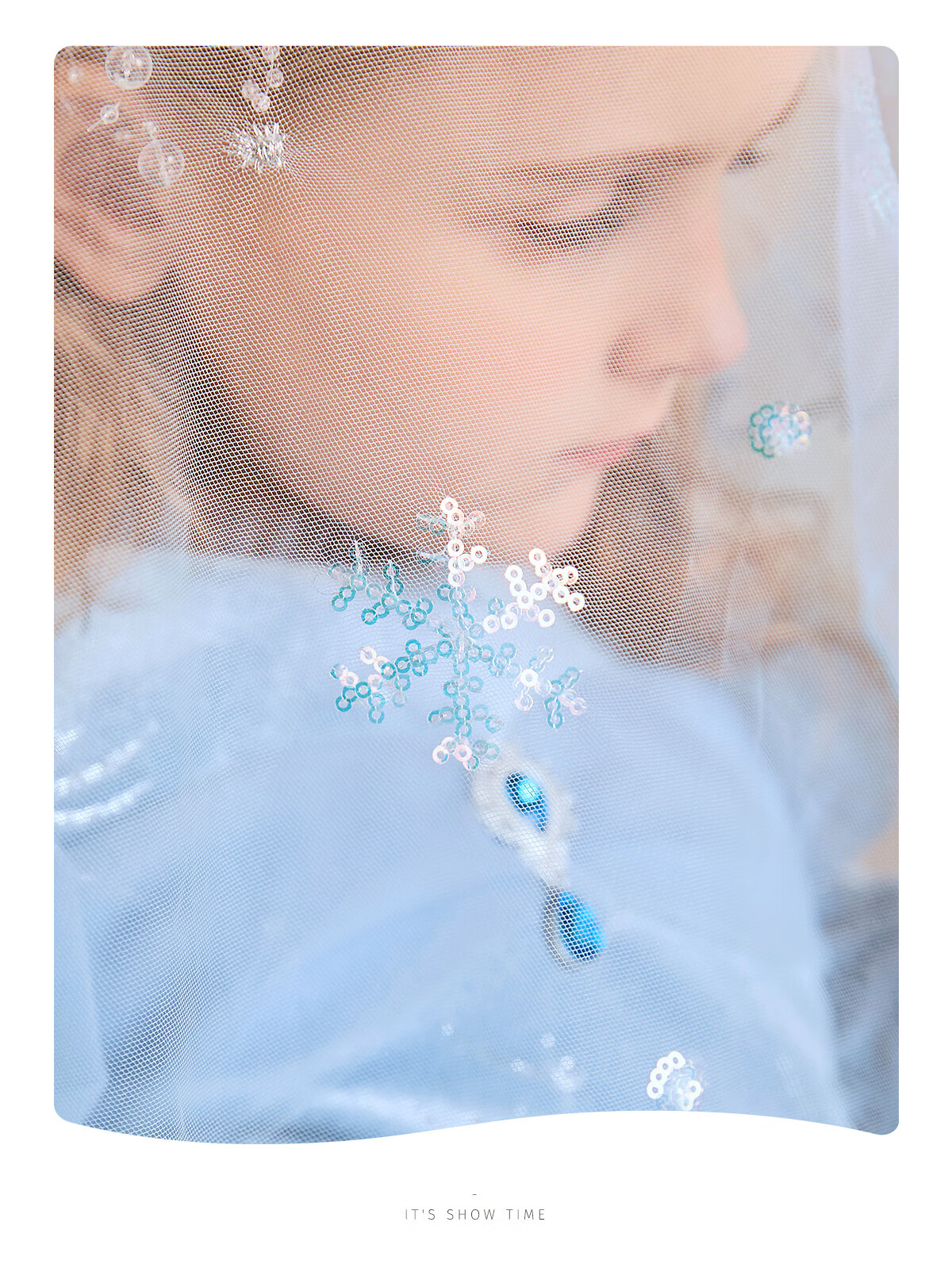 斯纳菲女童爱莎公主裙儿童秋款女宝生日礼服艾莎裙带披风长袖 爱莎蓝120