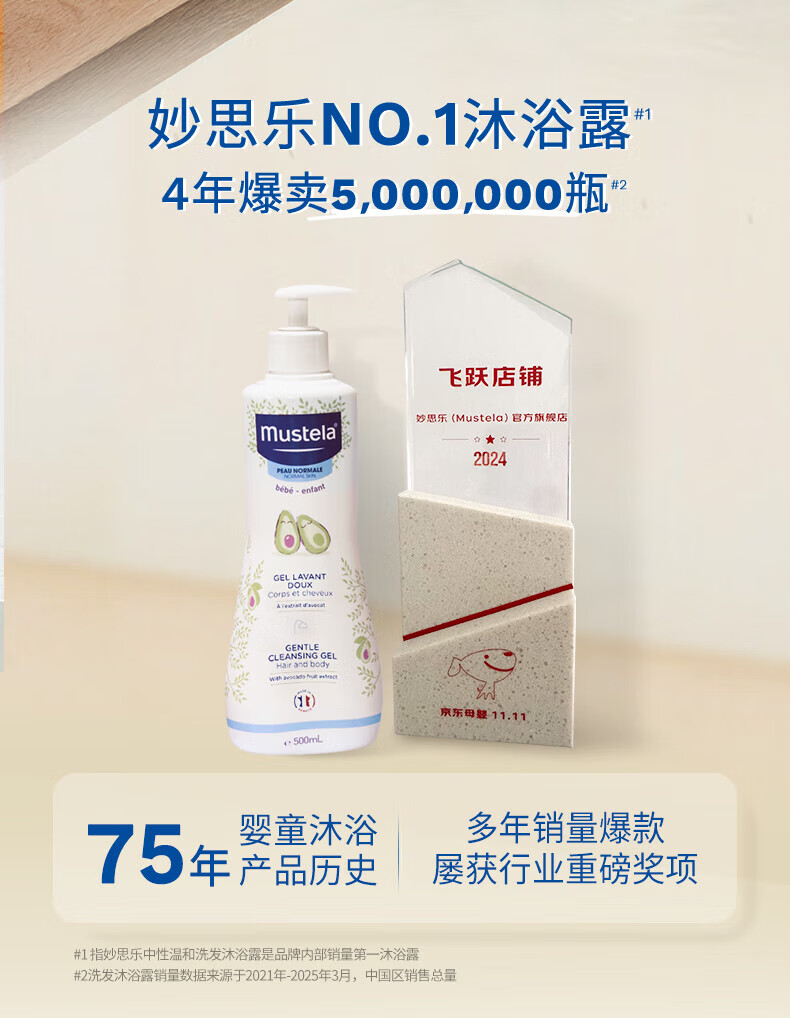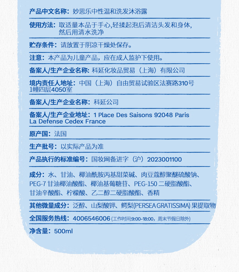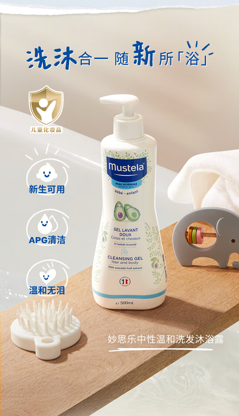 妙思乐儿童中性温和洗发水沐浴露二合一 婴幼儿新生宝宝易冲洗法国进口 【洗沐二合一】洗发沐浴露 500ml