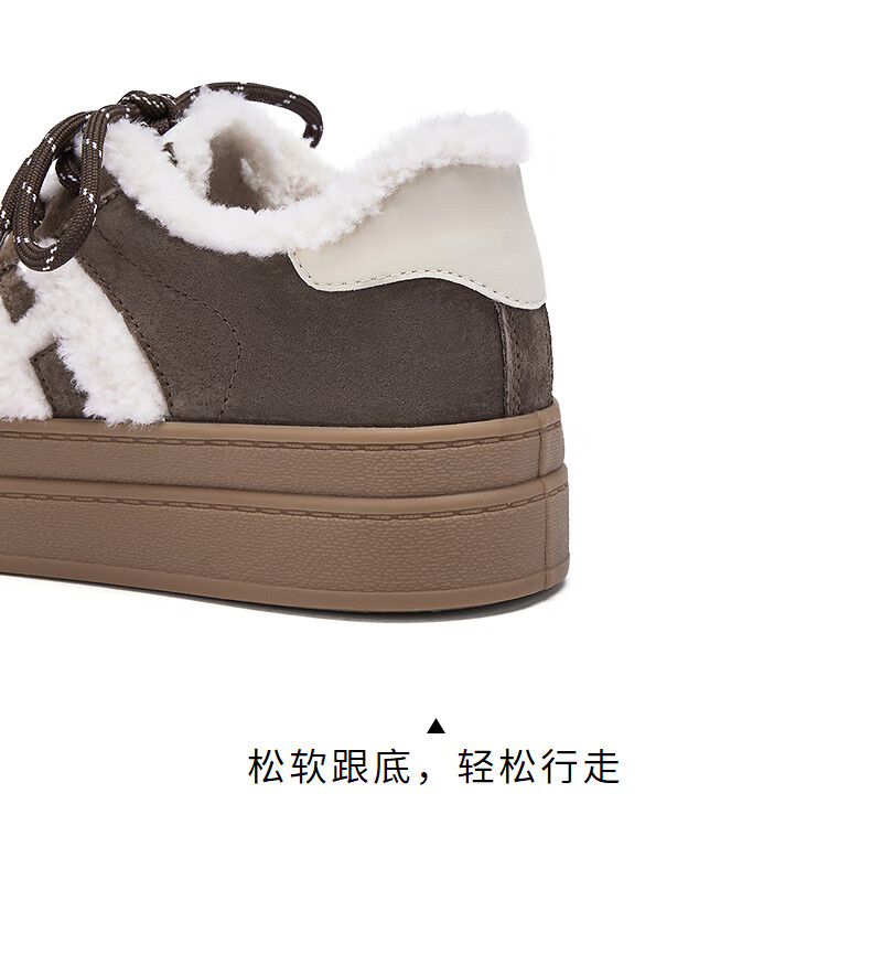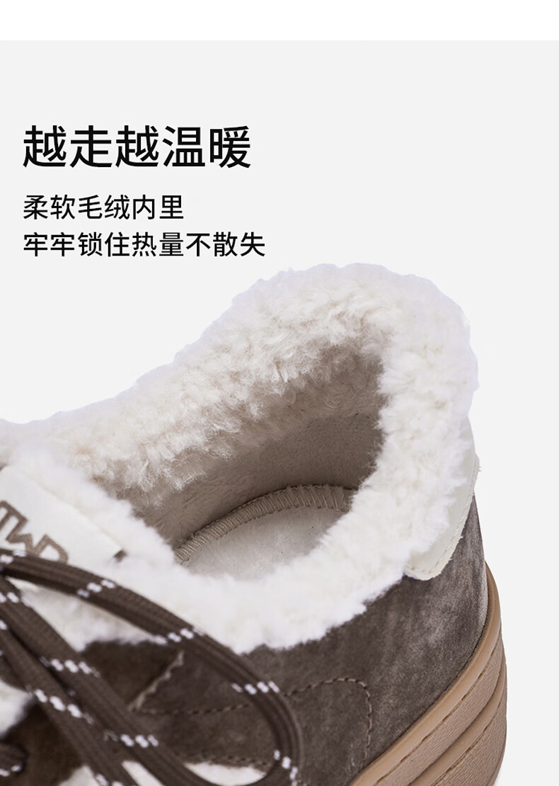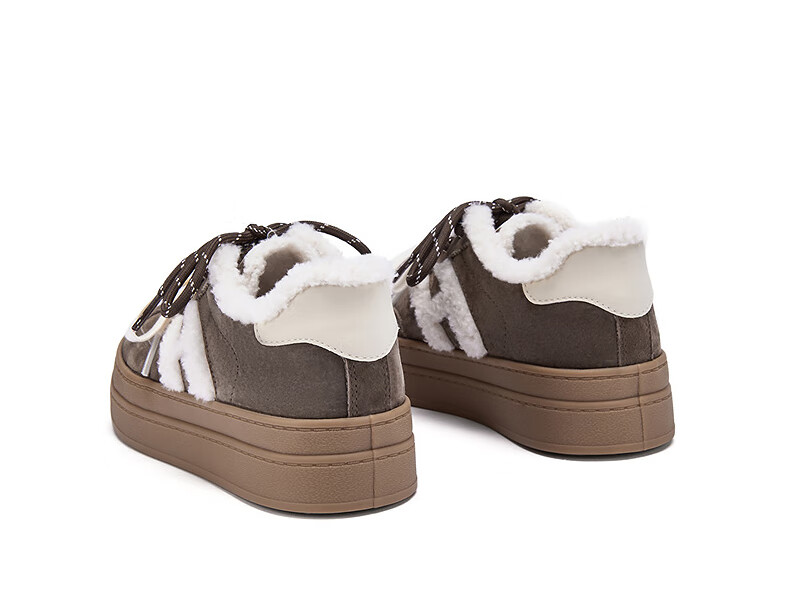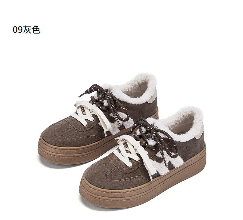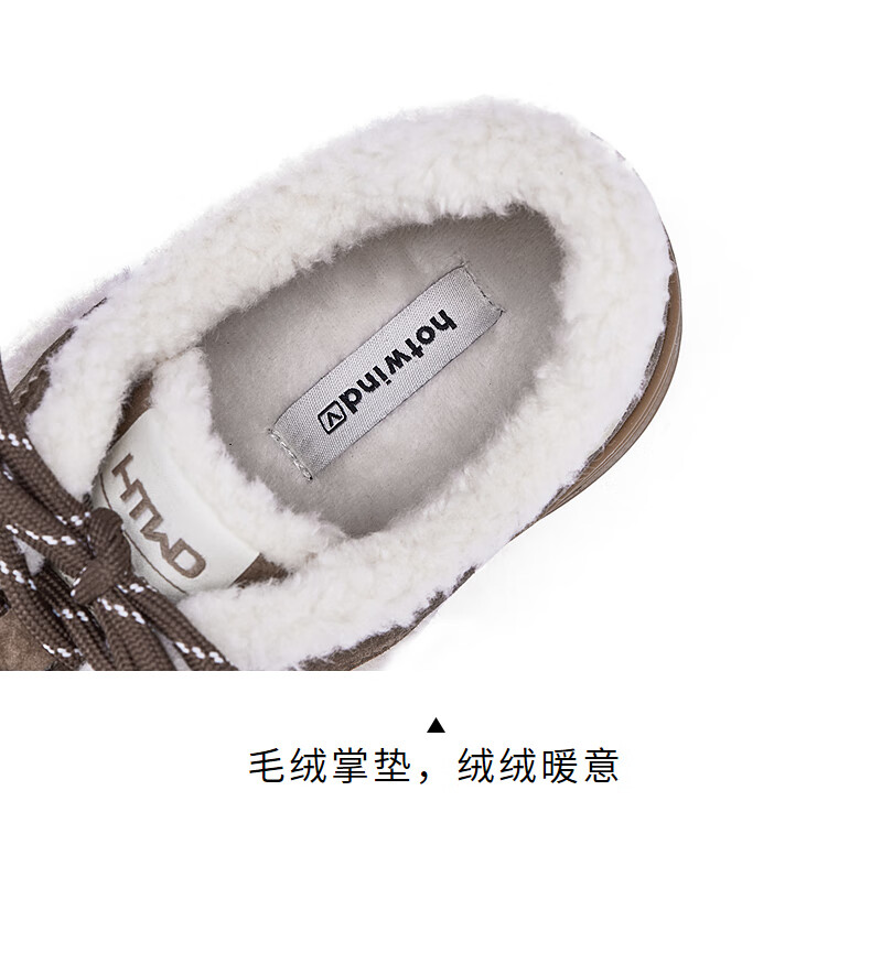 热风(Hotwind)厚底德训鞋女款2025年冬季新款复古加绒休闲鞋增高百搭女鞋子 09灰色 34