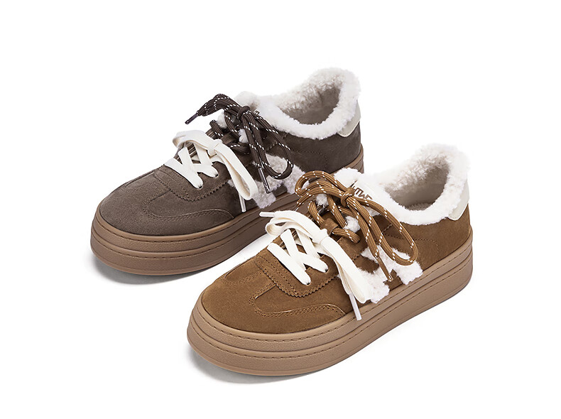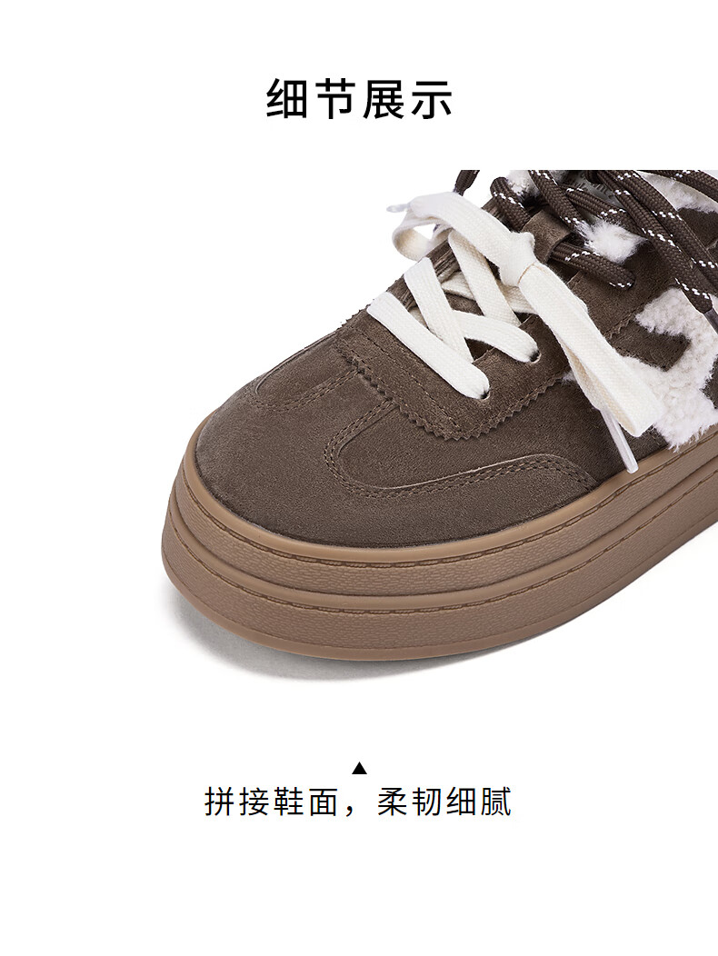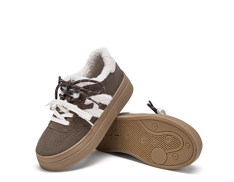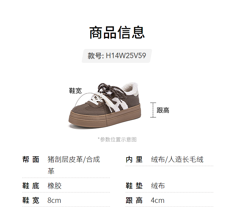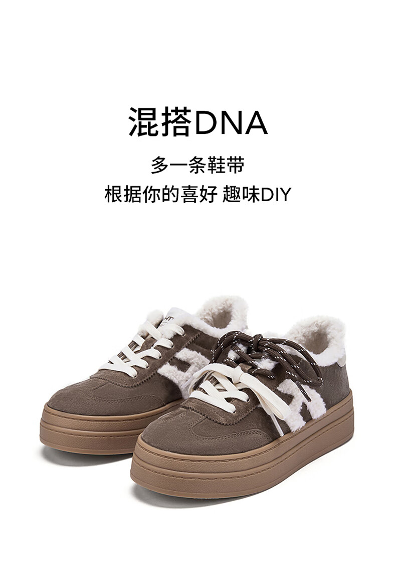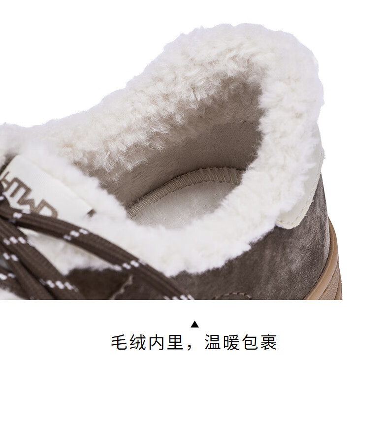 热风(Hotwind)厚底德训鞋女款2025年冬季新款复古加绒休闲鞋增高百搭女鞋子 09灰色 34