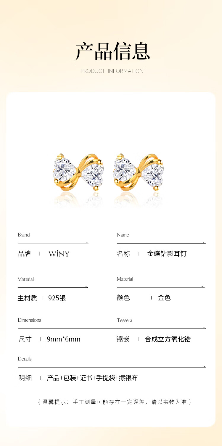 唯一(Winy)金蝶钻影s925银耳钉送女友生日情人节礼物高级轻奢小众
