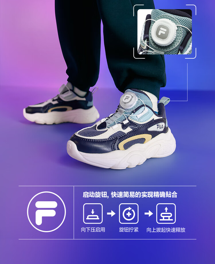 FILA斐乐儿童跑步鞋2025年秋季男女童小童旋钮扣运动鞋子火星