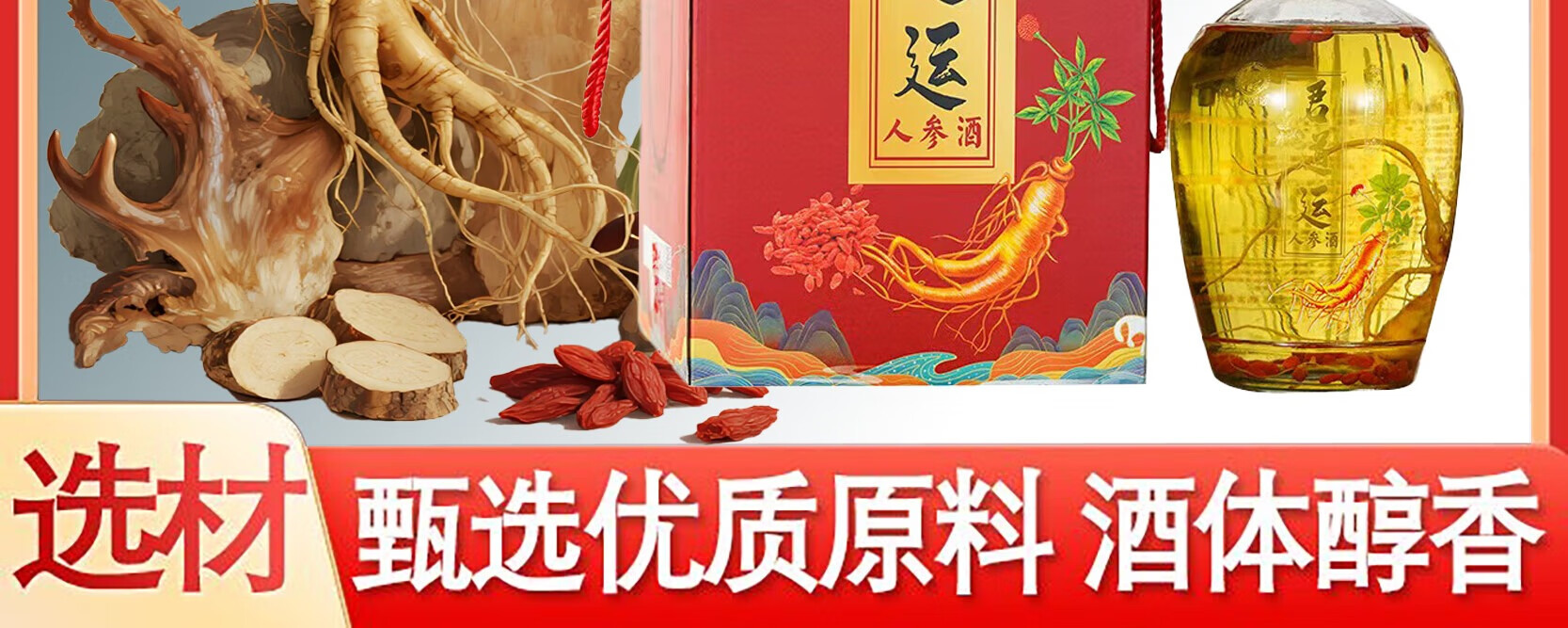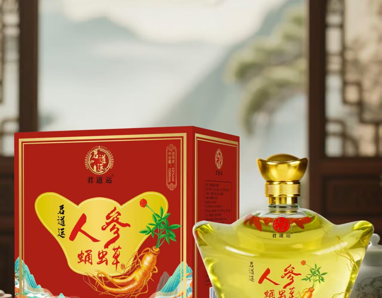君道运人参酒 送礼自饮 送礼 泡酒 52度 1.5L 1瓶 君运道 人参酒