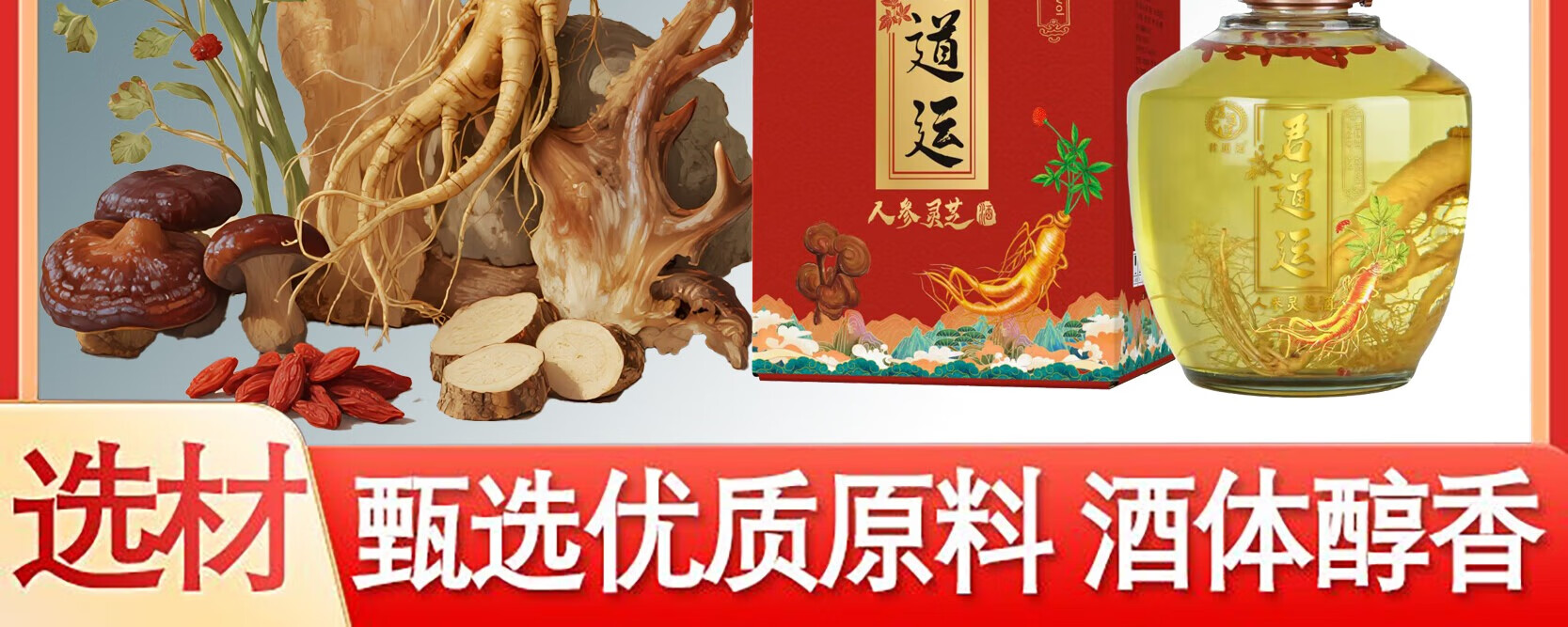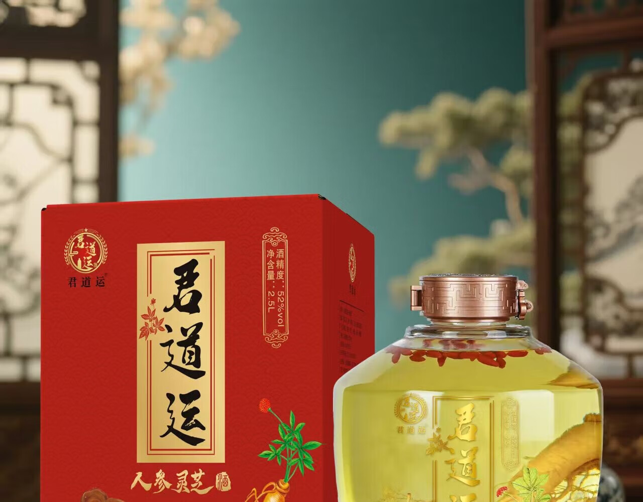 君道运人参酒 送礼自饮 送礼 泡酒 52度 2.5L 1瓶 人参灵芝酒