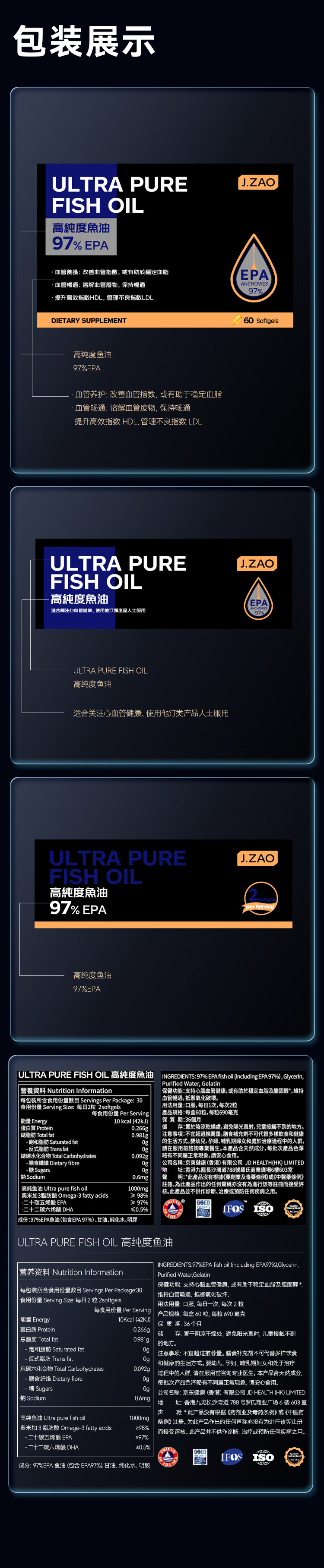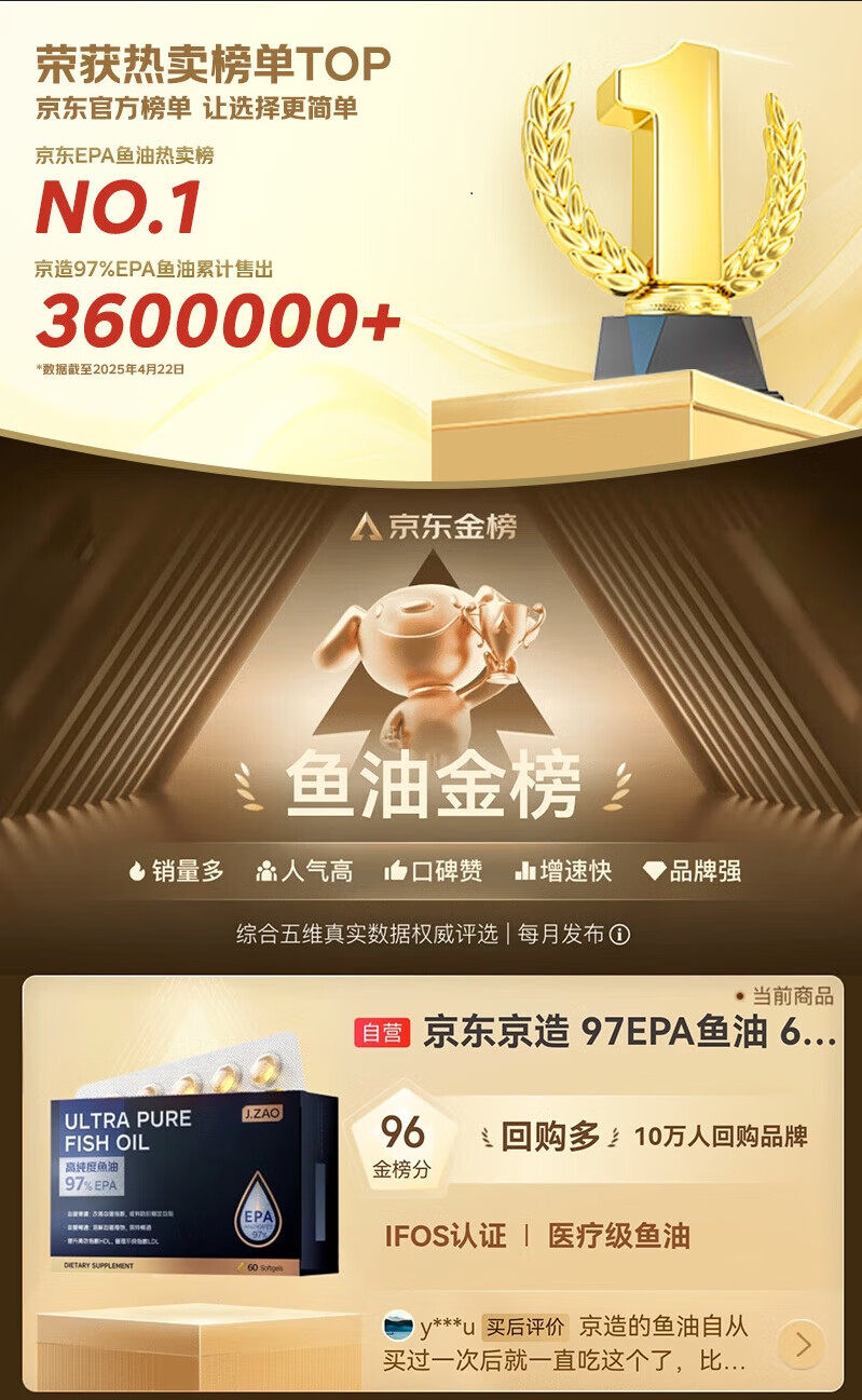 京东京造 97%EPA高纯深海鱼油 Omega3专业降血脂低dha60粒