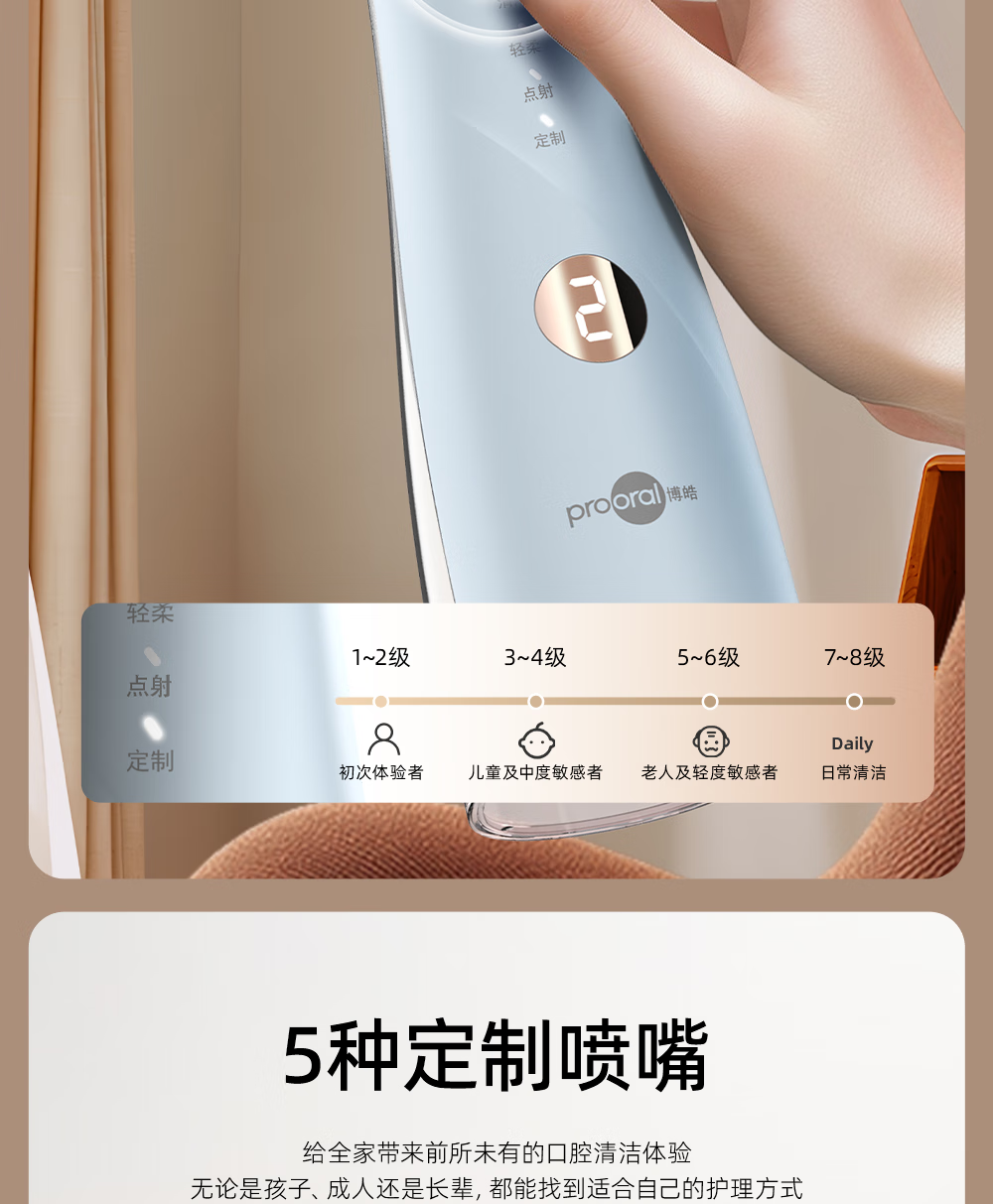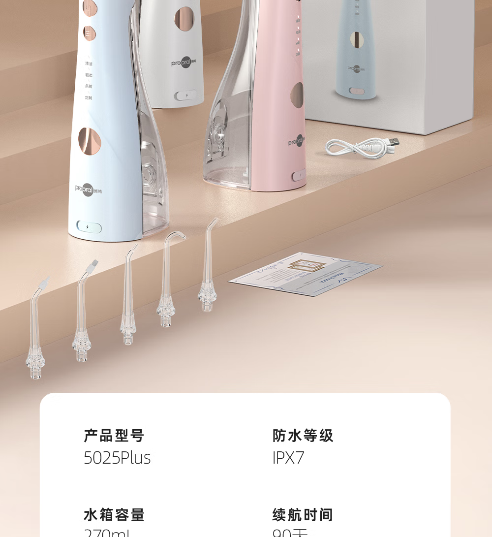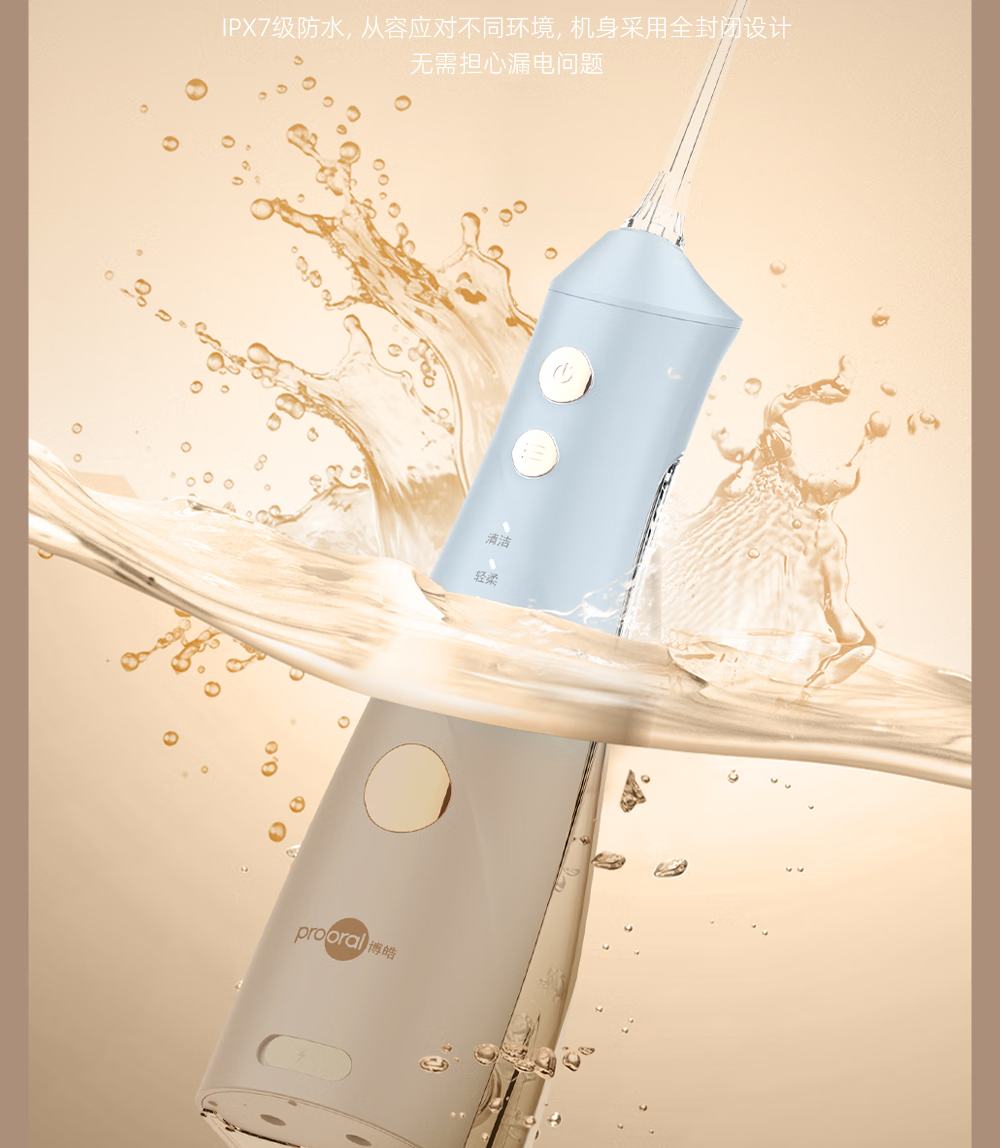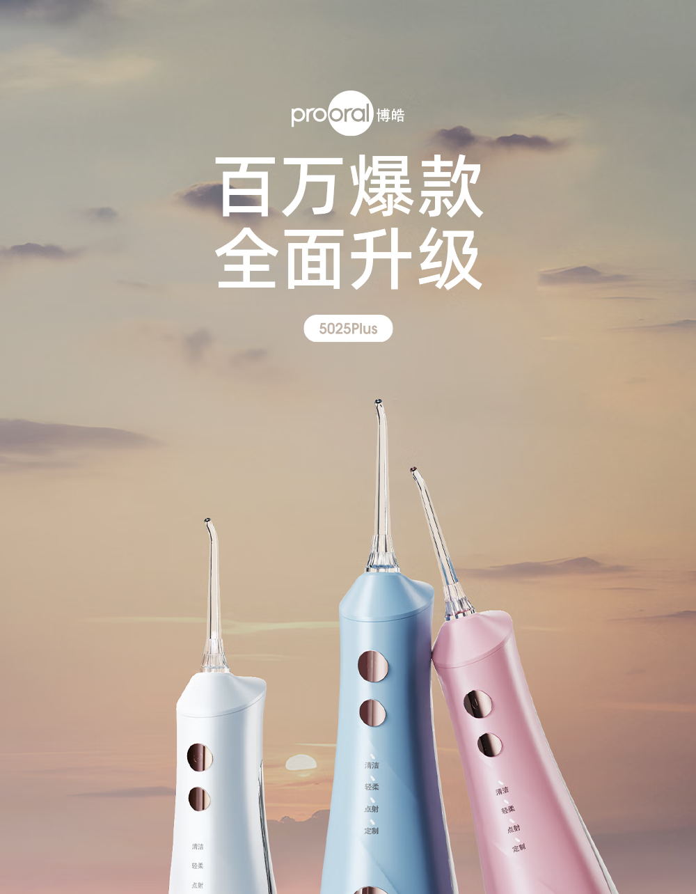 博皓(prooral) 冲牙器便携式牙齿冲洗器家用洗牙器水牙线正畸专用洁牙器去除牙垢预防牙结石 送礼推荐 5025plus 天空蓝