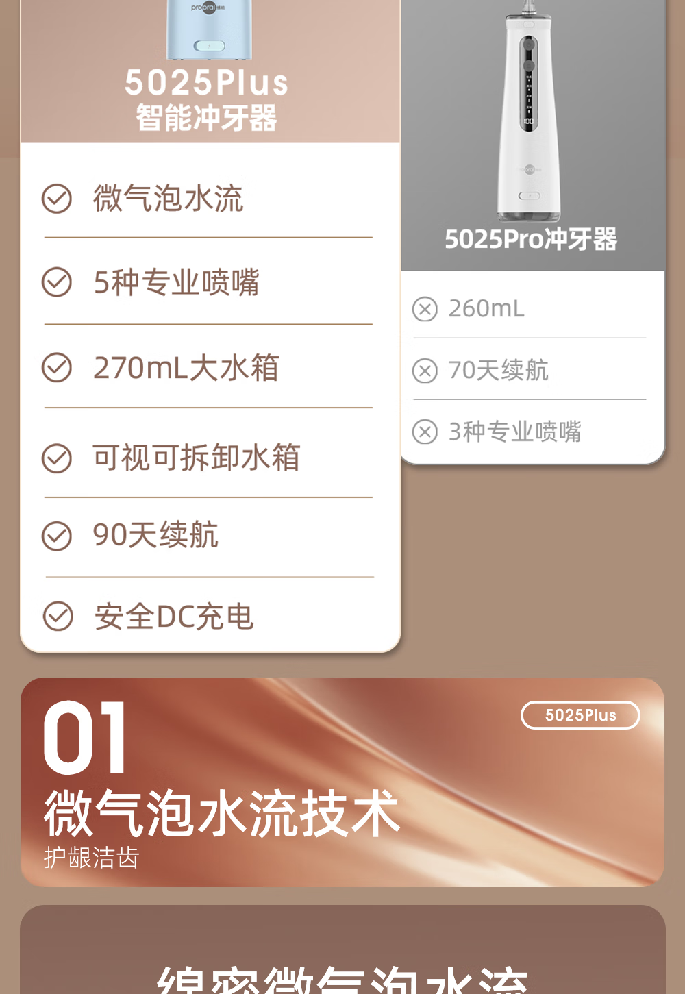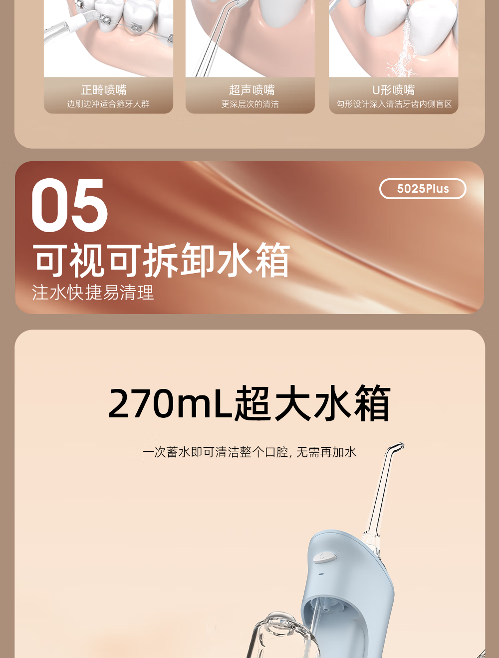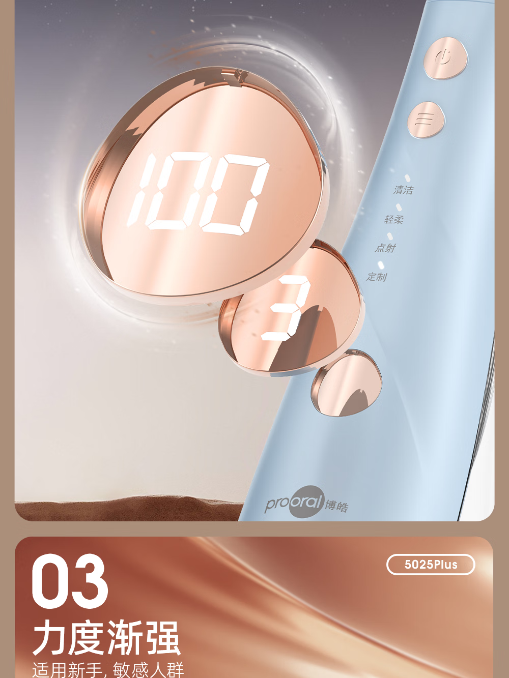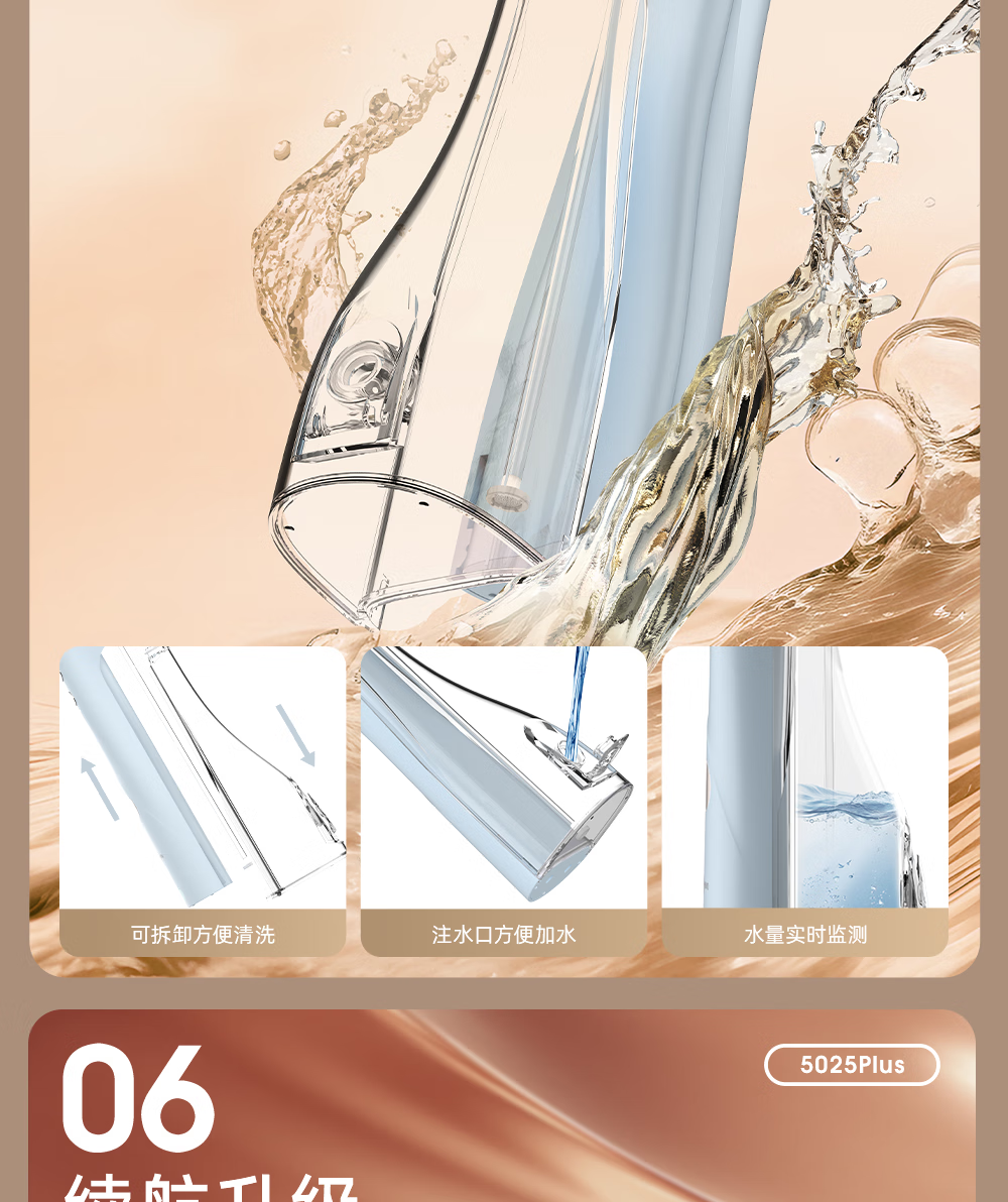 博皓(prooral) 冲牙器便携式牙齿冲洗器家用洗牙器水牙线正畸专用洁牙器去除牙垢预防牙结石 送礼推荐 5025plus 天空蓝