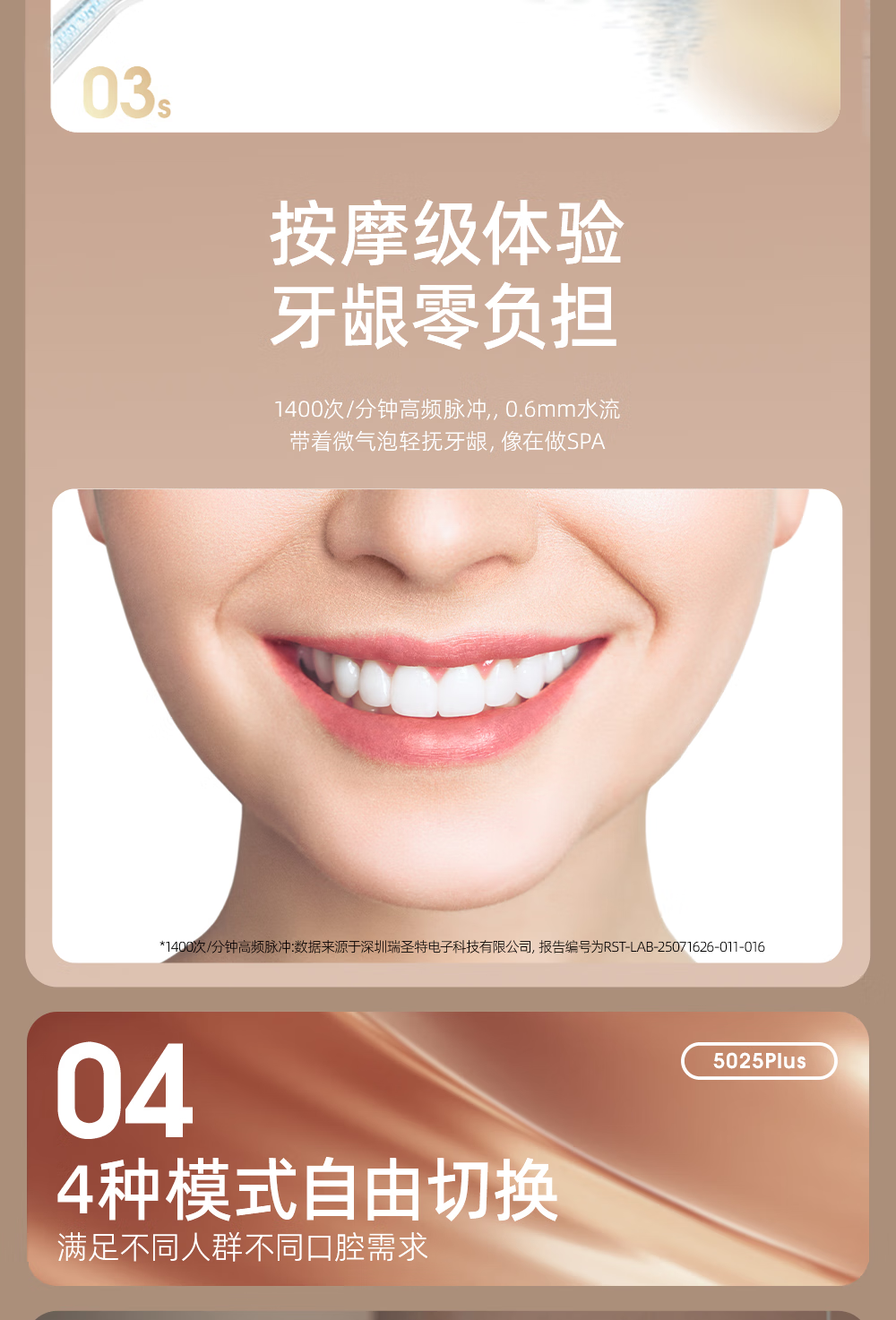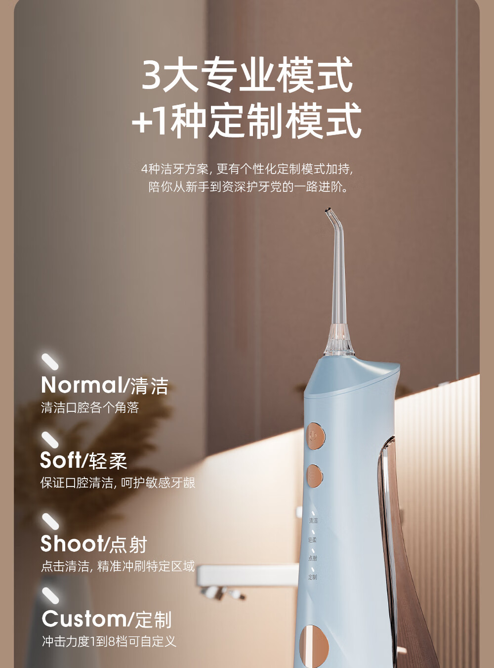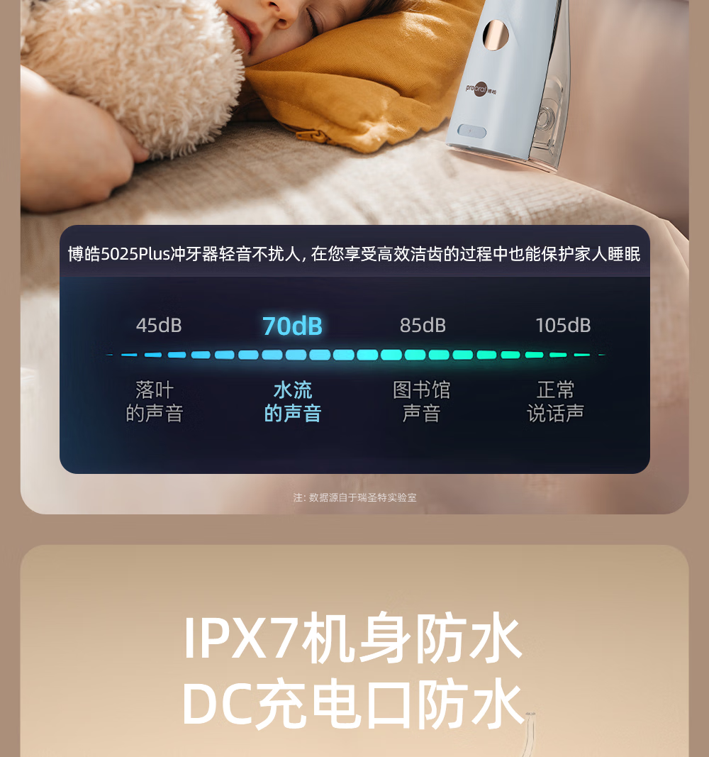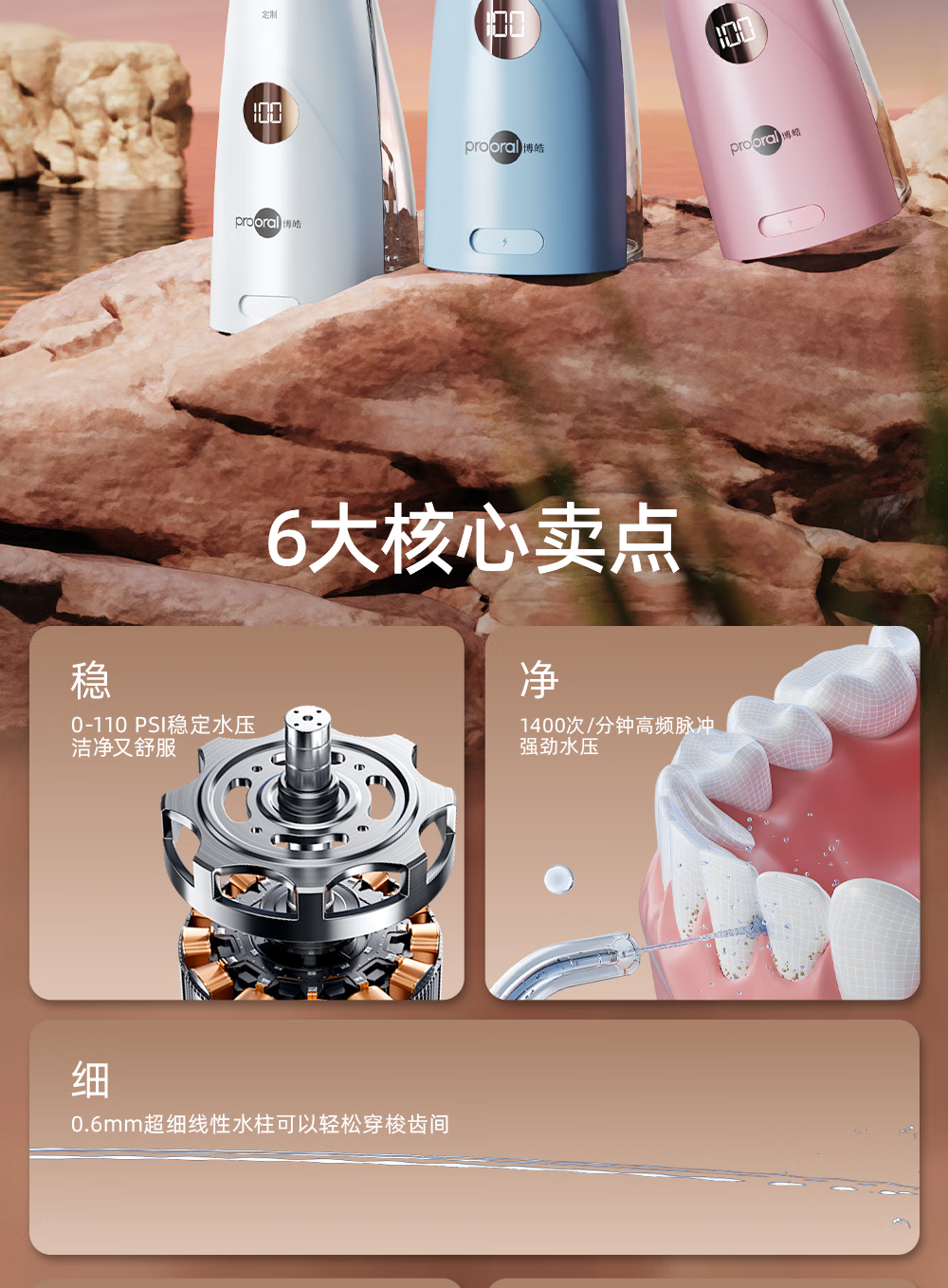 博皓(prooral) 冲牙器便携式牙齿冲洗器家用洗牙器水牙线正畸专用洁牙器去除牙垢预防牙结石 送礼推荐 5025plus 天空蓝