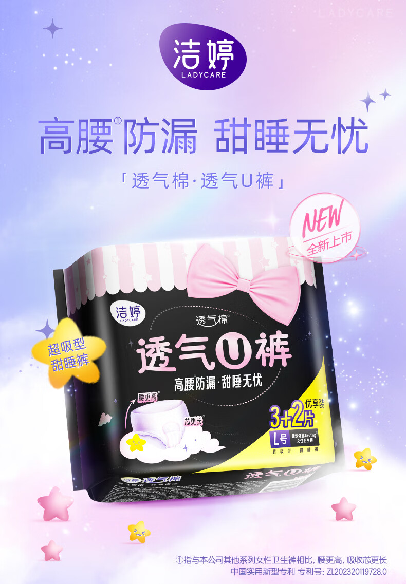 洁婷夜用安睡裤大码安睡裤安心裤姨妈巾夜安裤生理裤L码卫生巾15条 L 15条 100-140斤 15片