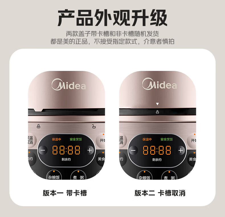 美的(Midea)品牌官方电压力锅6L大容量全自动智能预约 家用电饭煲高压锅6-8人 开盖火锅煲汤煮粥YL60Q3-451